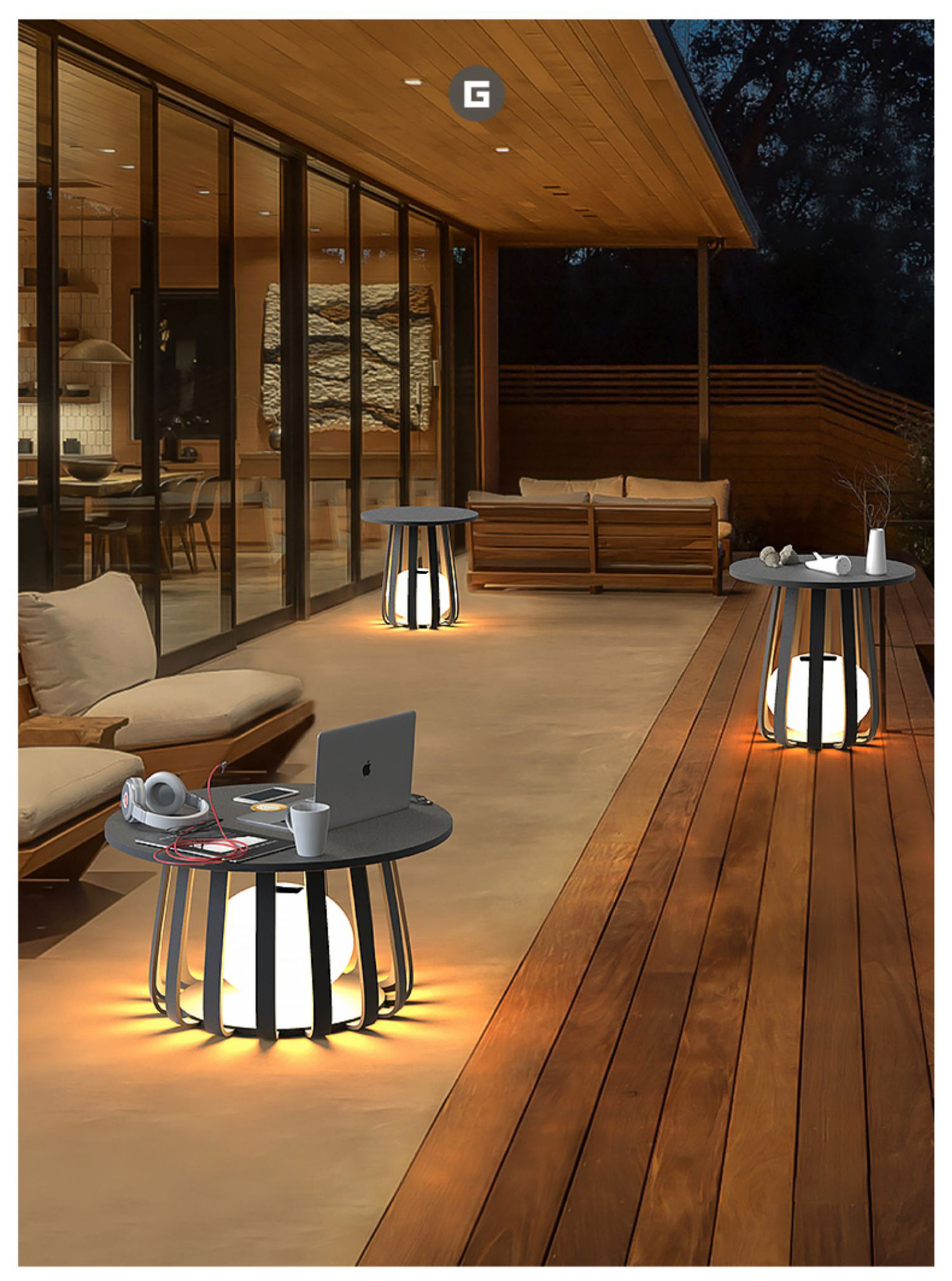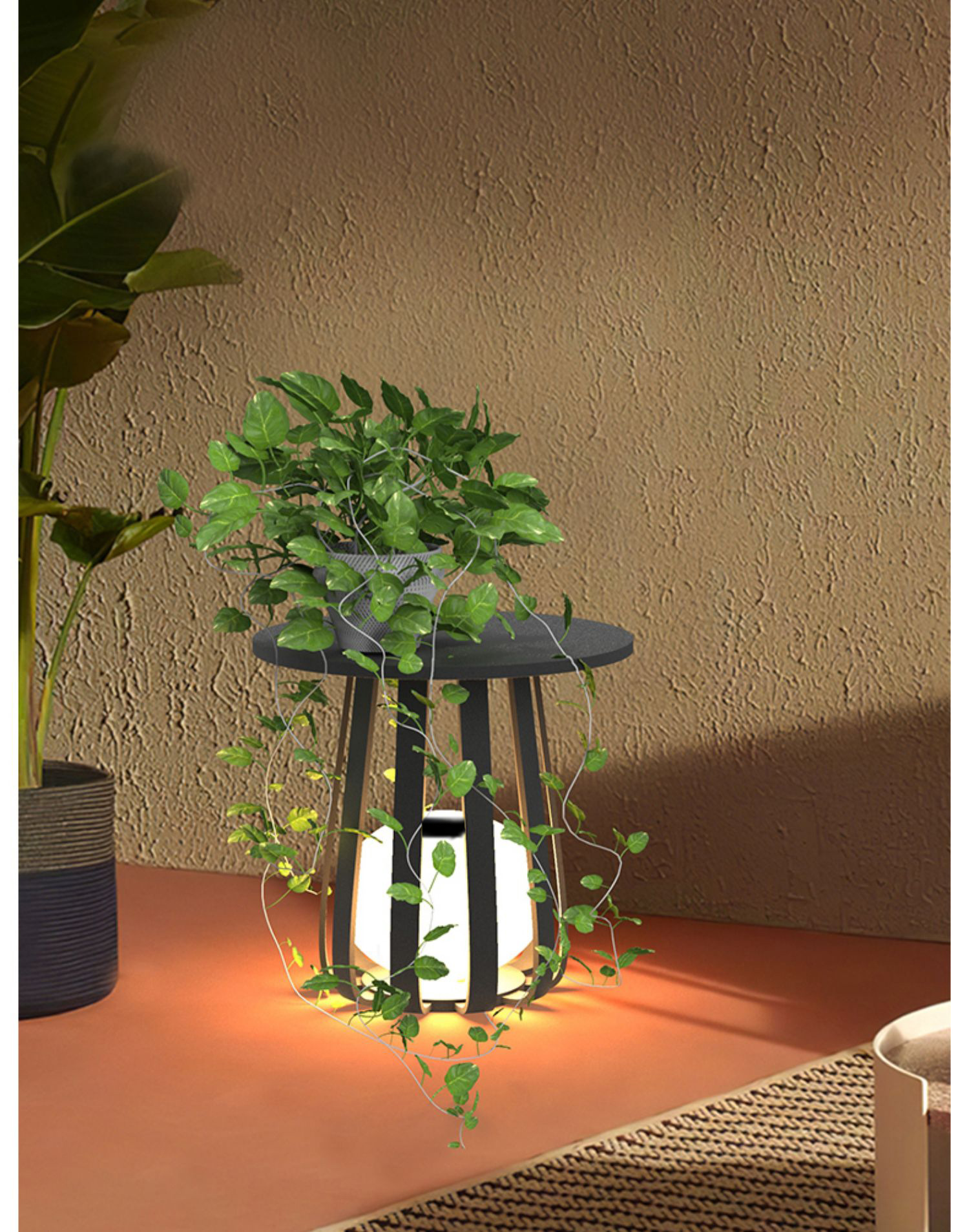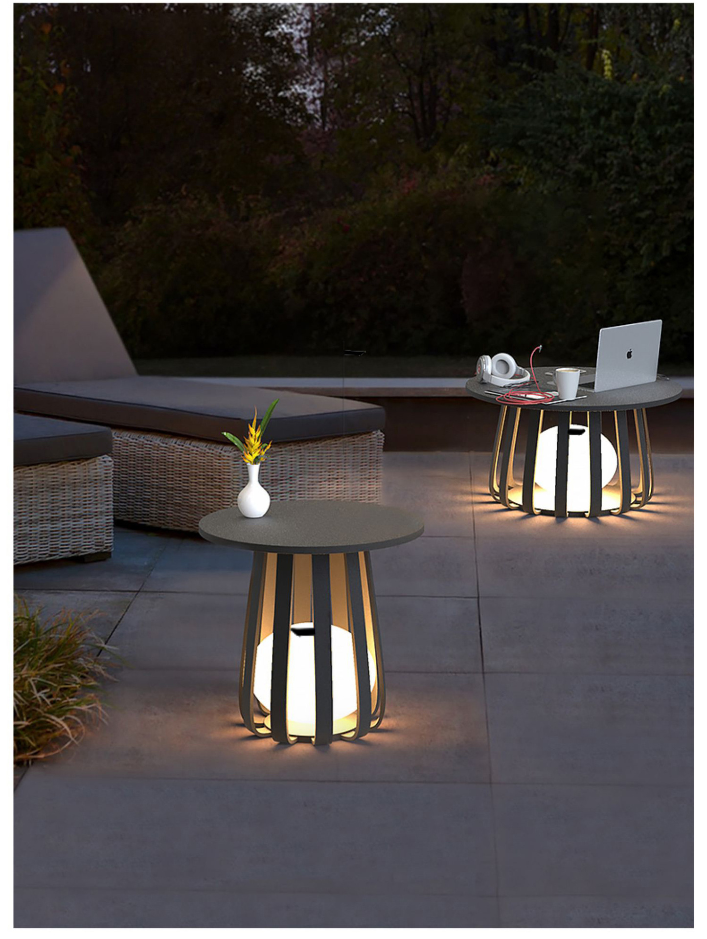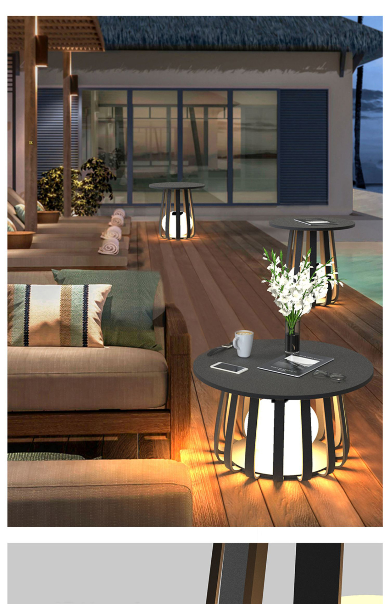 外贸专供太阳能灯铁艺小茶几室外灯简约休闲RGB暖白光智能LED