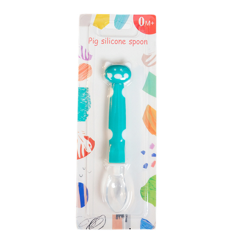 英文卡装 婴儿硅胶勺宝宝喂哺餐具软头勺 卡通辅食勺汤匙汤勺