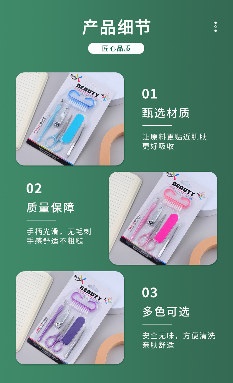 修脚刀不锈钢指甲刀套装去死皮家用工具指甲剪修甲套装三色吸卡94