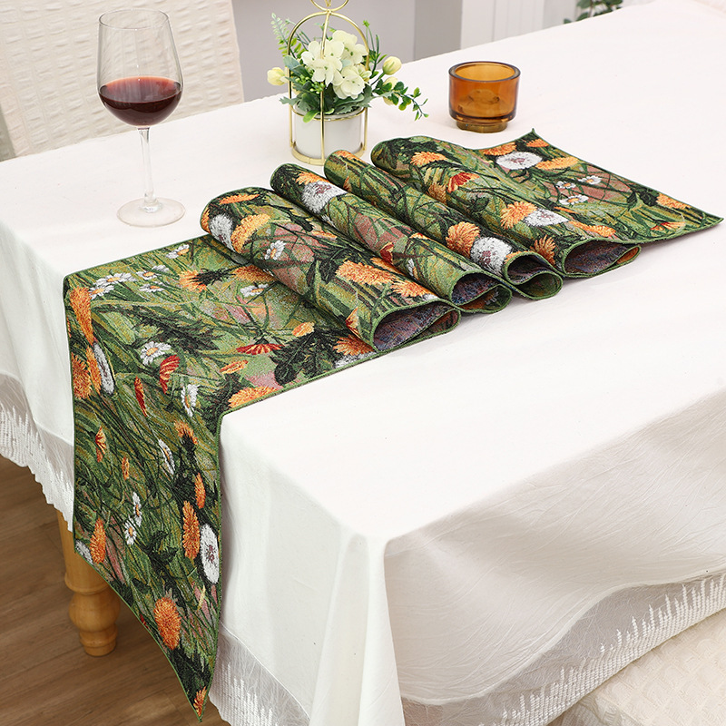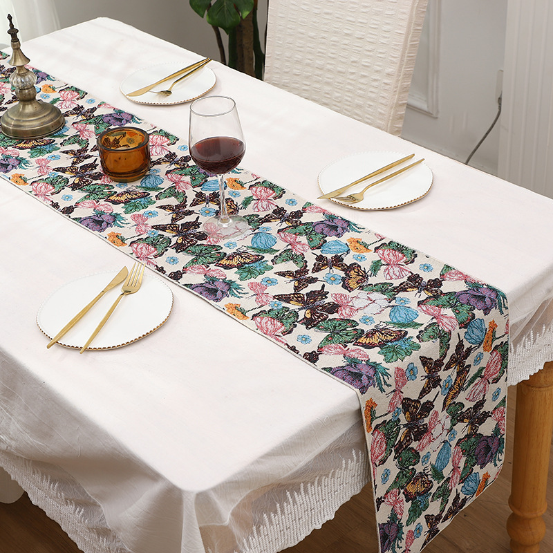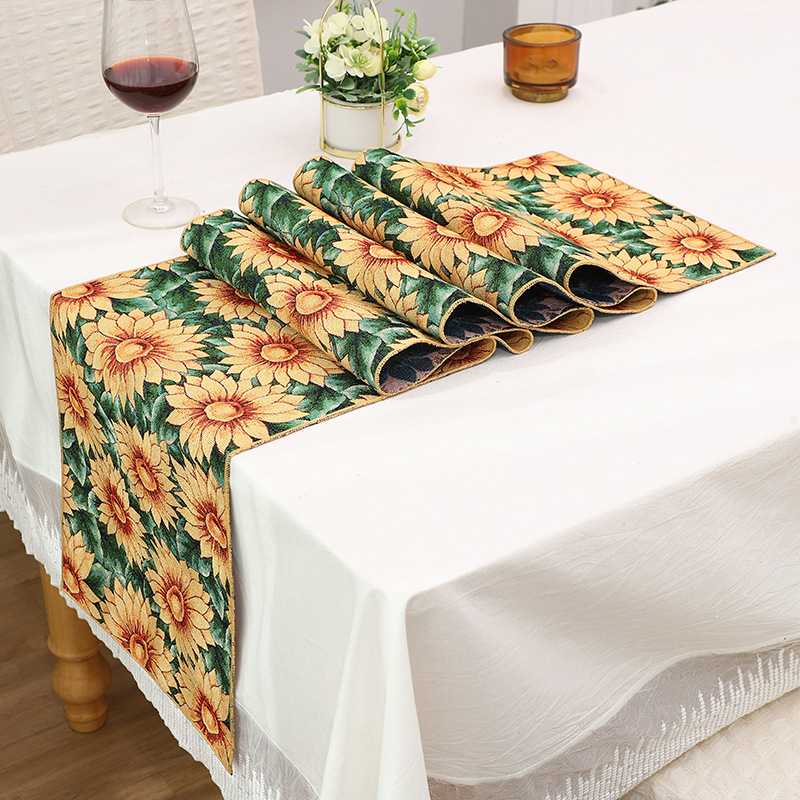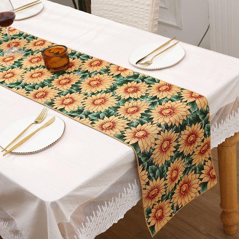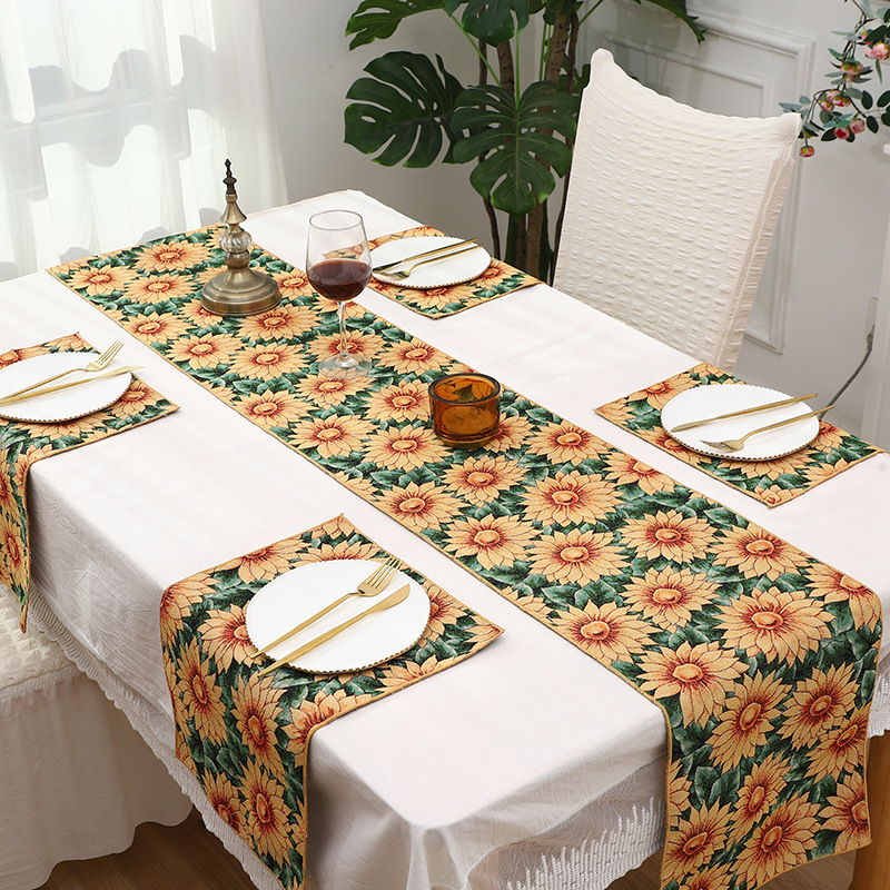 花卉桌旗家用跨境向日葵餐桌布蝴蝶桌垫乡村田园布艺派对节日装饰