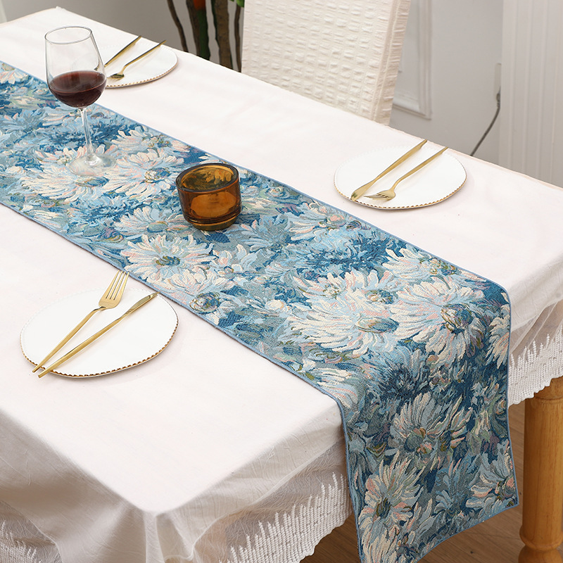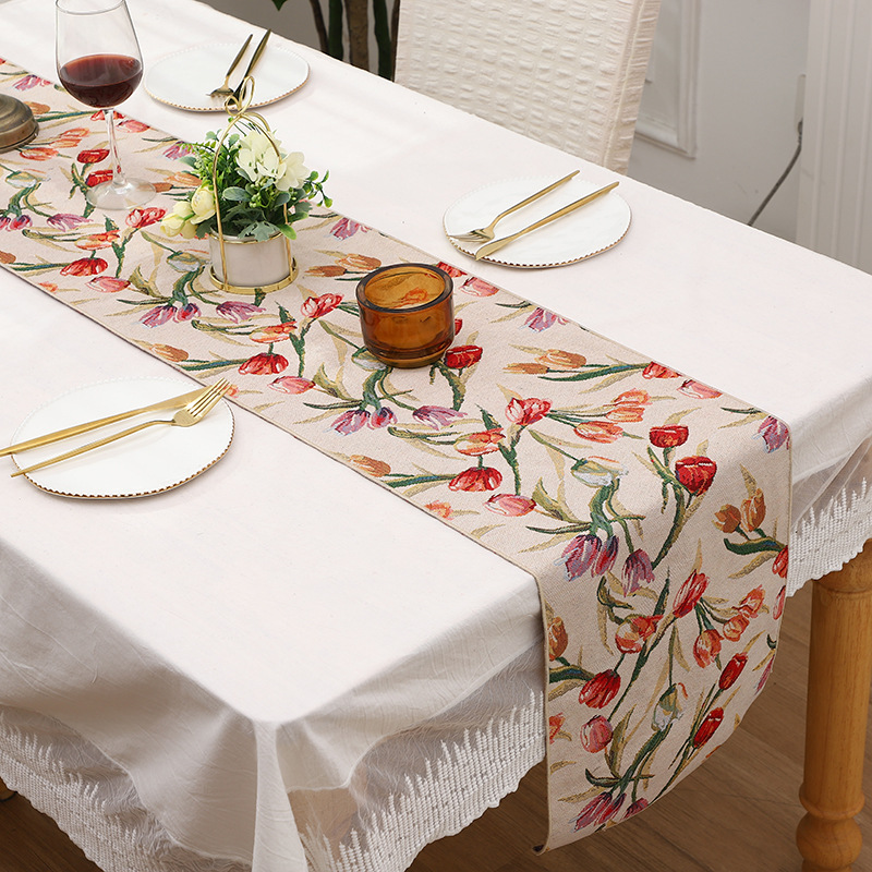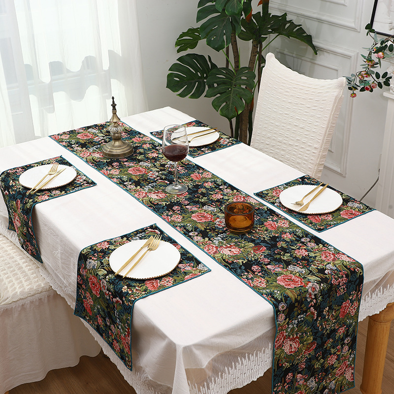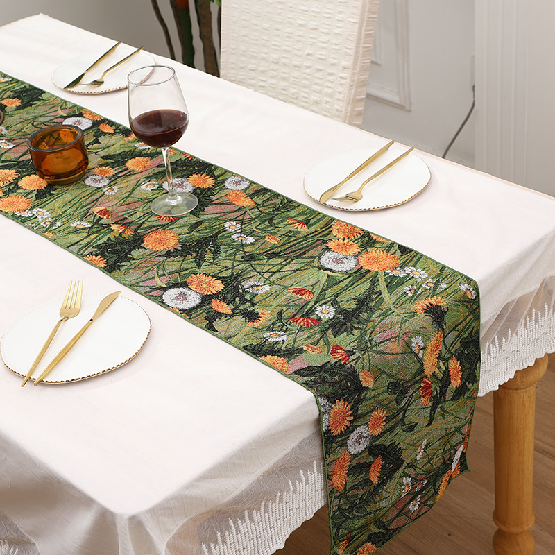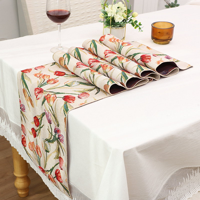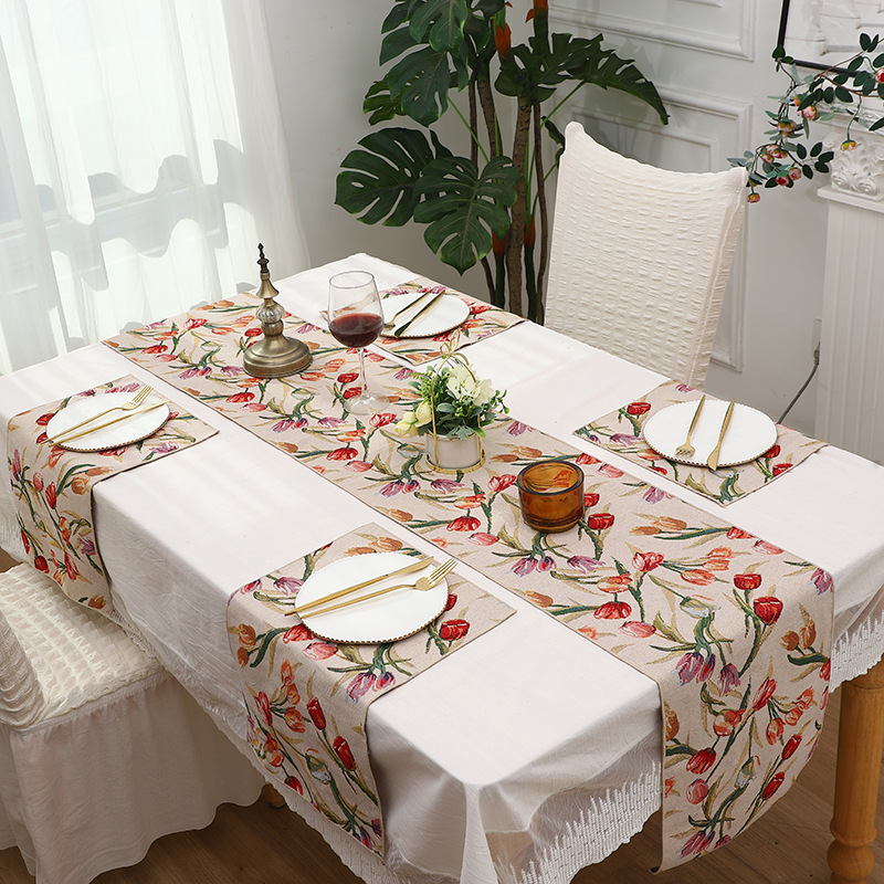 花卉桌旗家用跨境向日葵餐桌布蝴蝶桌垫乡村田园布艺派对节日装饰