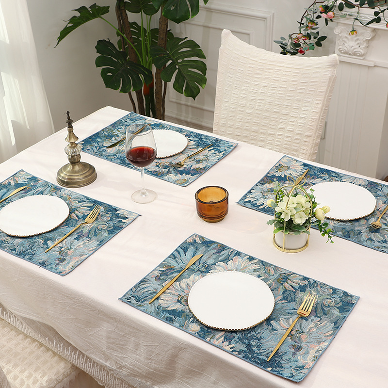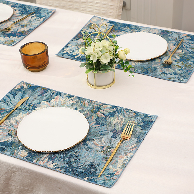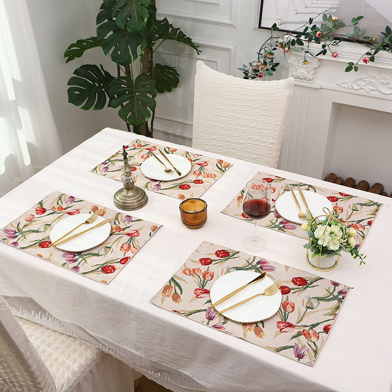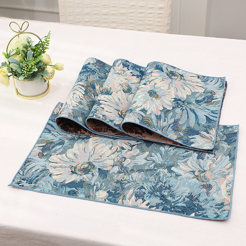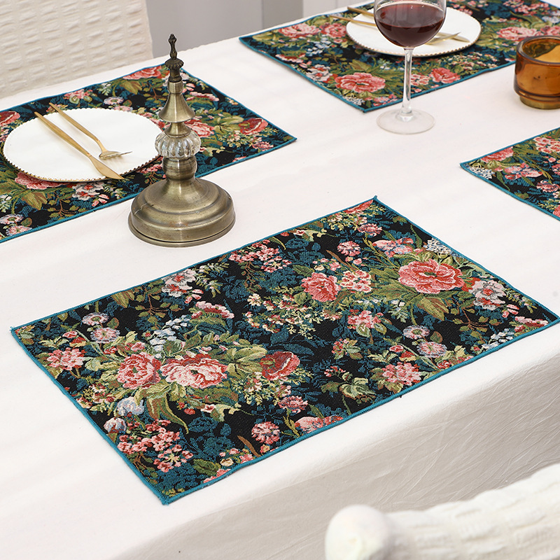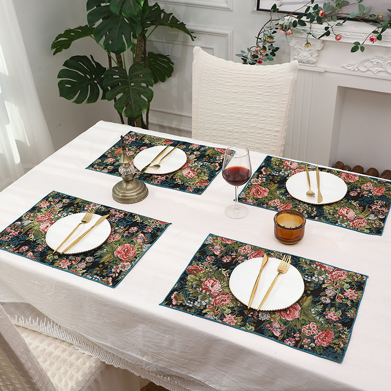 美式提花餐垫ins高颜值跨境花朵西餐隔热垫涤棉加厚面料防滑防污