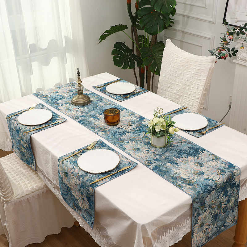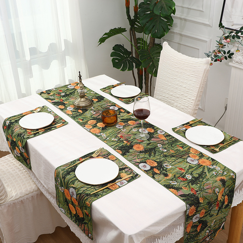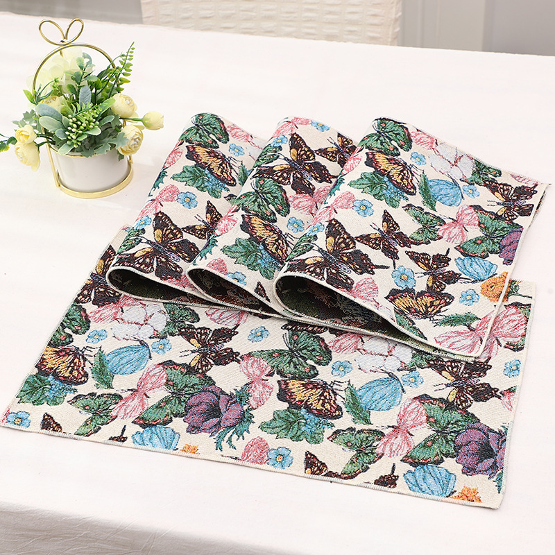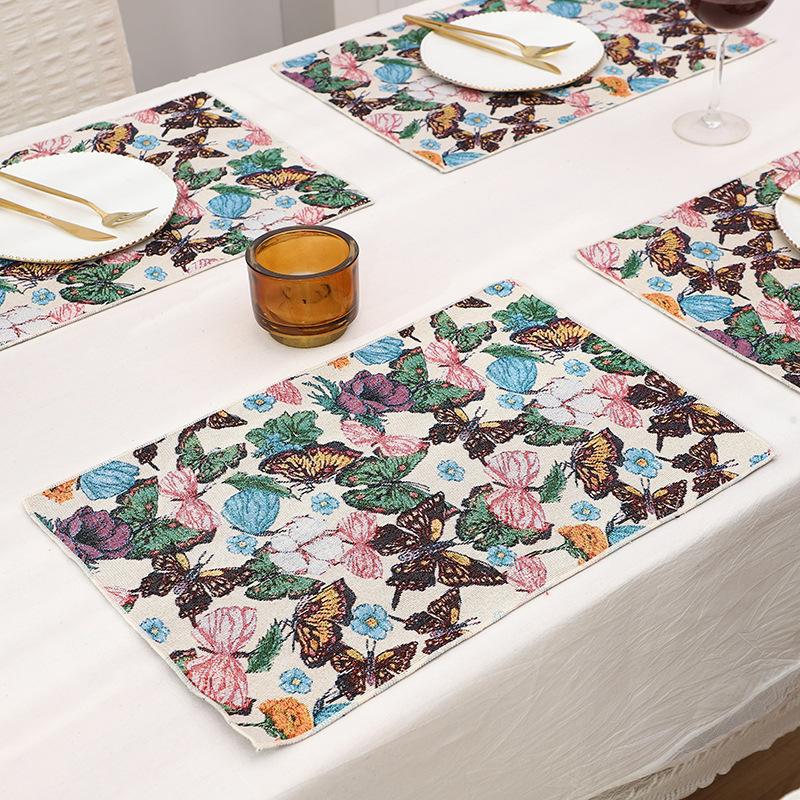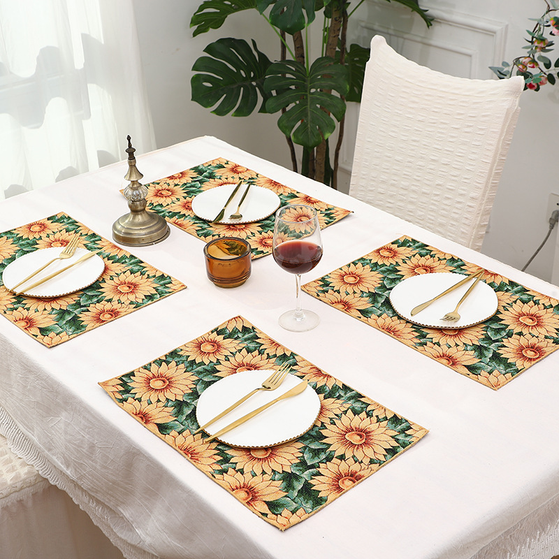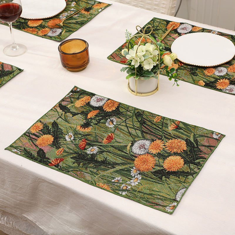 美式提花餐垫ins高颜值跨境花朵西餐隔热垫涤棉加厚面料防滑防污