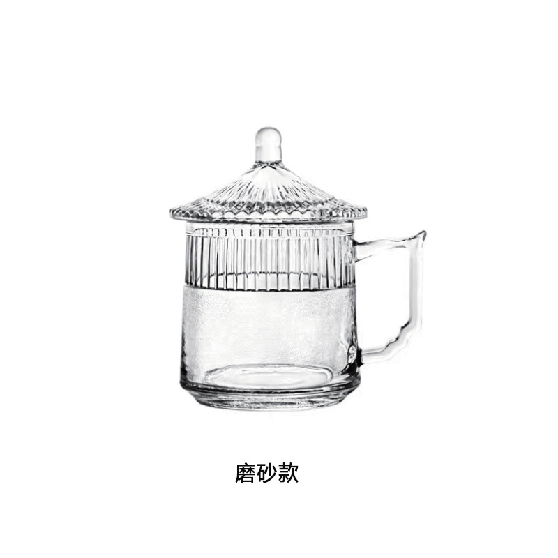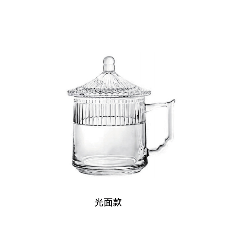 CYB010家用玻璃杯办公泡茶杯会议室待客杯子棋牌室带盖带把水杯礼