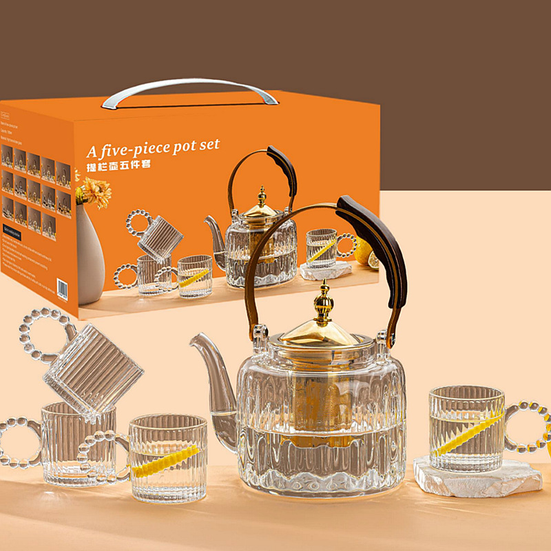 高颜值耐热玻璃提梁壶茶具五件套家用花茶壶泡茶壶套装 会销礼品