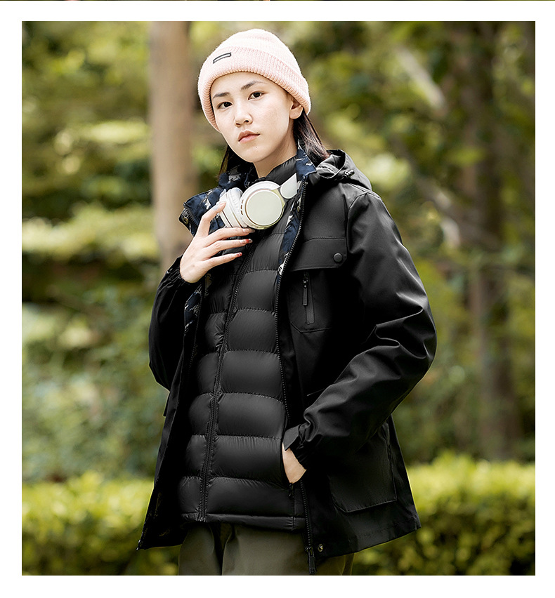 冲锋衣男秋季潮牌大码男装情侣登山服三防保暖羽绒棉服男士外套潮