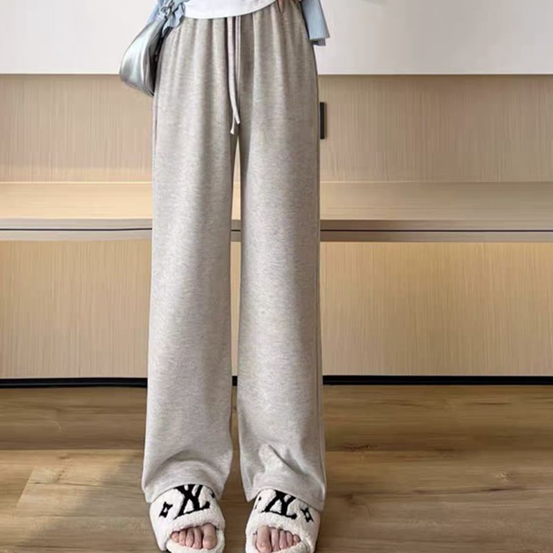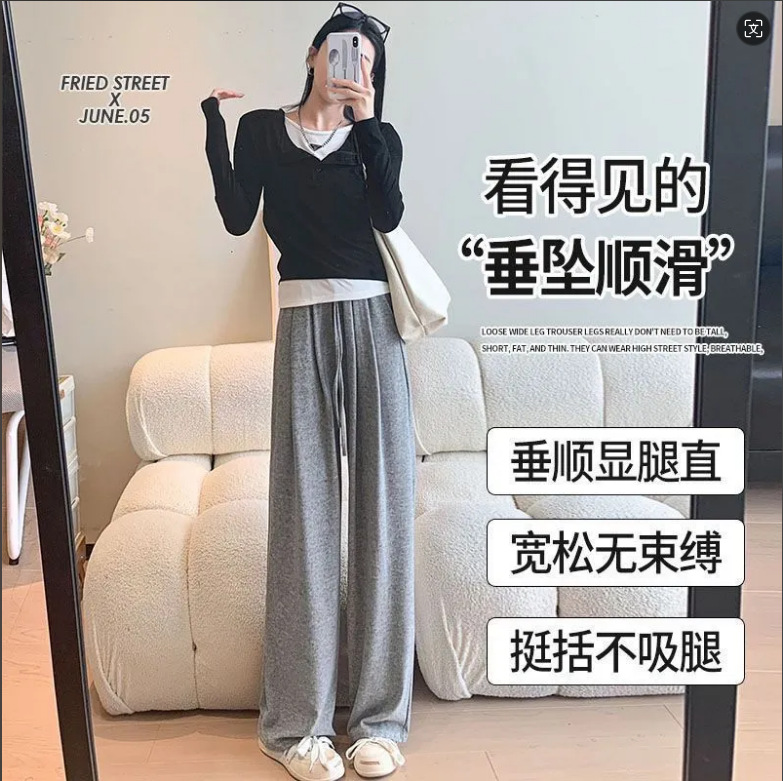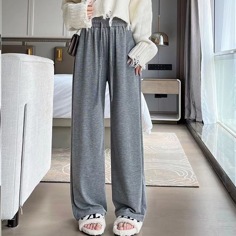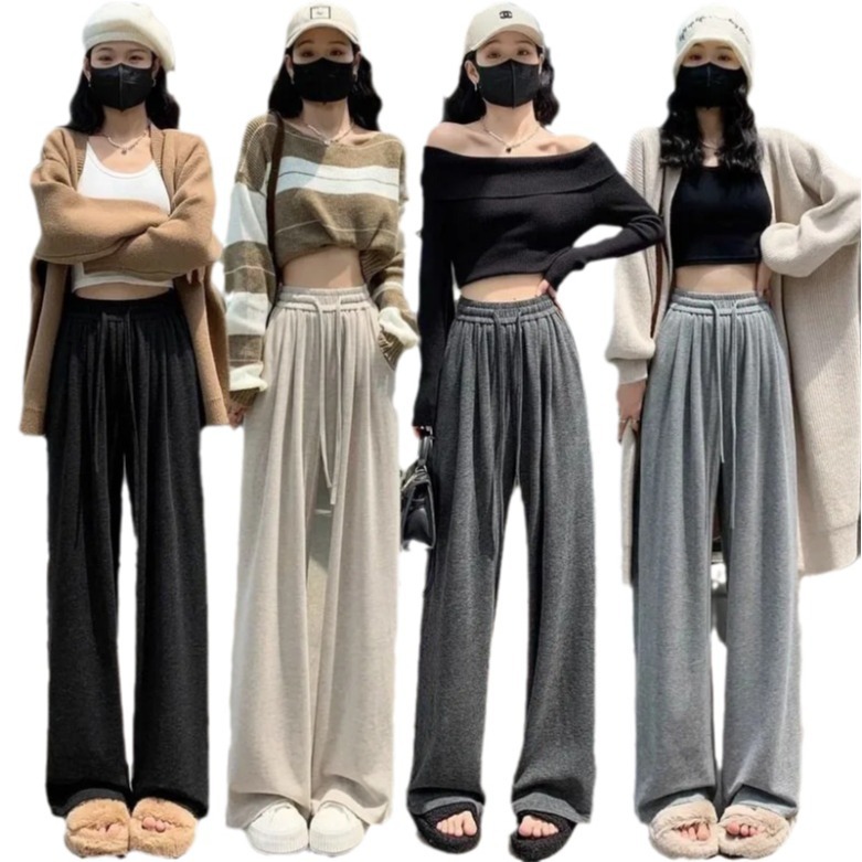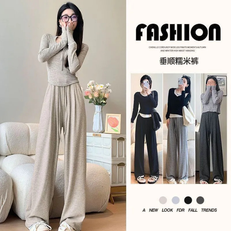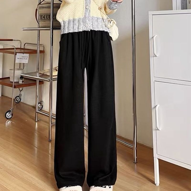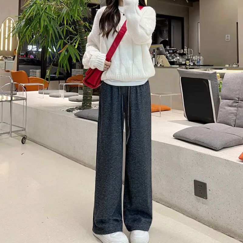 秋冬糯米裤女2024新款高腰垂感休闲裤针织阔腿裤直筒宽松慵懒休闲
