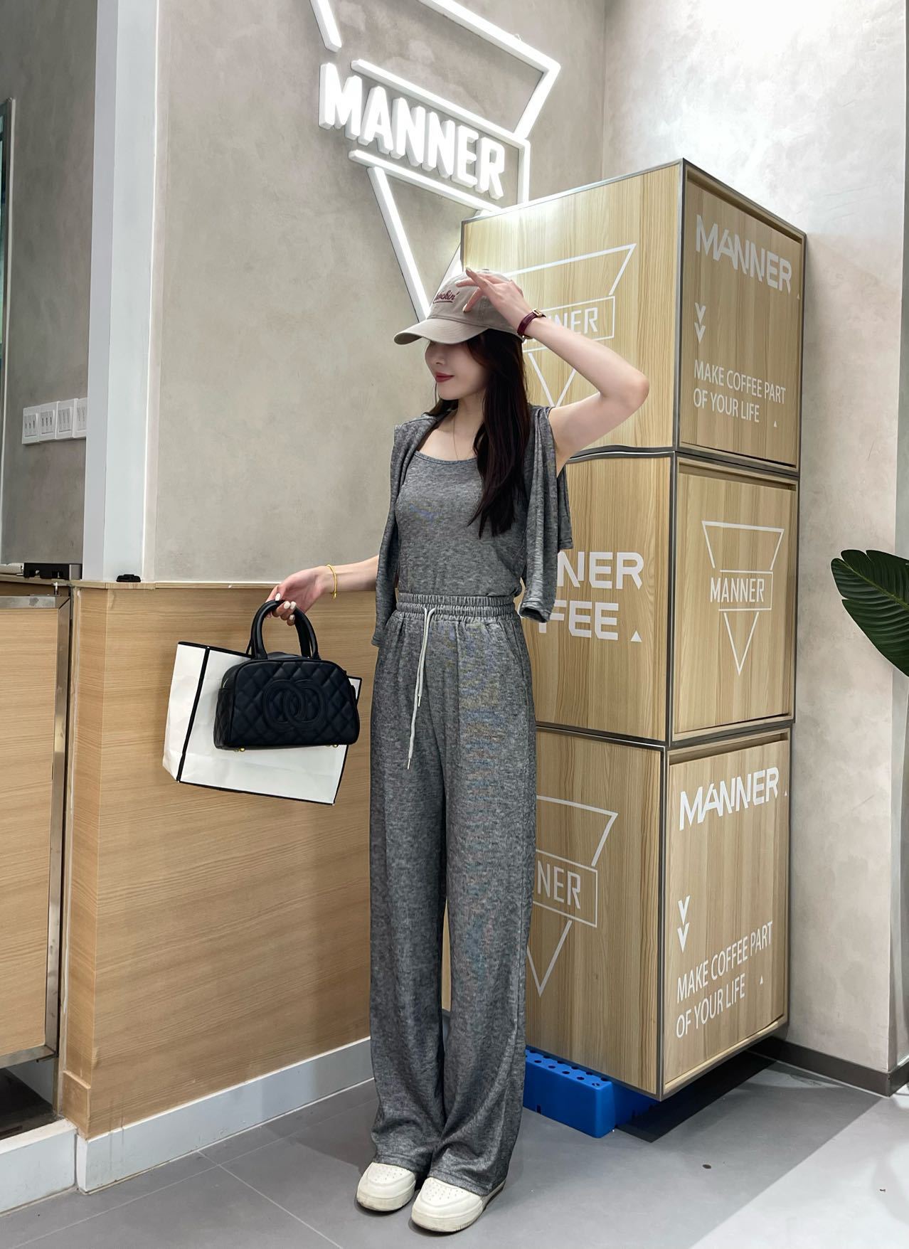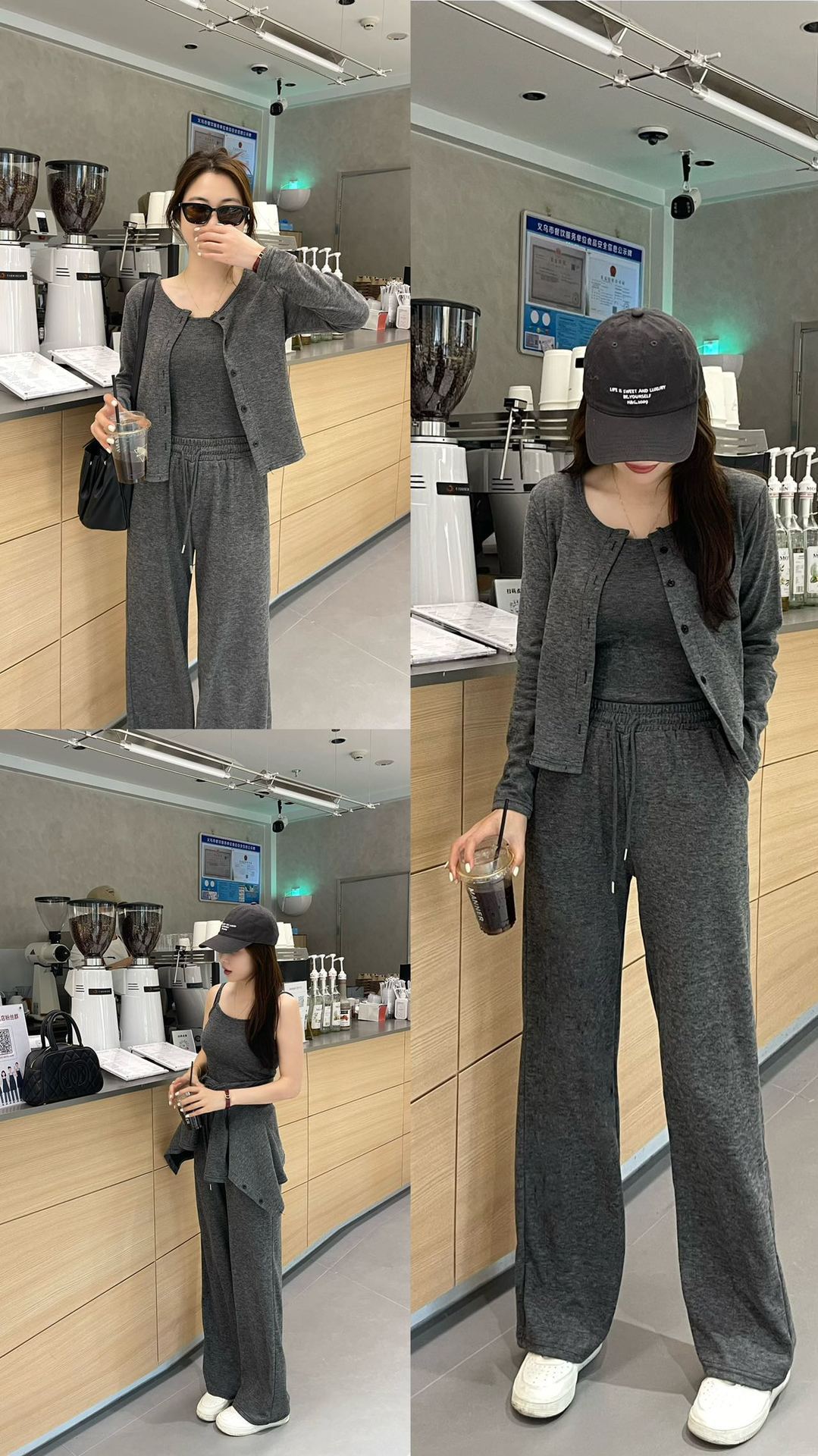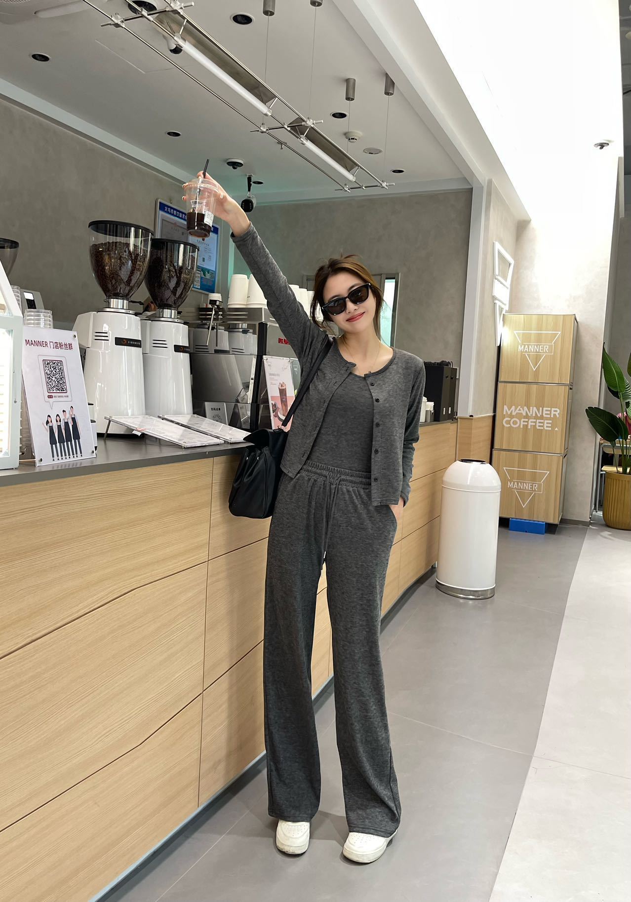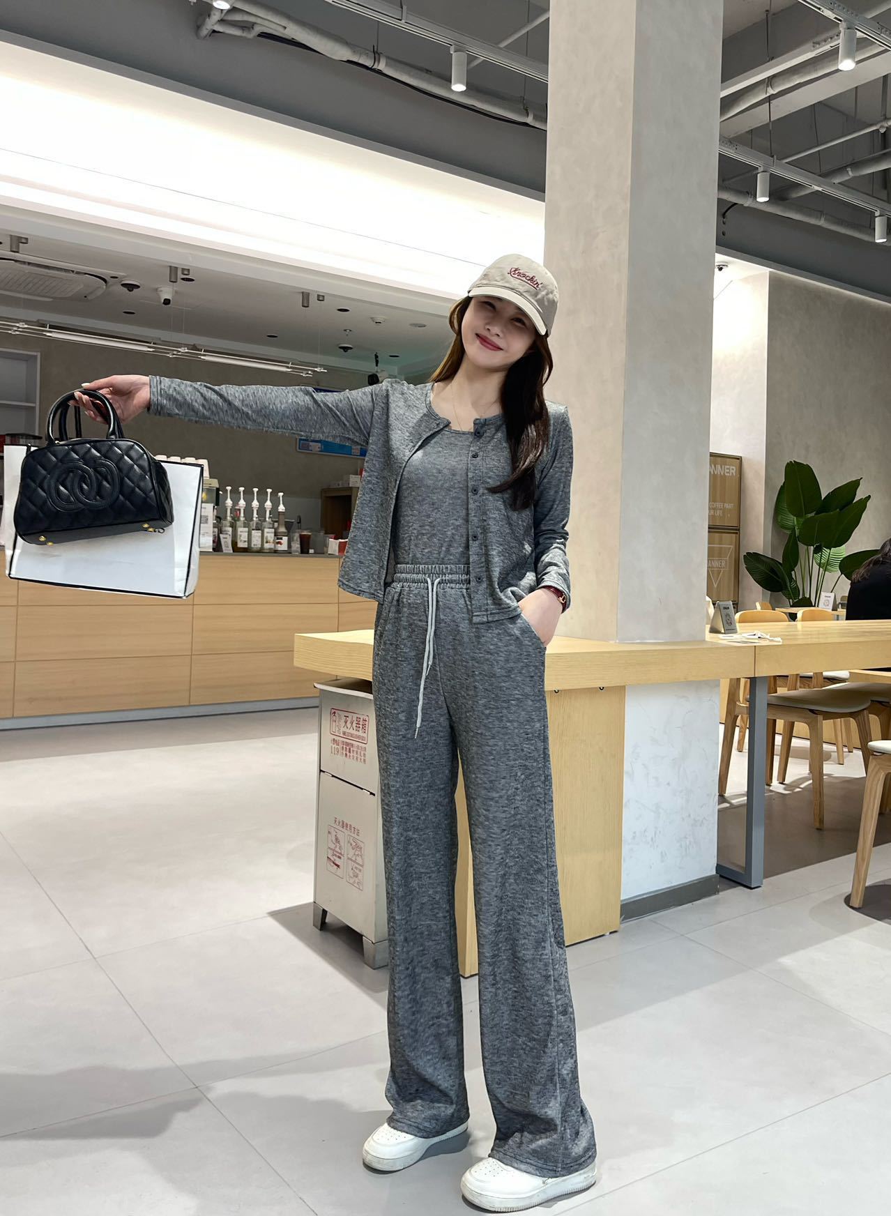 时尚糯米套装衣服秋季女一整套新款宽松长裤薄款高级感休闲三件套