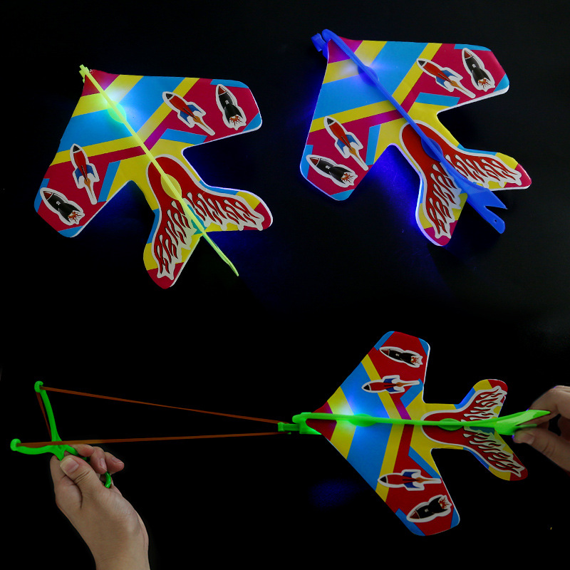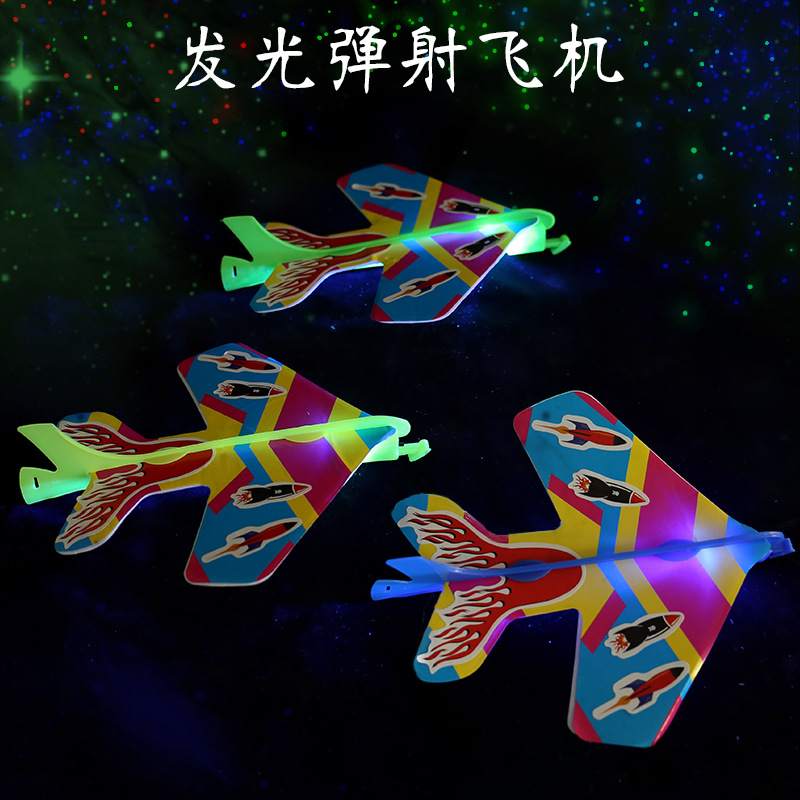 大号发光弹射飞机弹弓闪光弹力飞机男童户外活动飞天玩具货源批发