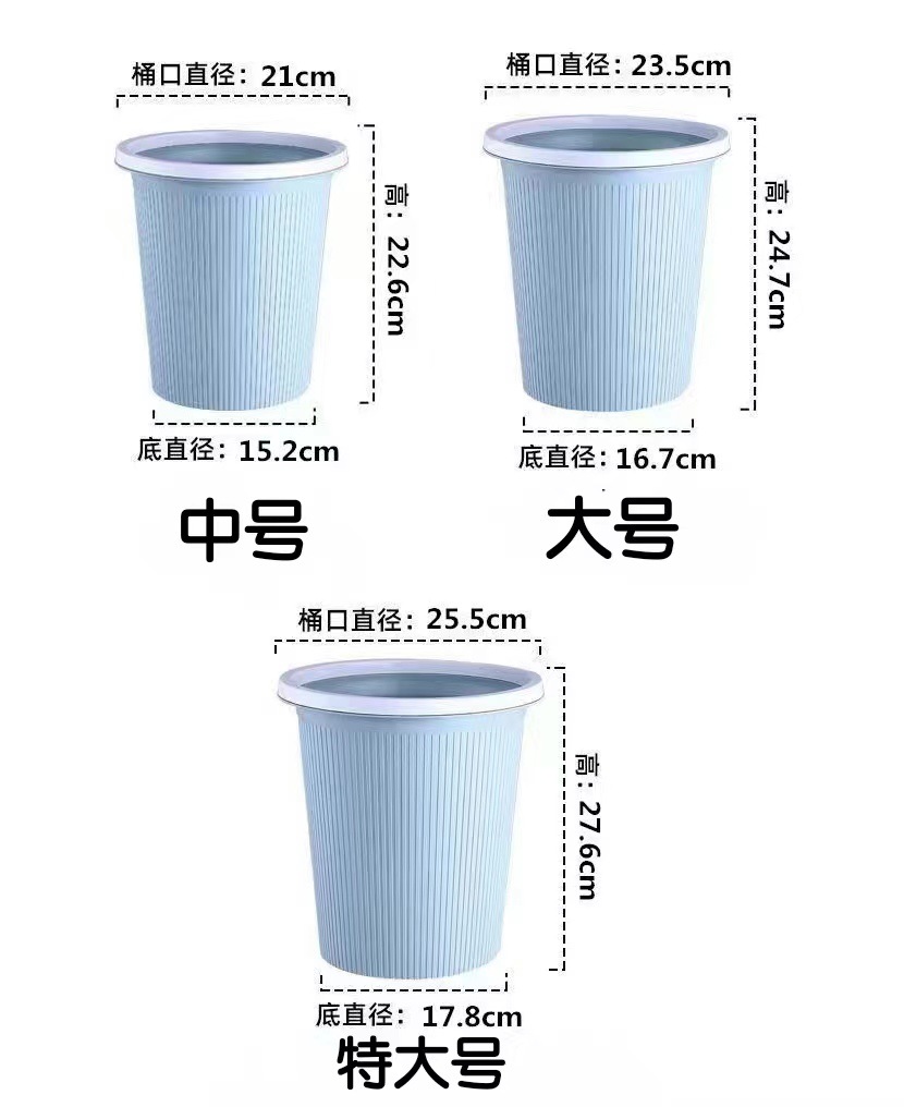 欧式家用条纹垃圾桶客厅卧室厨房厕所卫生间办公室无盖带压圈纸篓