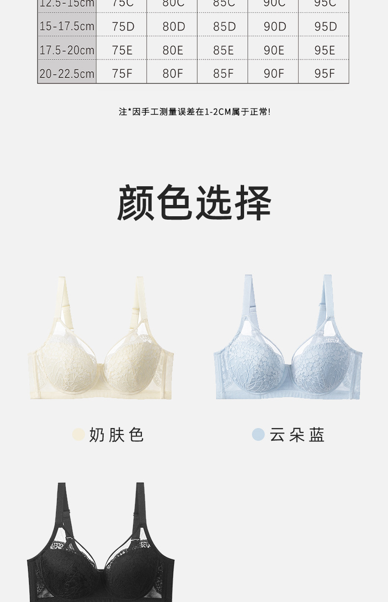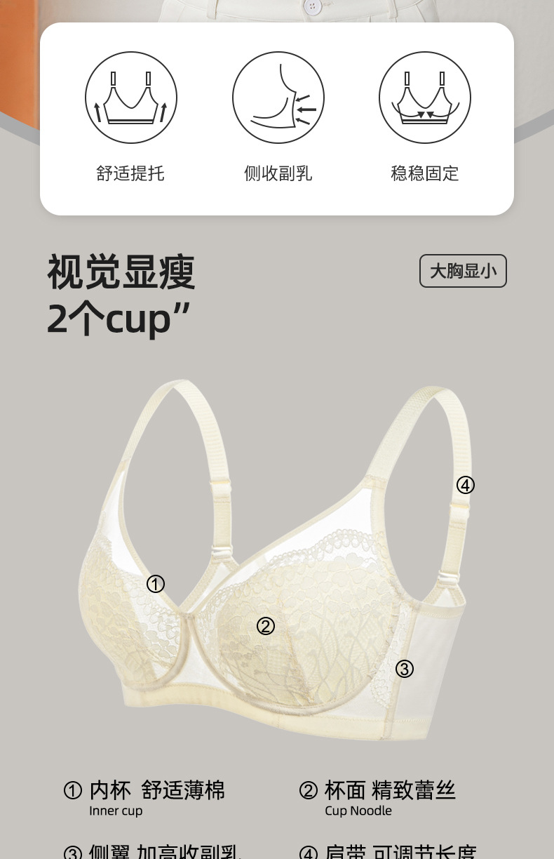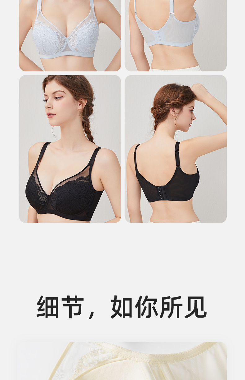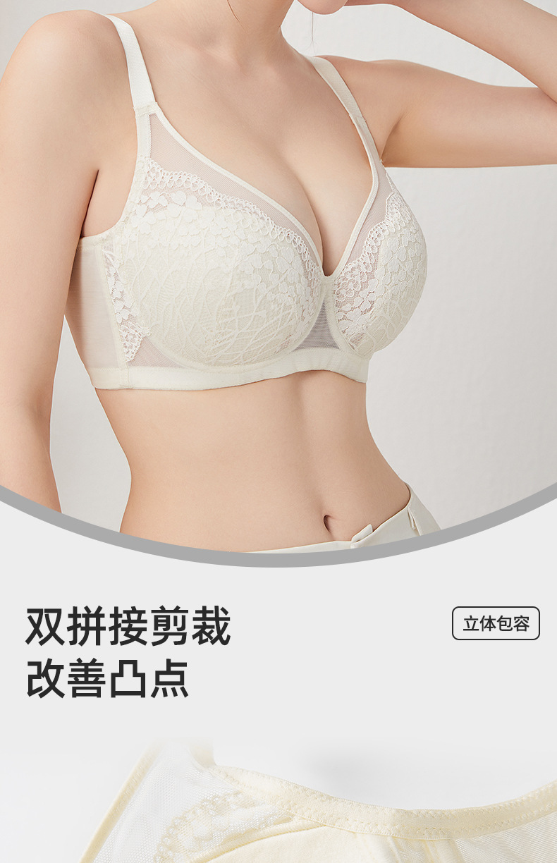 大胸显小超薄款内衣性感蕾丝软钢圈显瘦防凸点上托聚拢大杯文胸罩