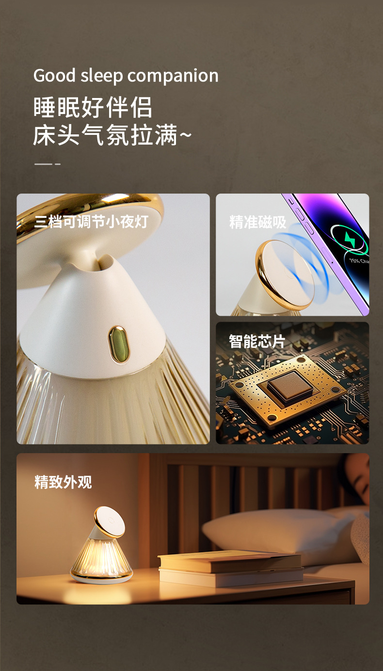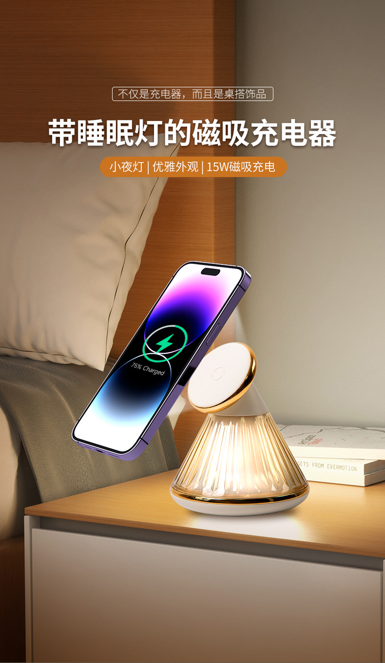 外贸专供2024适用苹果手机15W无线充电器支架磁吸创意小夜灯直供