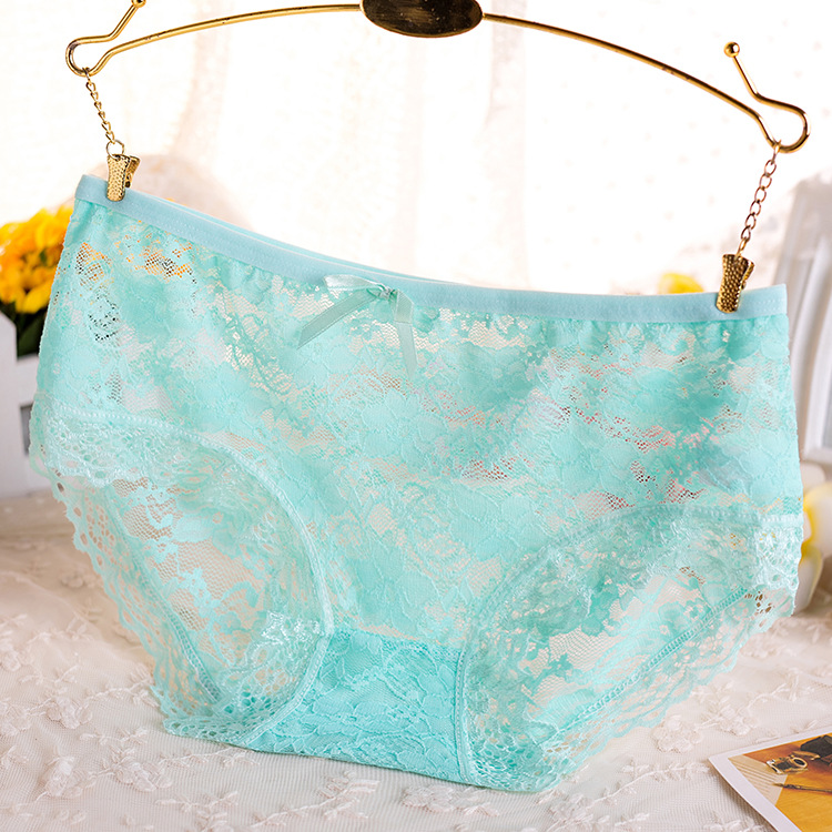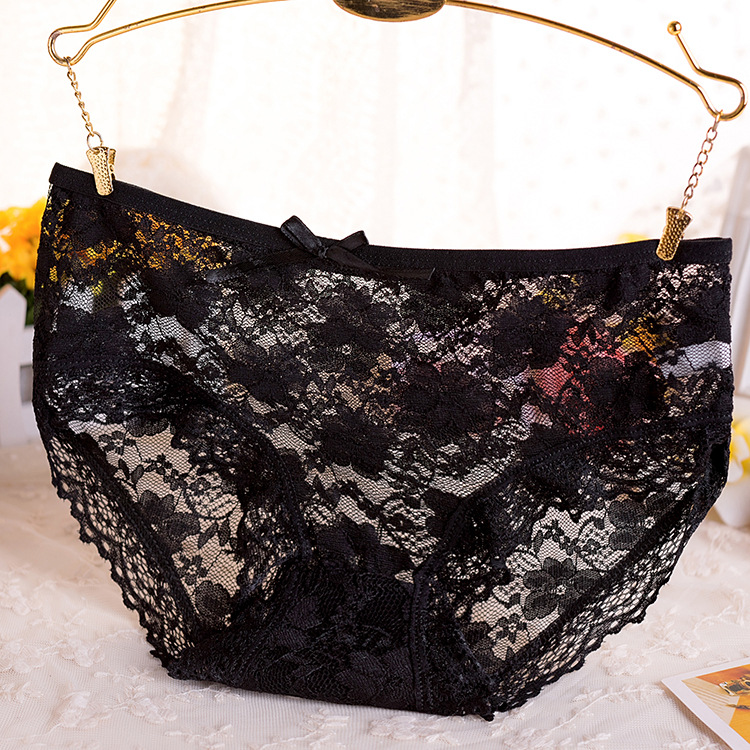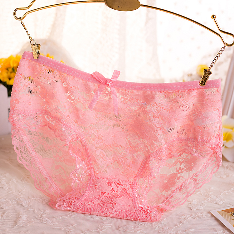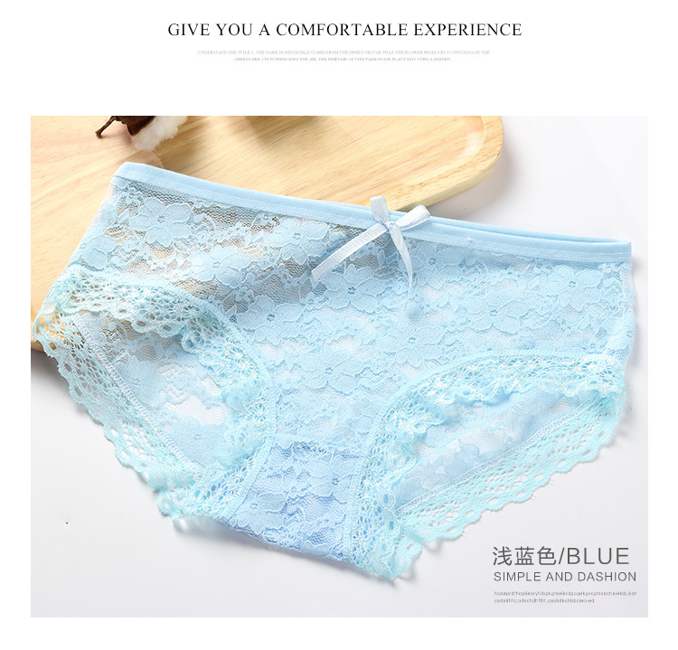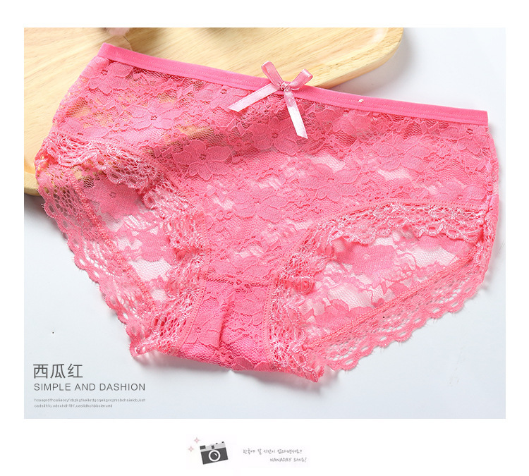 透气女士内裤性感半透明提花 蝴蝶结镂空蕾丝中腰三角裤017-2