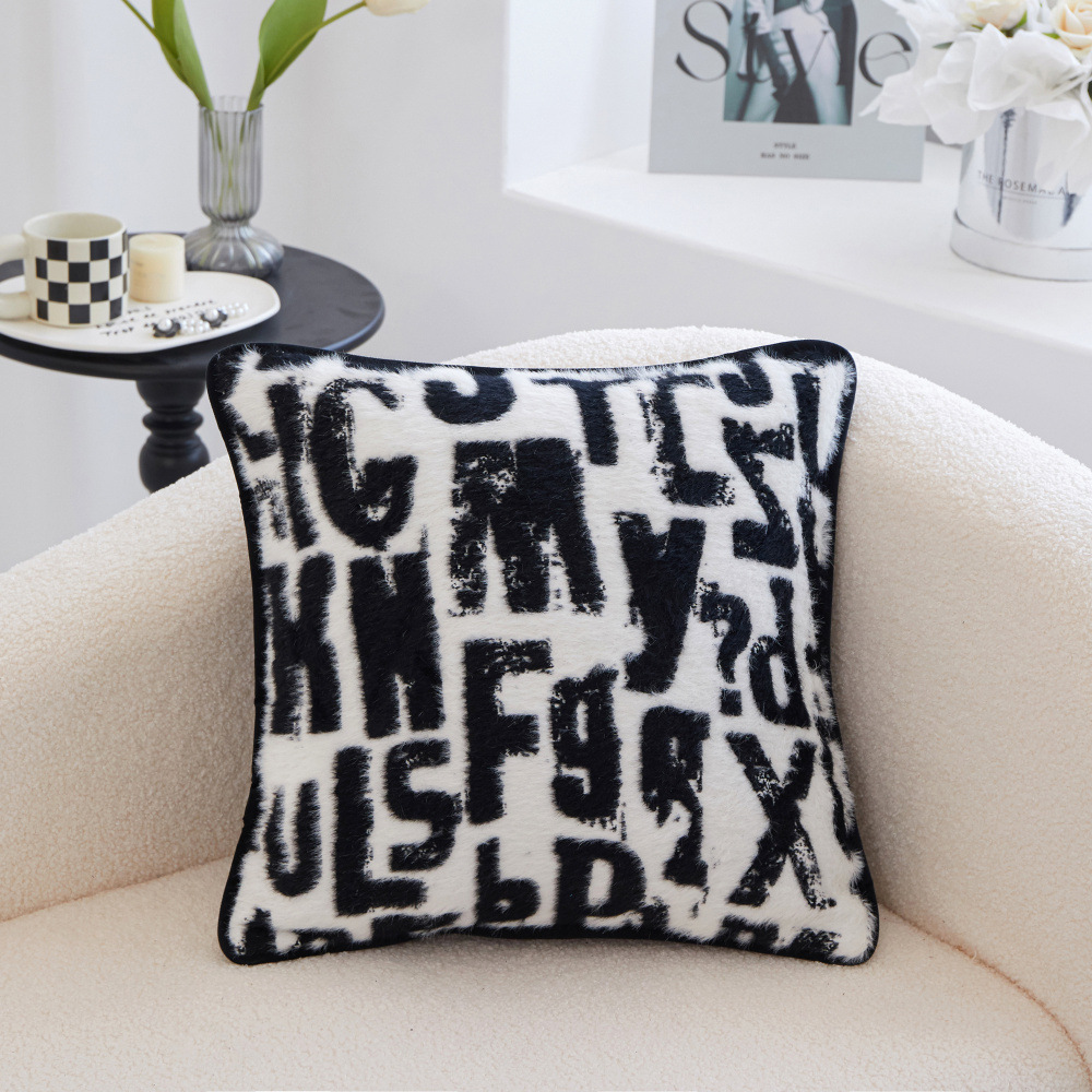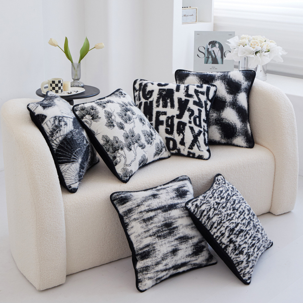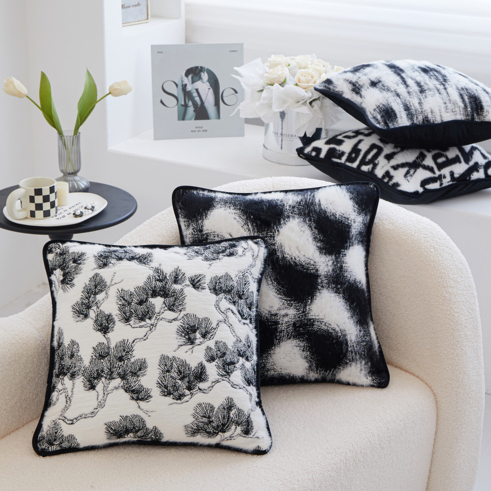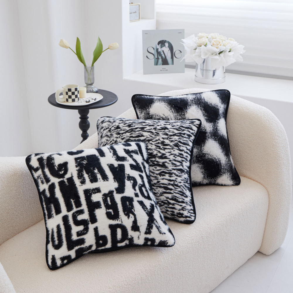 新款轻奢水貂绒针织抱枕套居家卧室床头黑白系抱枕客厅沙发靠垫套