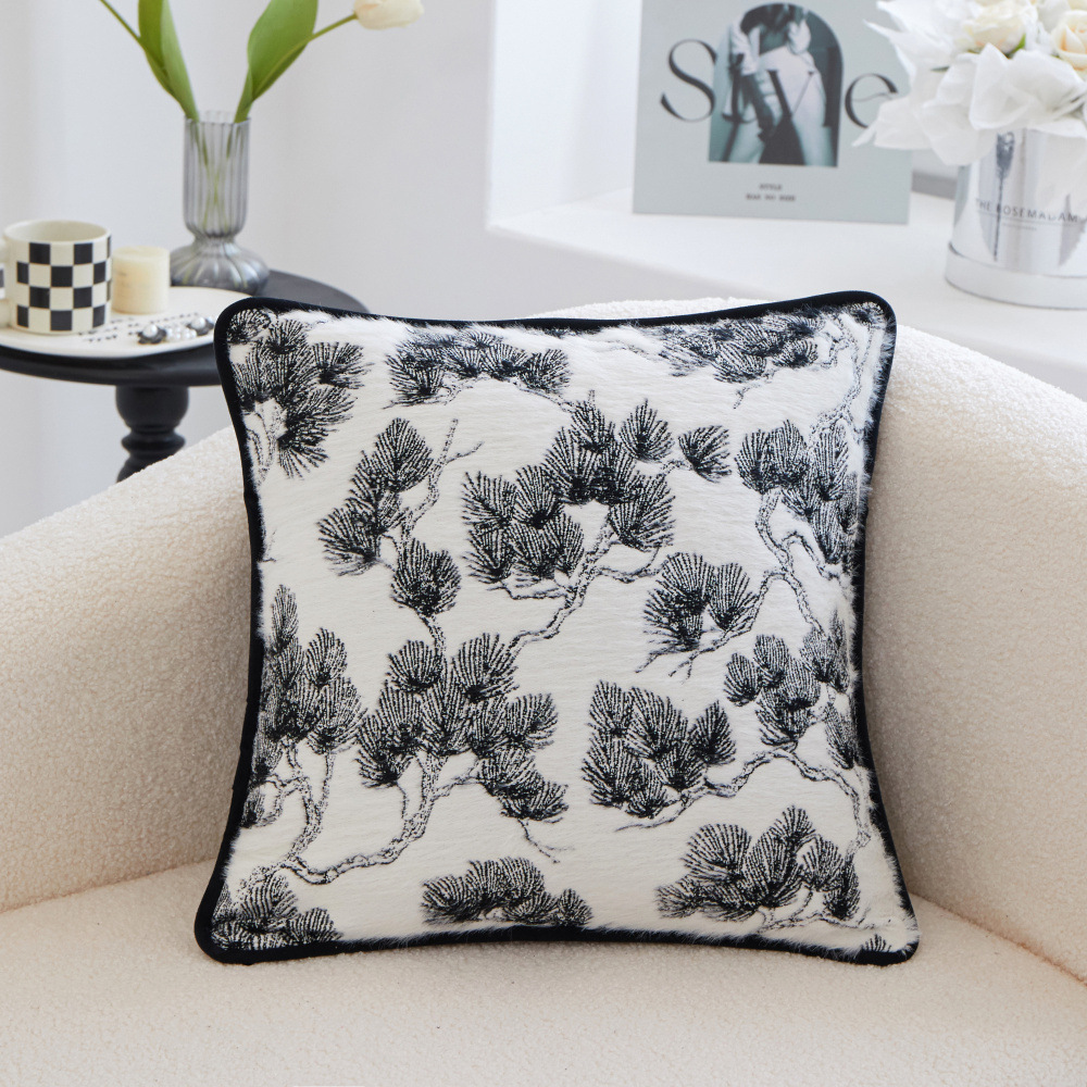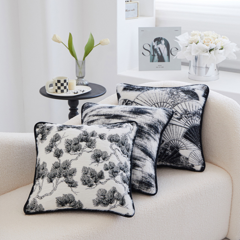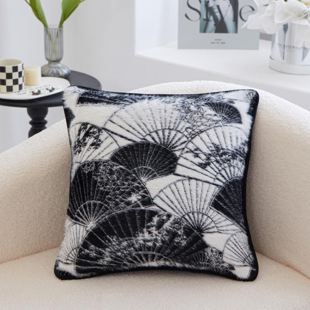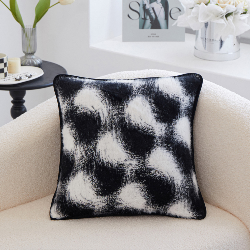 新款轻奢水貂绒针织抱枕套居家卧室床头黑白系抱枕客厅沙发靠垫套