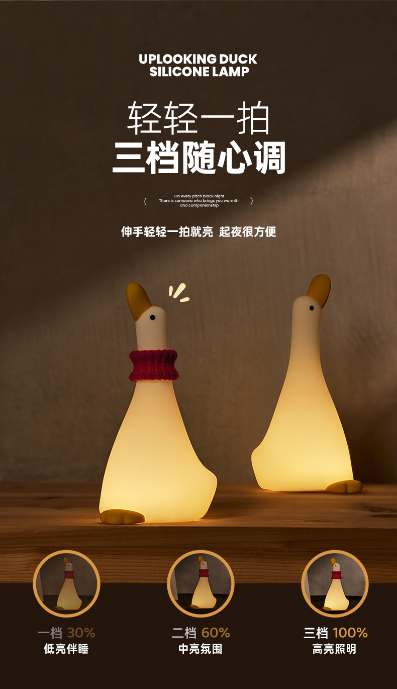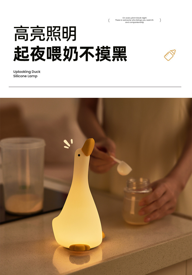 仰望鸭硅胶小夜灯拍拍灯儿童喂奶灯床头伴睡灯起夜灯USB充电