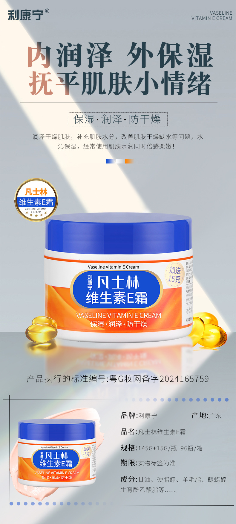 凡士林维生素E霜保湿防干燥秋冬面部全身护理颈霜补水正品润肤露