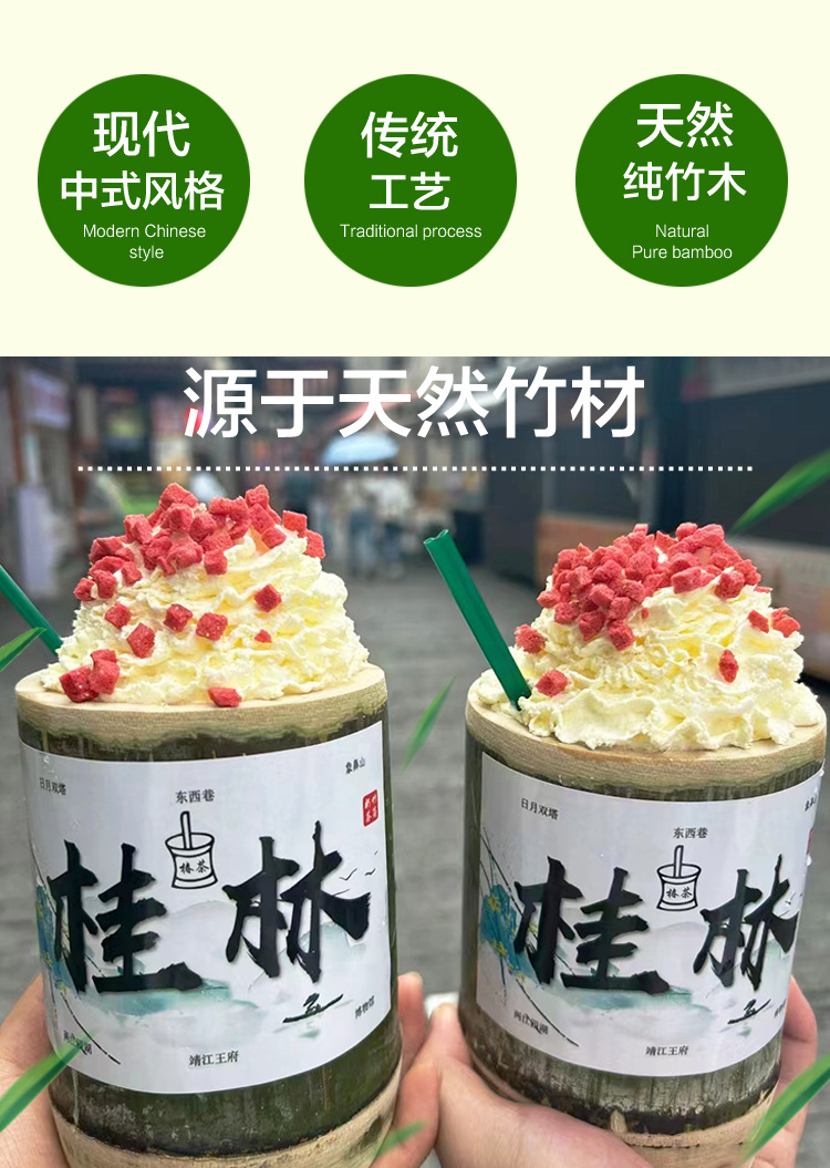 源头厂家批发新鲜竹子竹制圆形竹筒奶茶杯圆形竹筒蛋糕杯