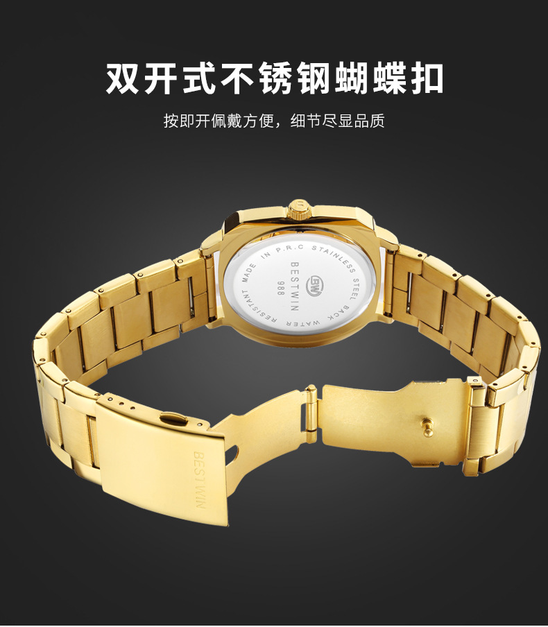 外贸跨境批发男士手表男潮流博士通BESTWIN金色U型时尚男表批发