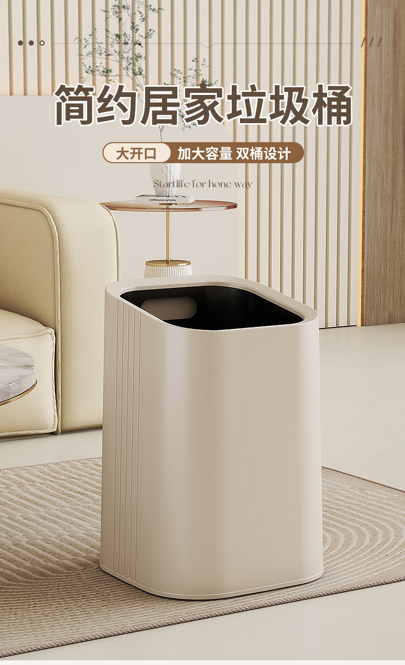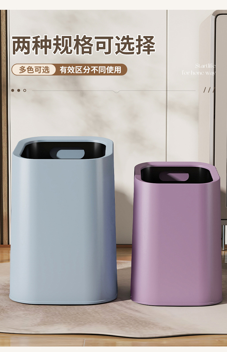 垃圾桶家用客厅厕所用高级感厨房卫生间免脏手大容量无盖方形纸篓