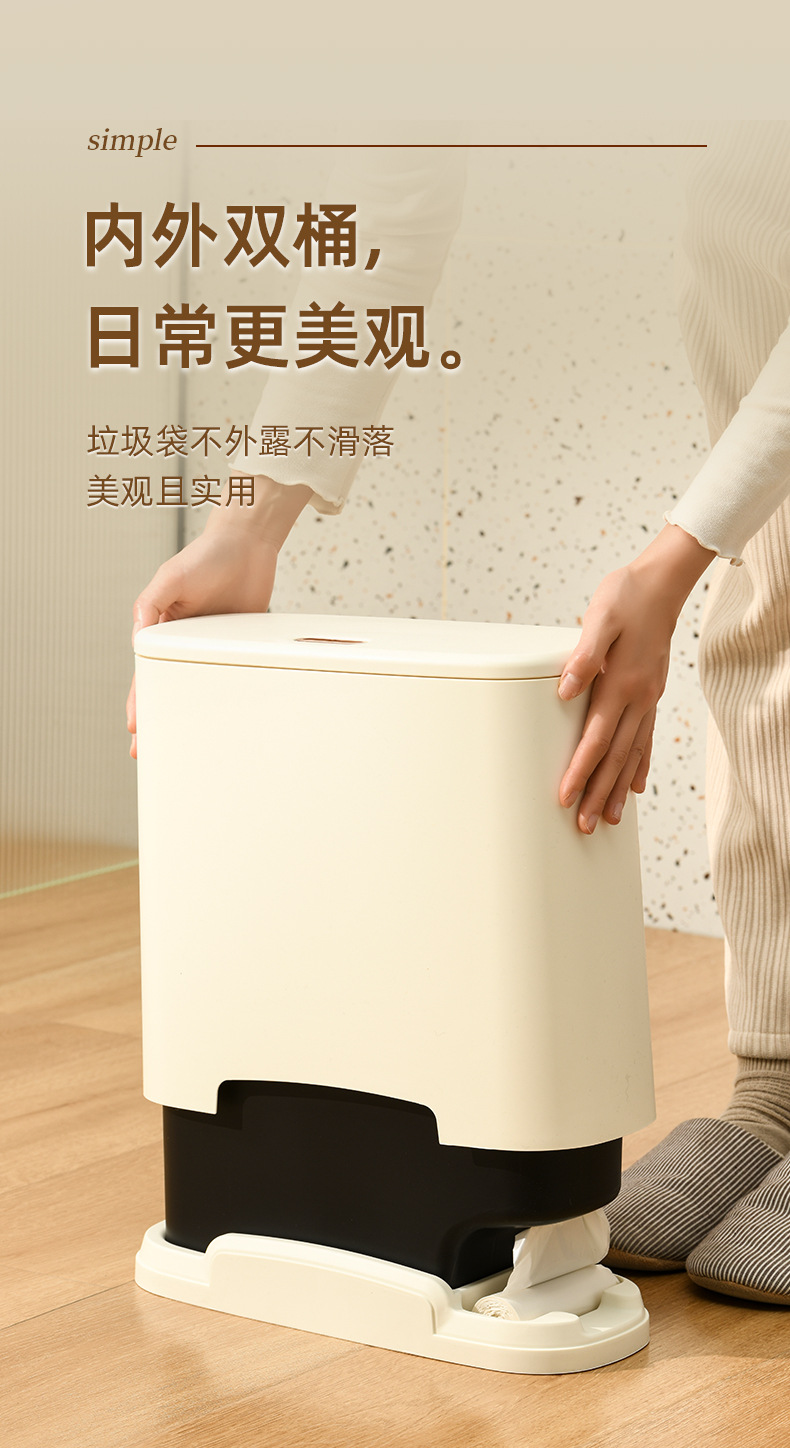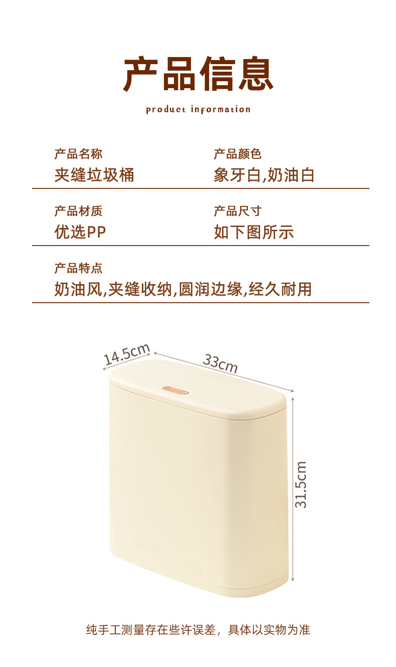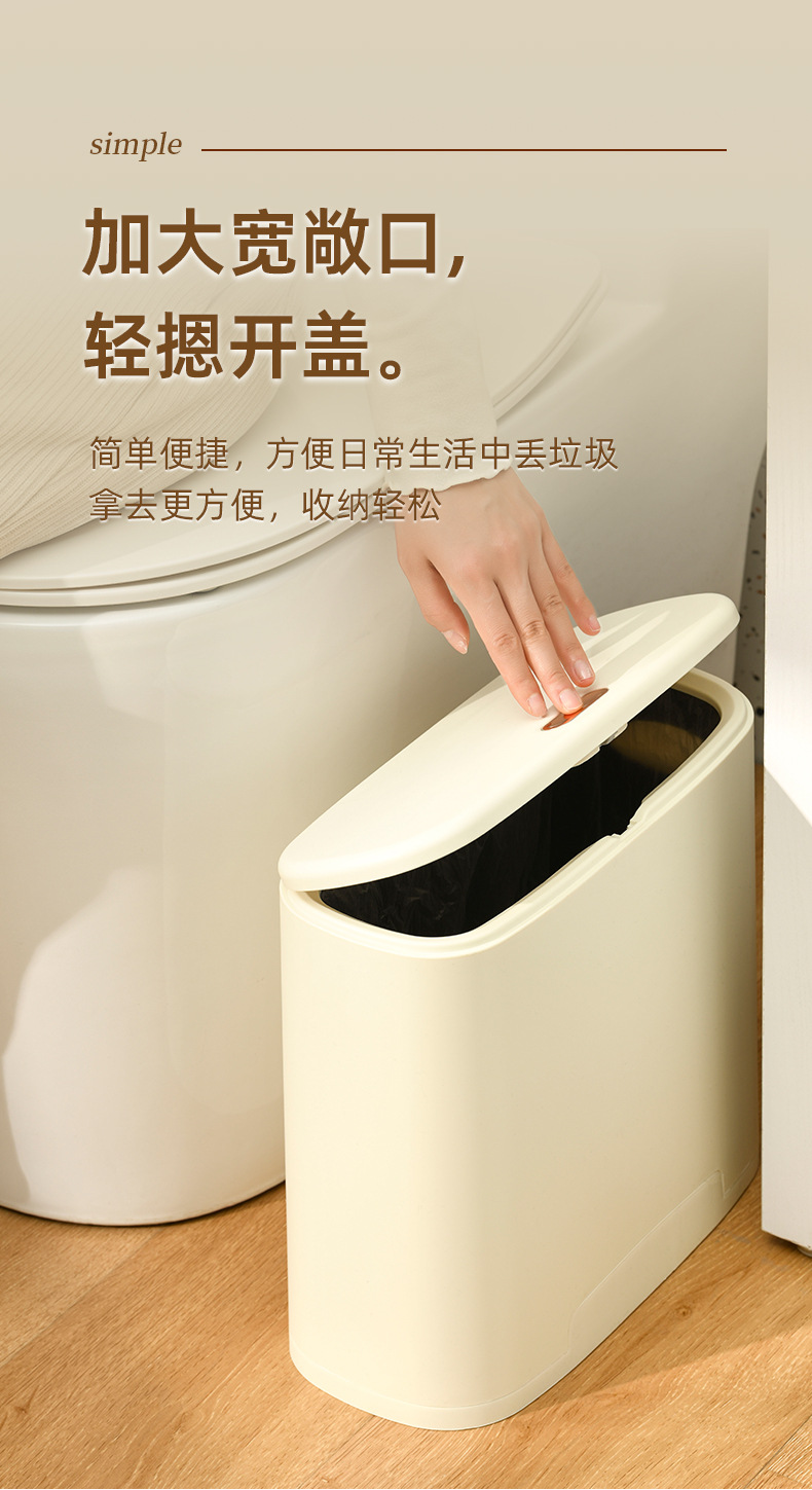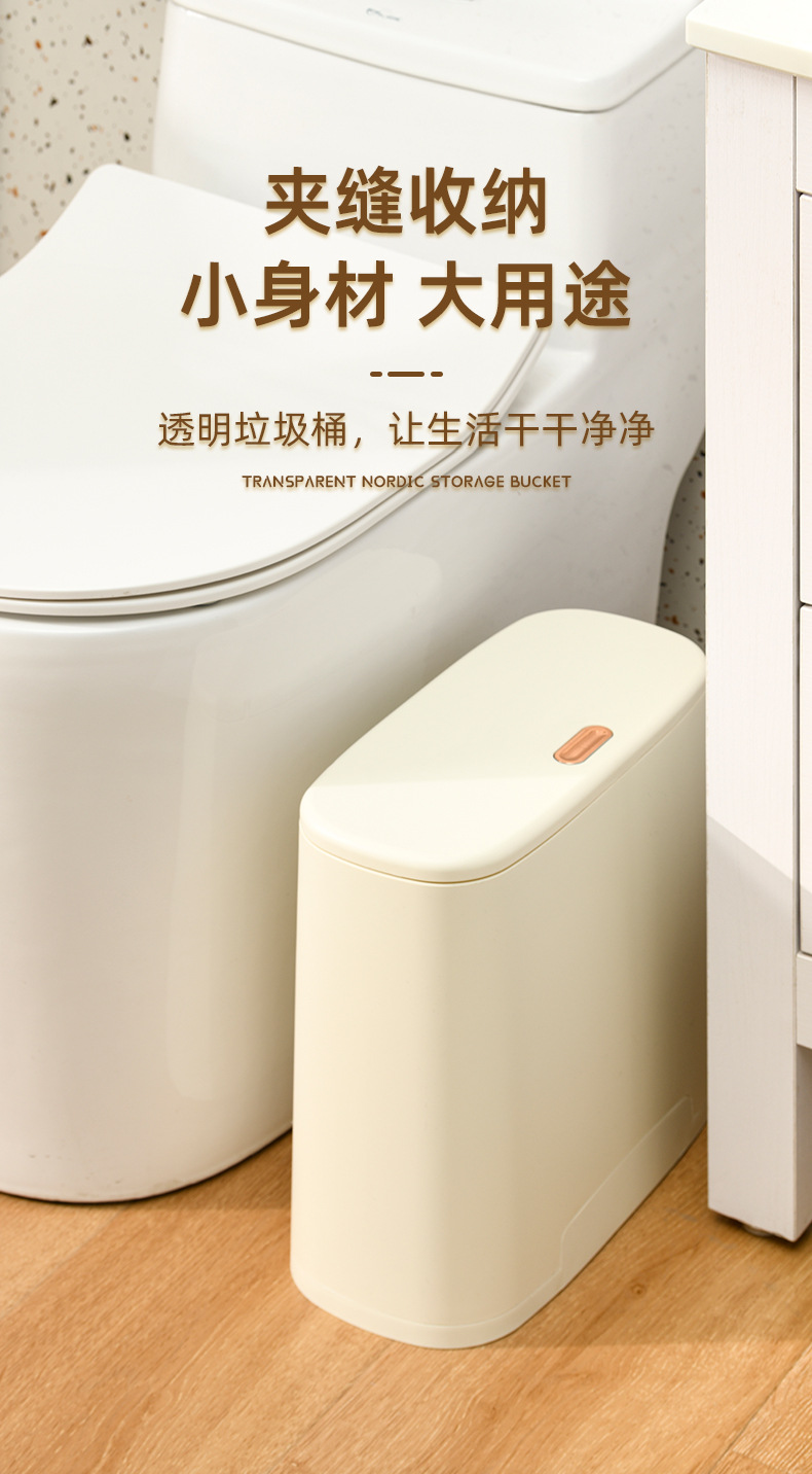 夹缝垃圾桶家用厕所用清洁桶高级感卫生间收纳桶免脏手按压弹盖款