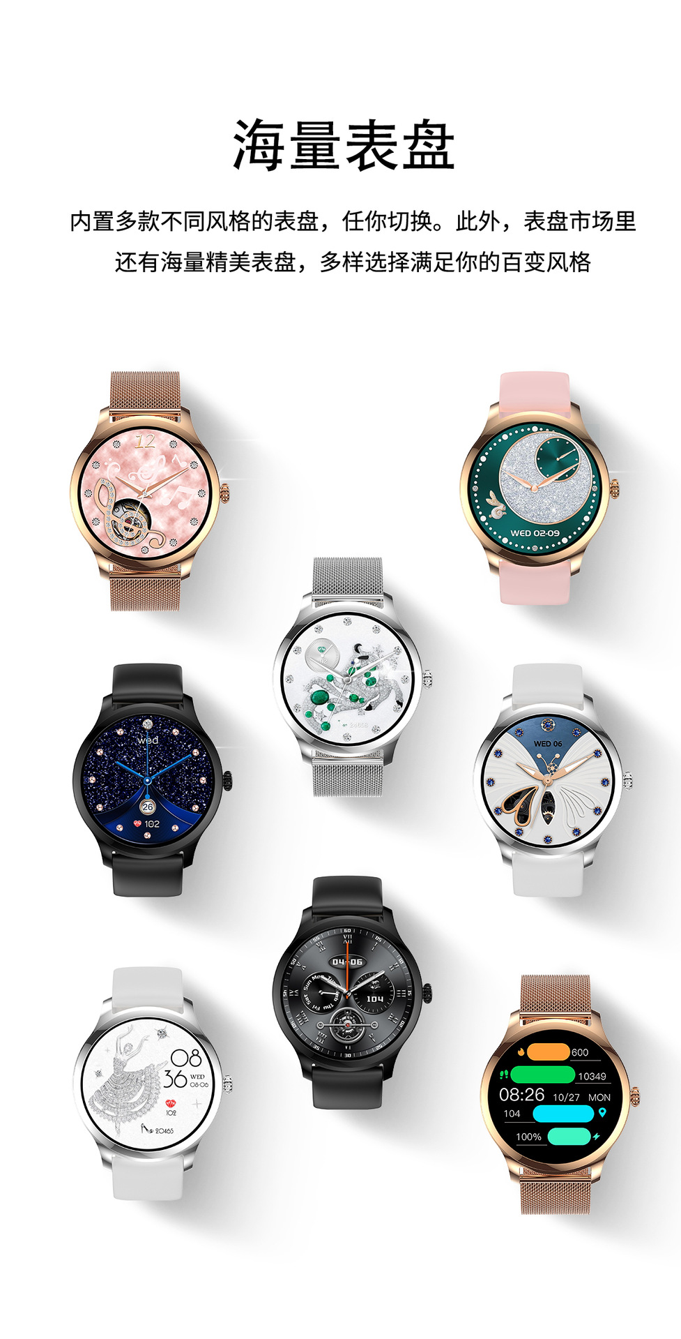 LW92/LW07女性智能手表 1.32寸屏蓝牙通话生理期提醒防水智能手表