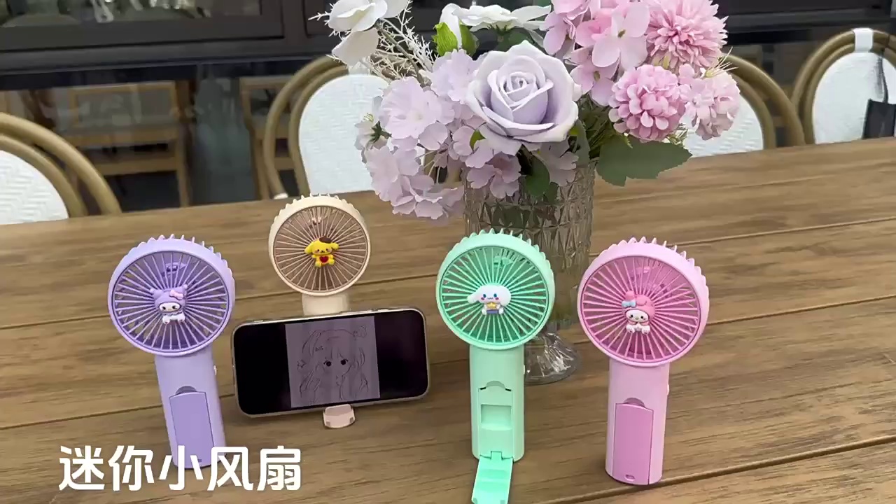 2024新款手持小风扇便携式USB充电卡通桌面手机支架一体化电风扇
