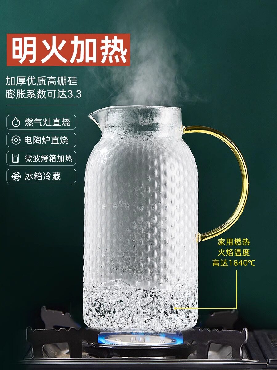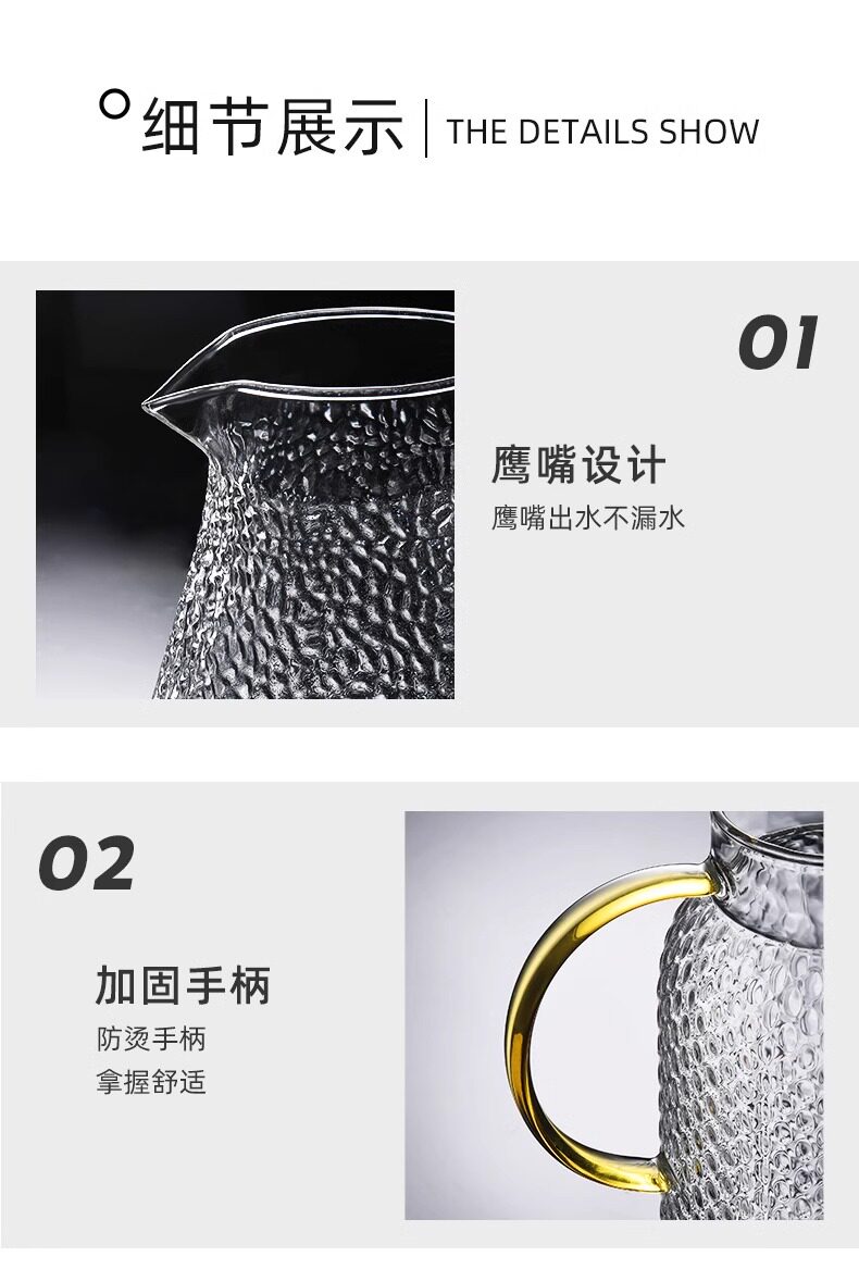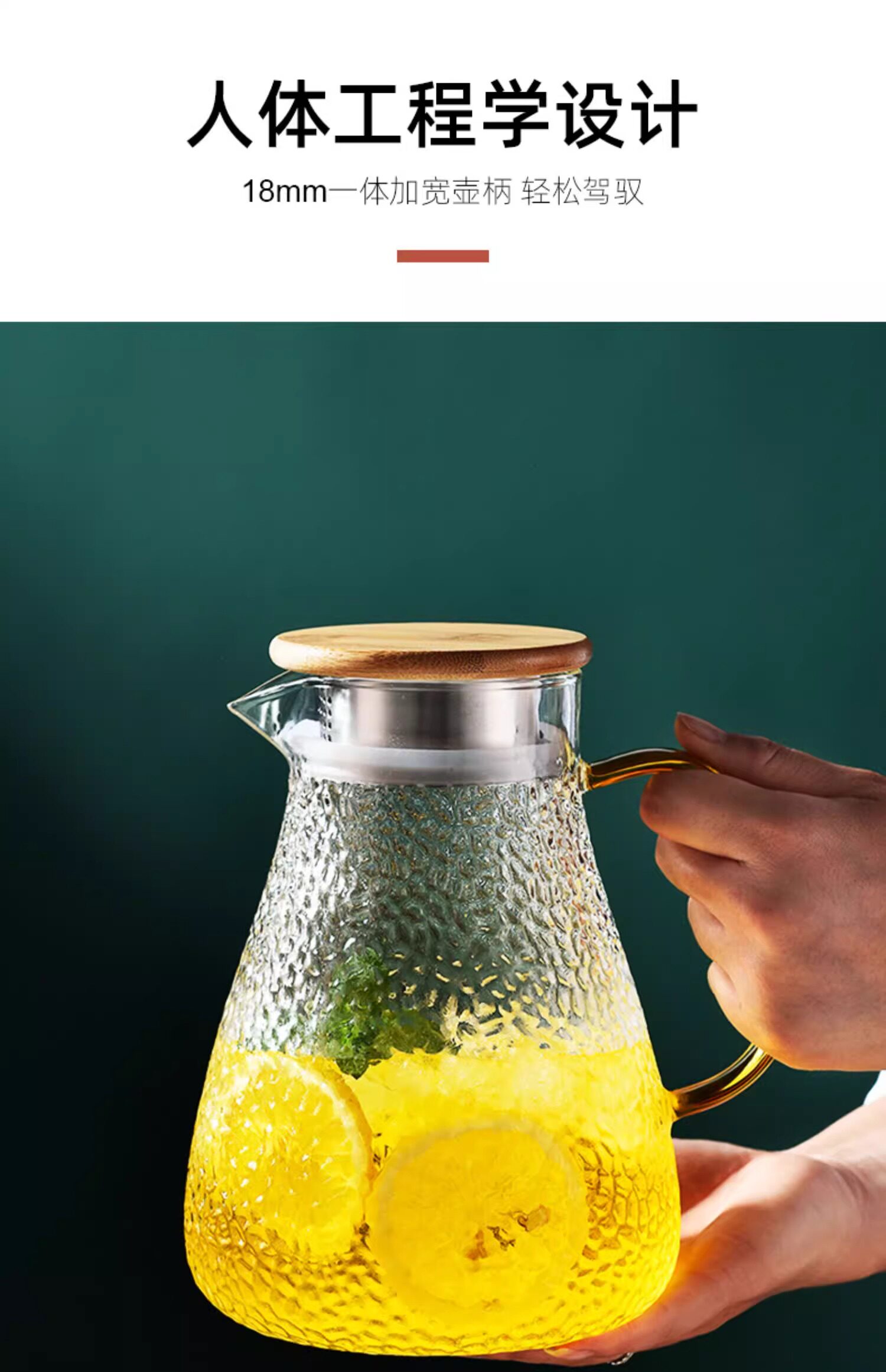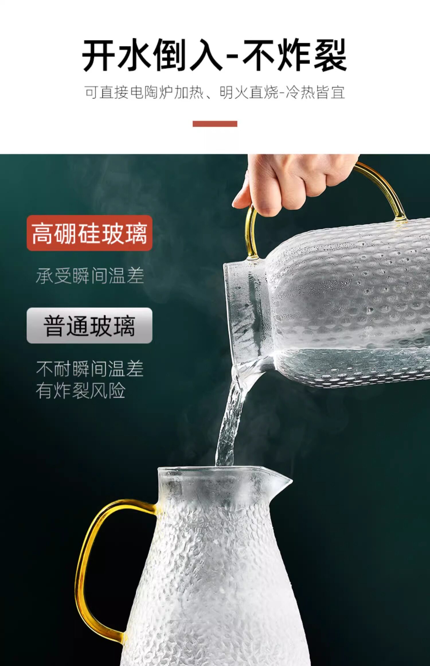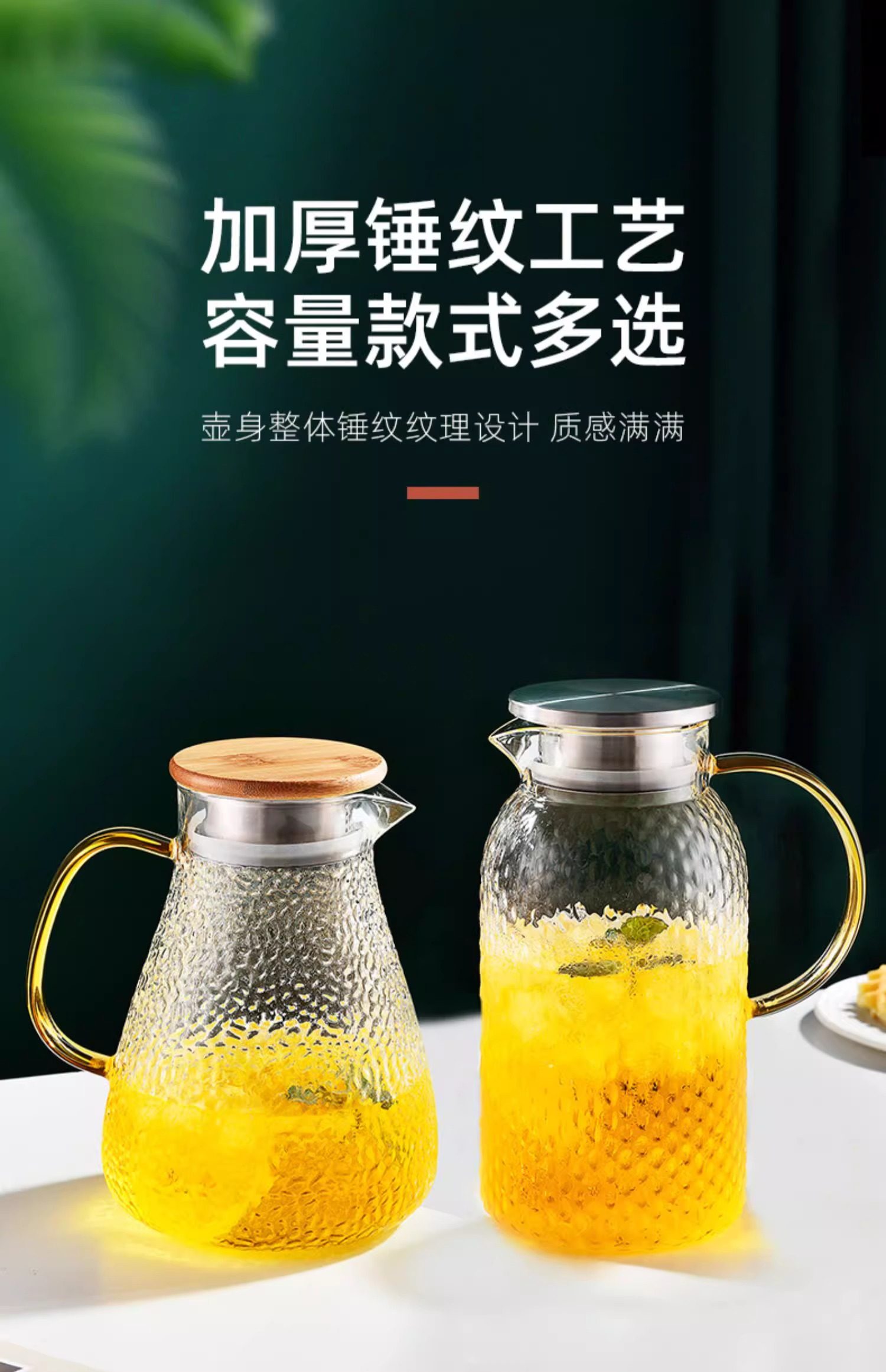 凉水壶玻璃耐高温冷水壶家用夏季大容量泡茶茶壶防摔锤纹瓶凉水杯