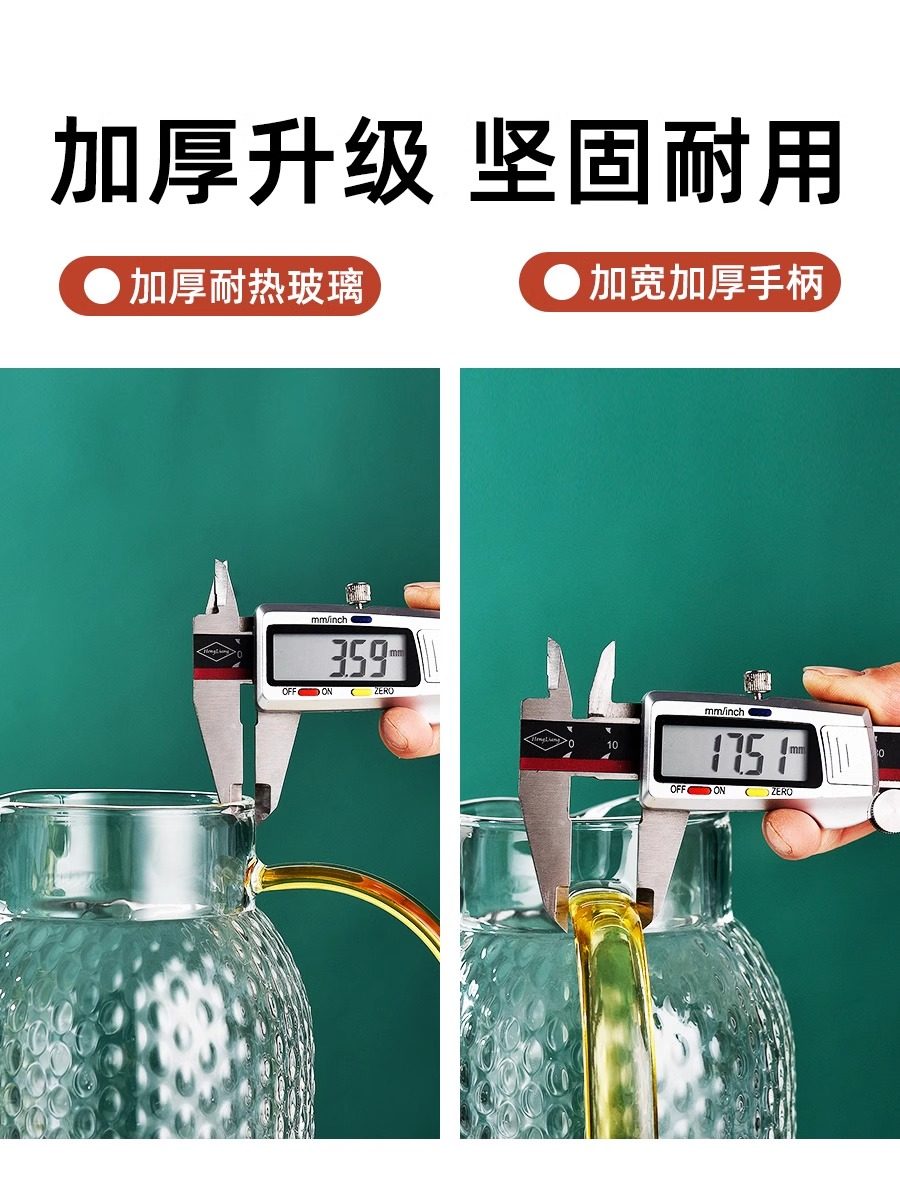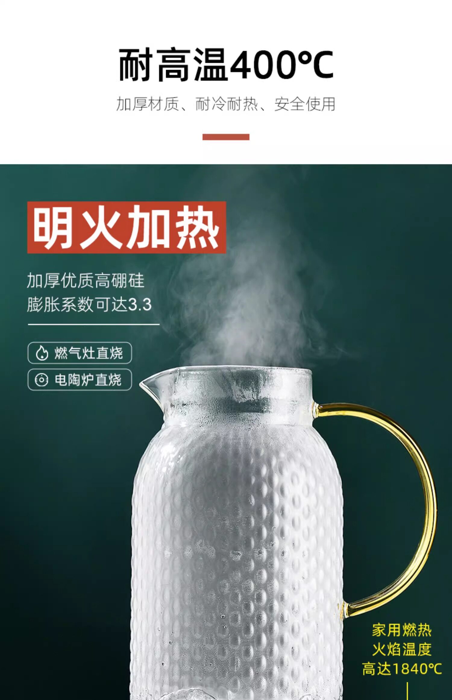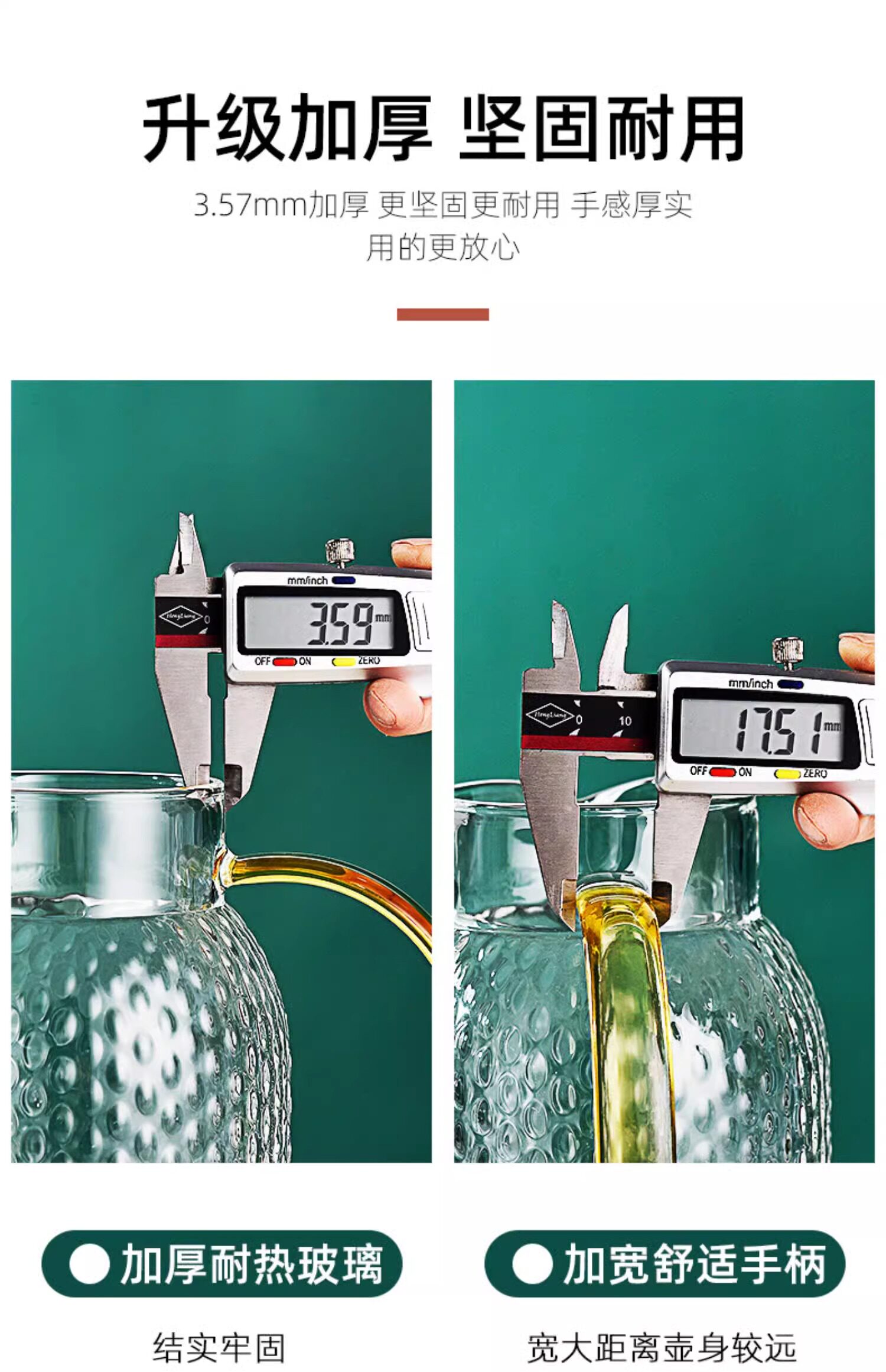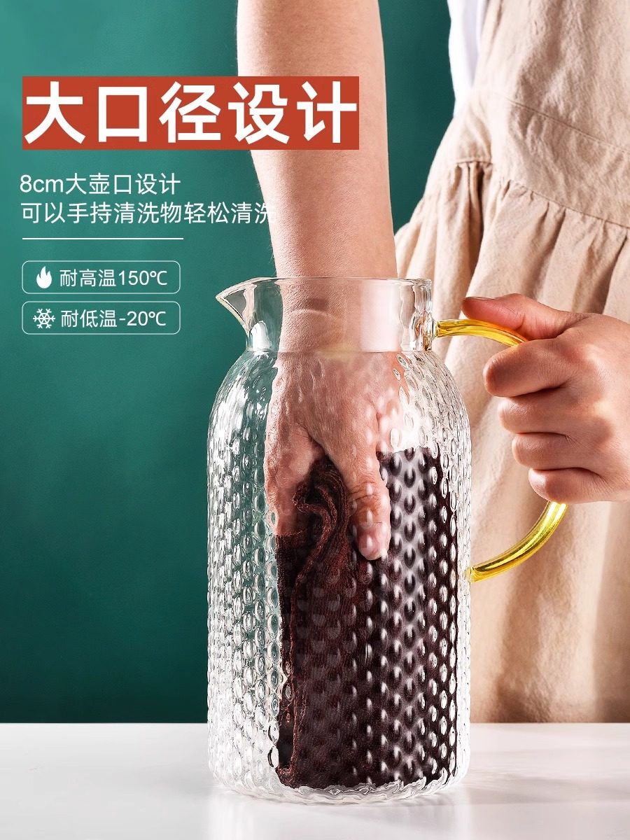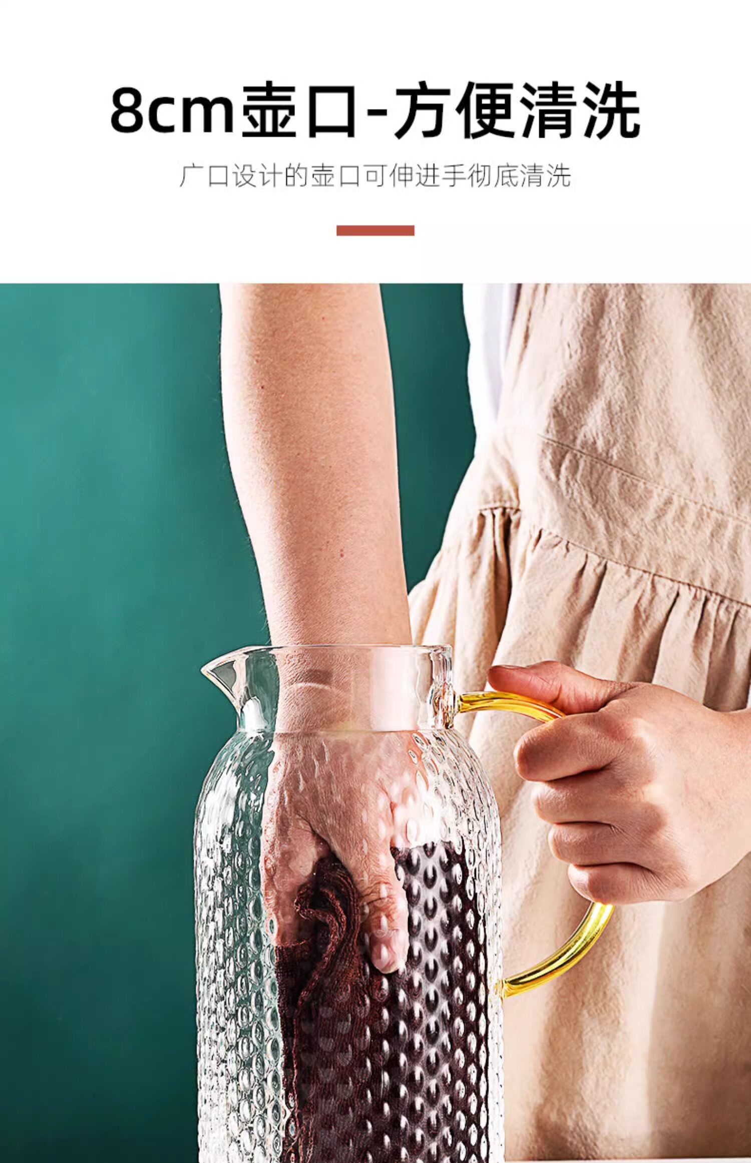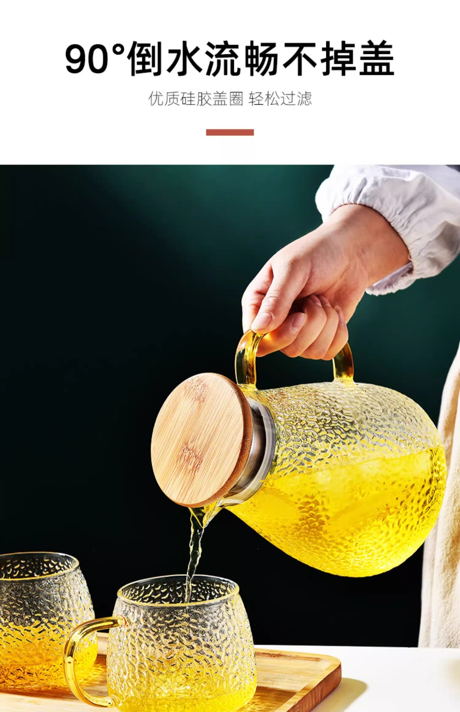 凉水壶玻璃耐高温冷水壶家用夏季大容量泡茶茶壶防摔锤纹瓶凉水杯