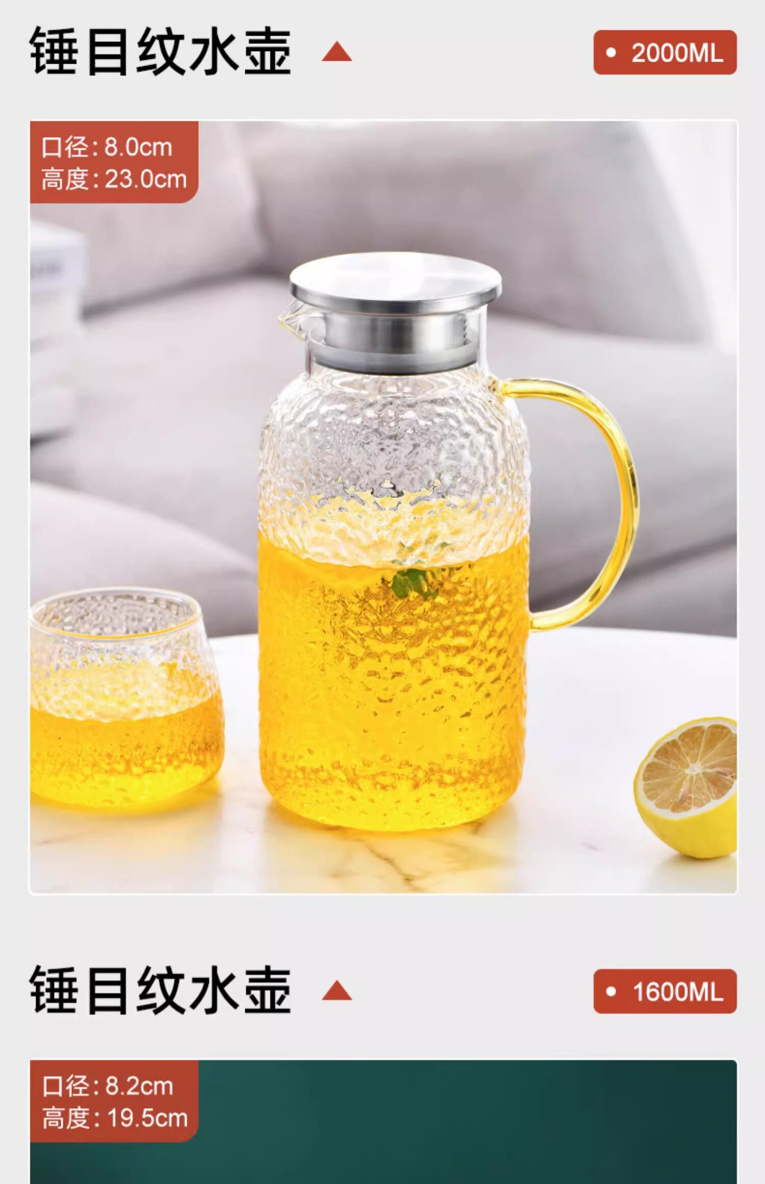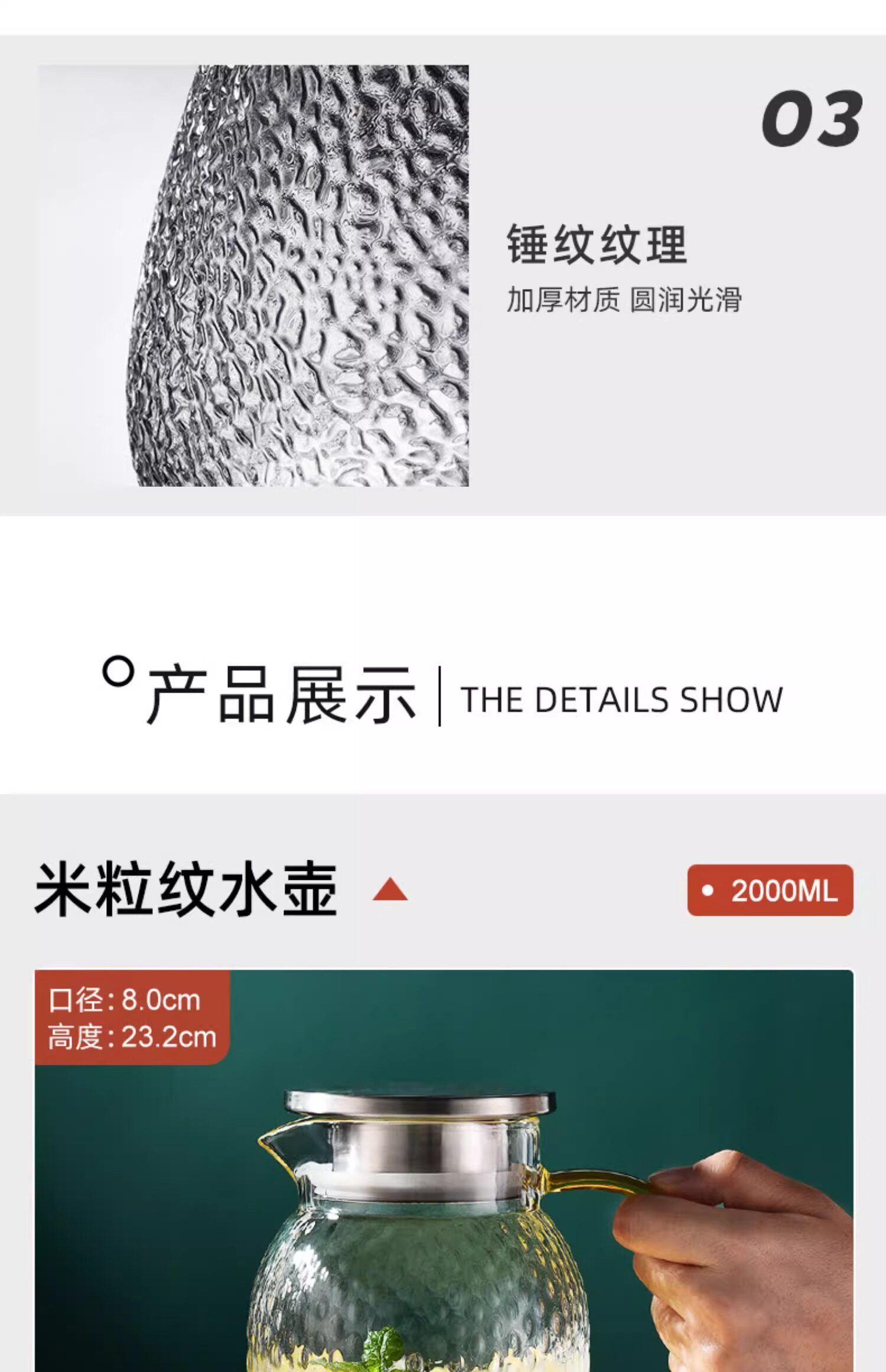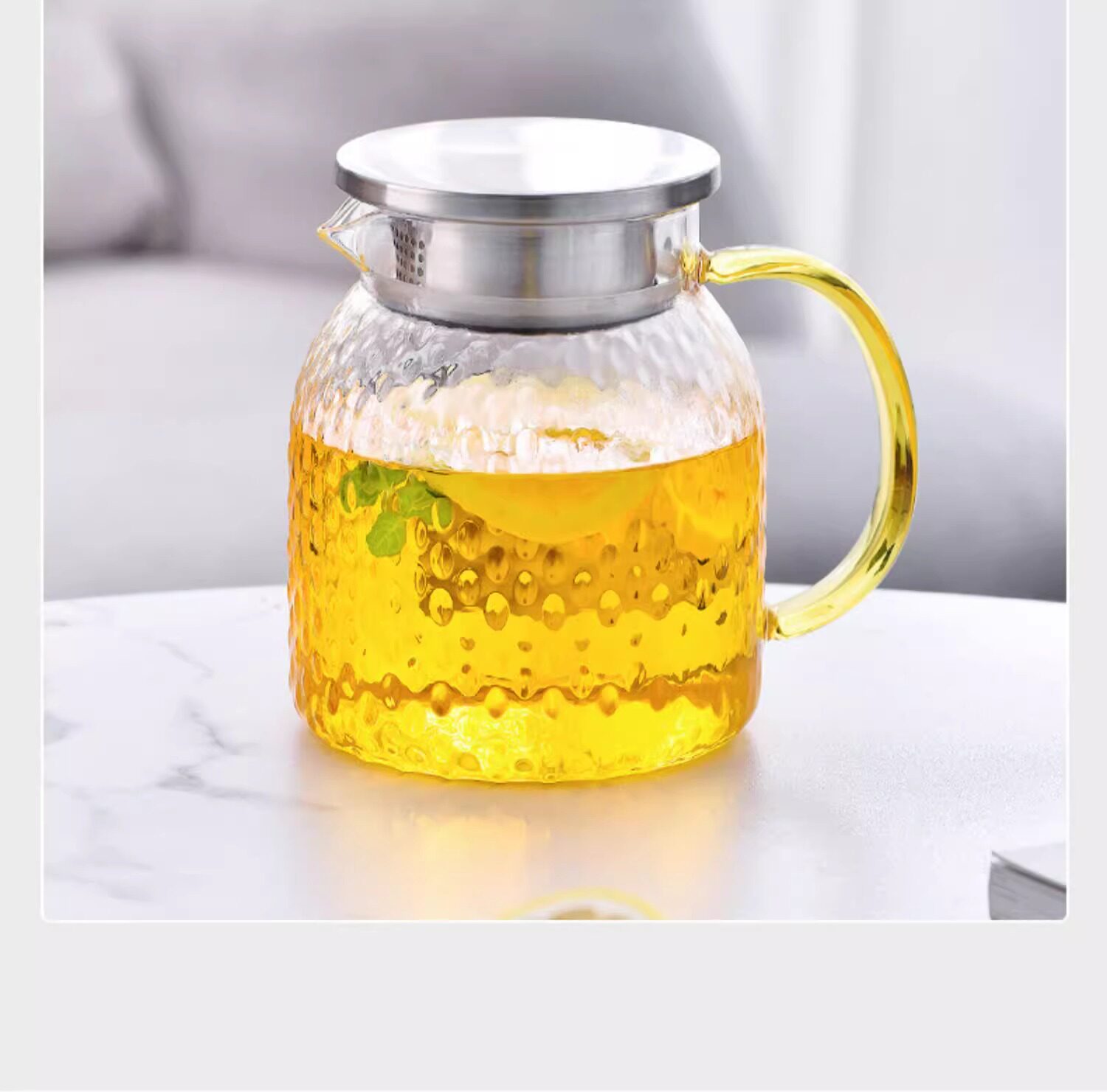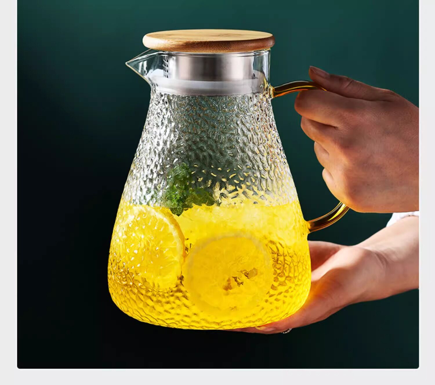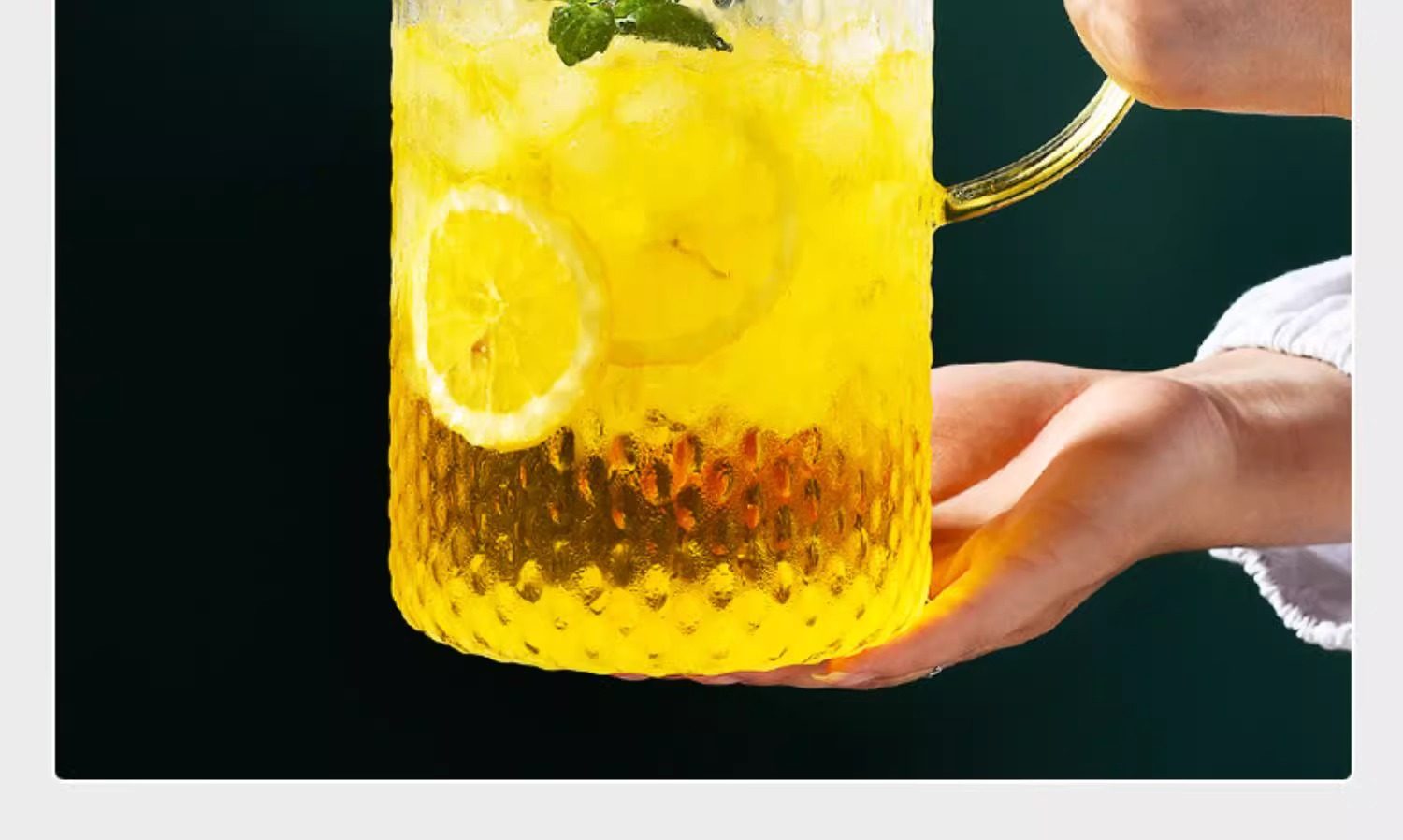 凉水壶玻璃耐高温冷水壶家用夏季大容量泡茶茶壶防摔锤纹瓶凉水杯
