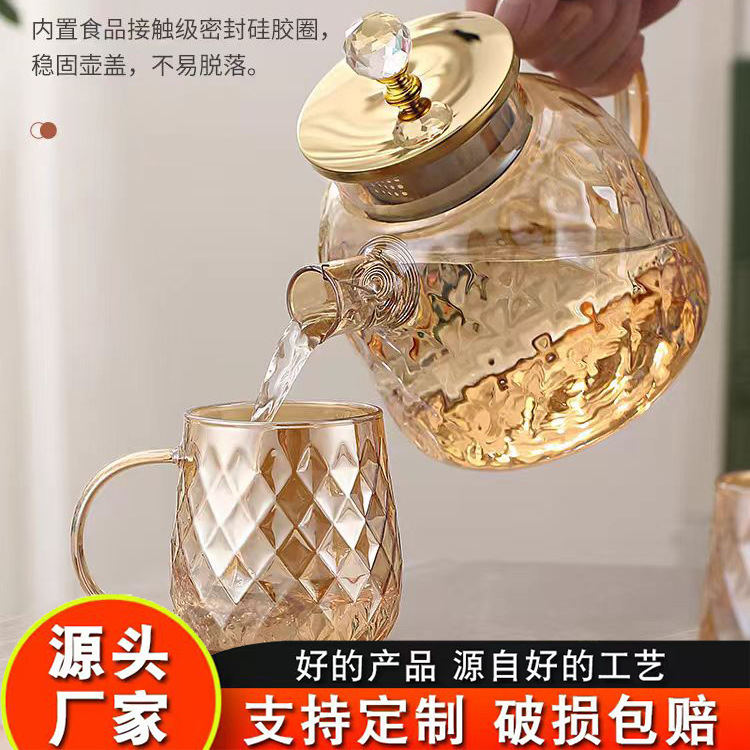 冷水壶高硼硅玻璃家用大容量冷水壶香槟色凉水壶凉白开冷水壶