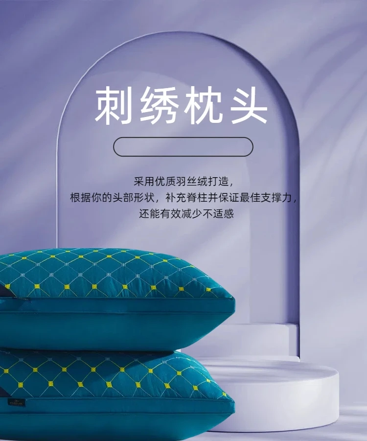 希尔顿刺绣枕头五星级家用丝绒软枕芯一只酒店单成人学生一对水洗