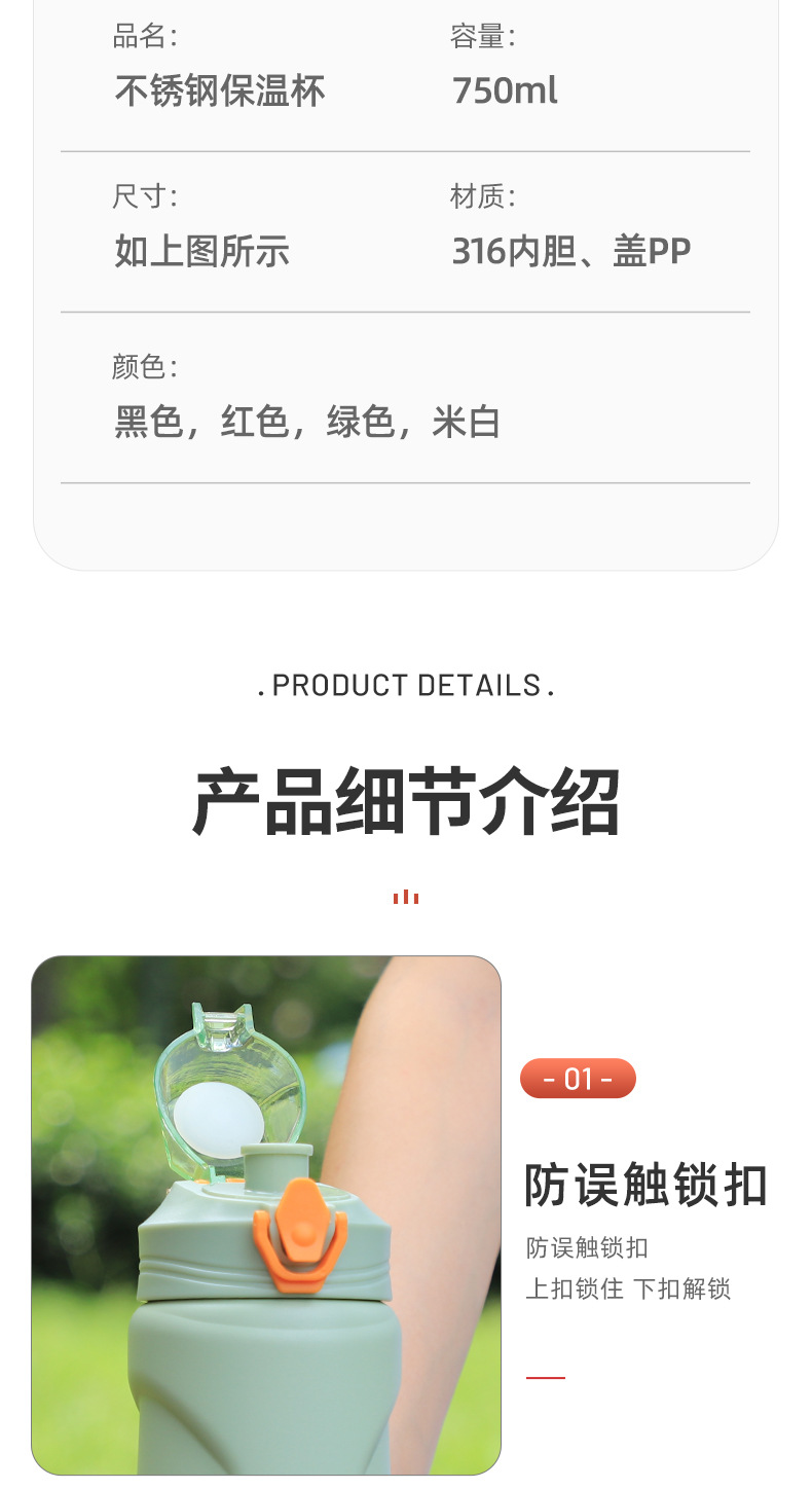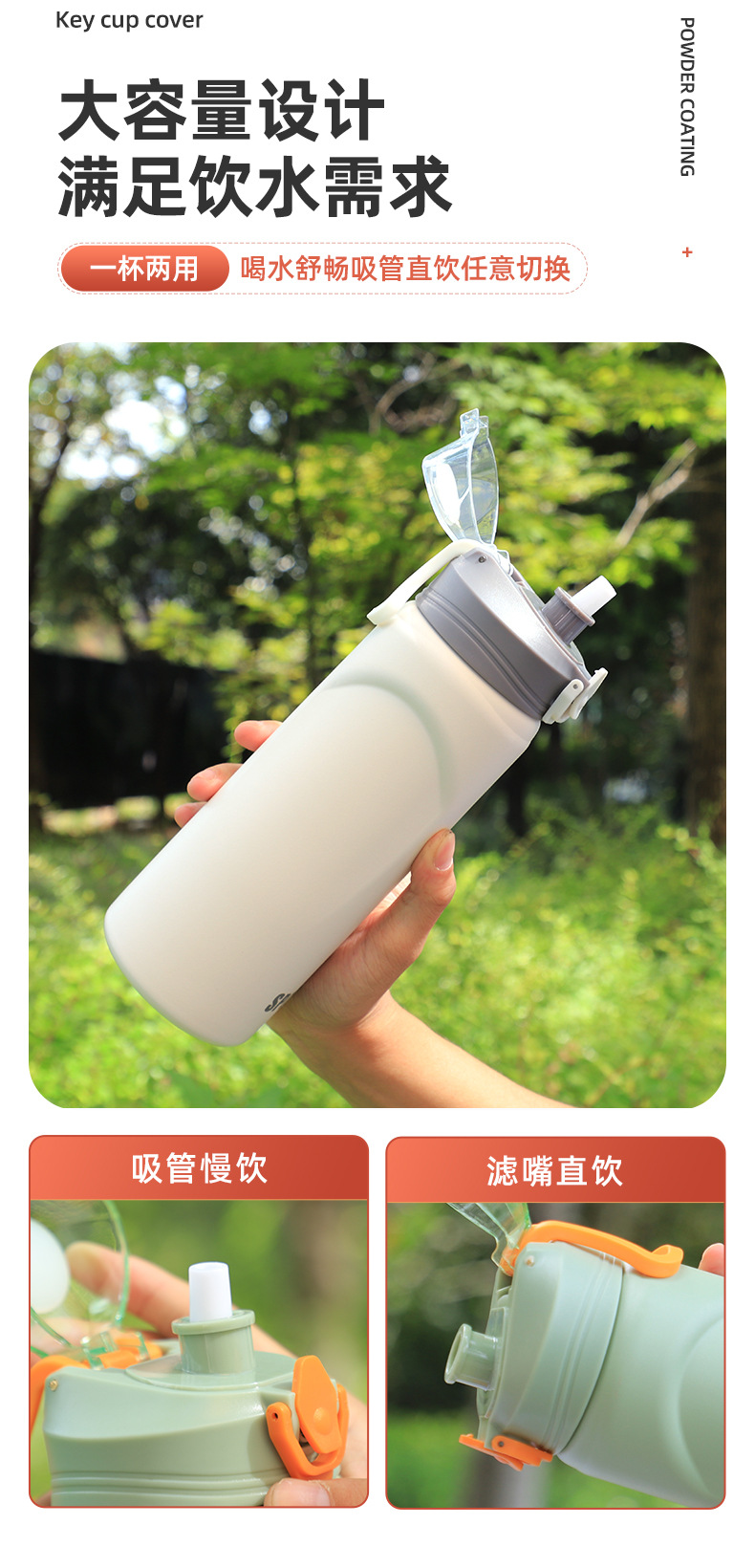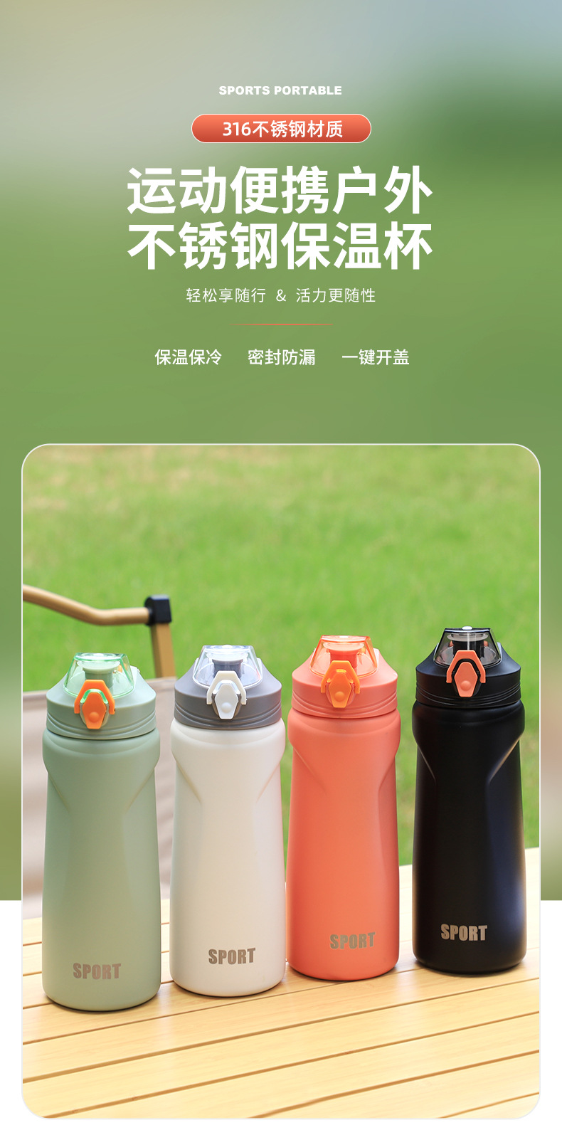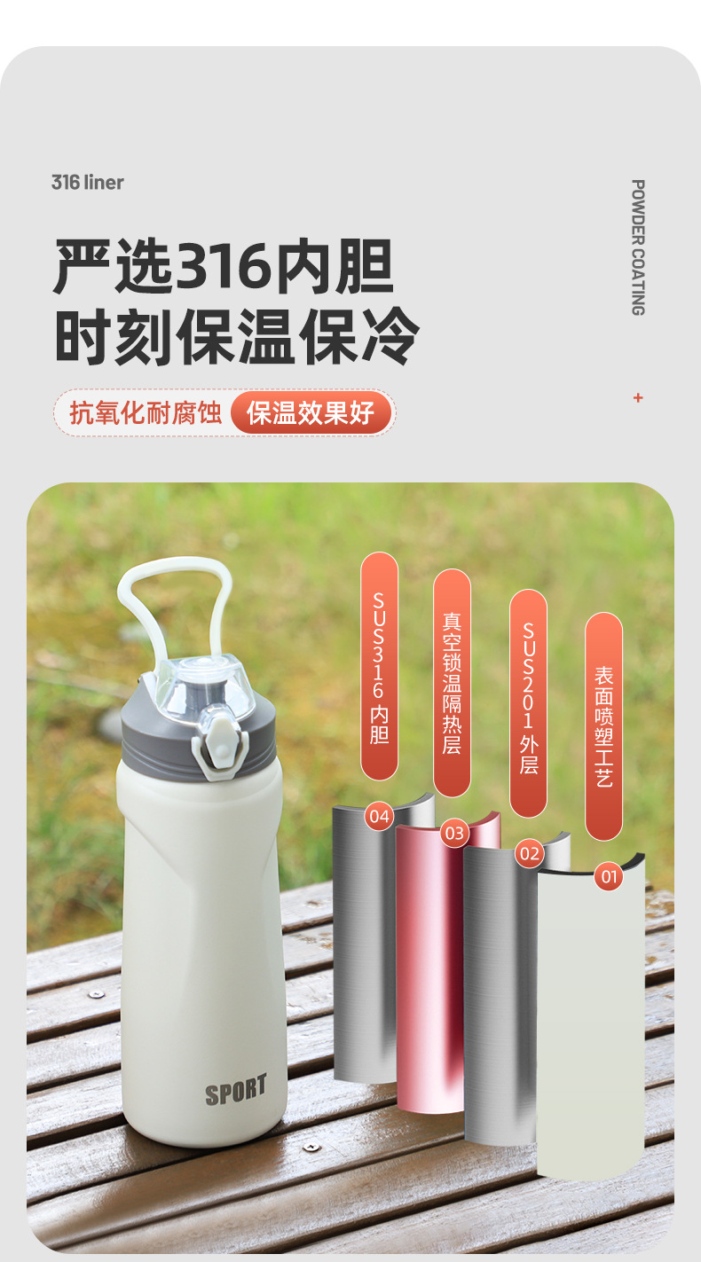 高颜值316不锈钢大容量保温杯户外吸管水杯学生便携手提女运动壶