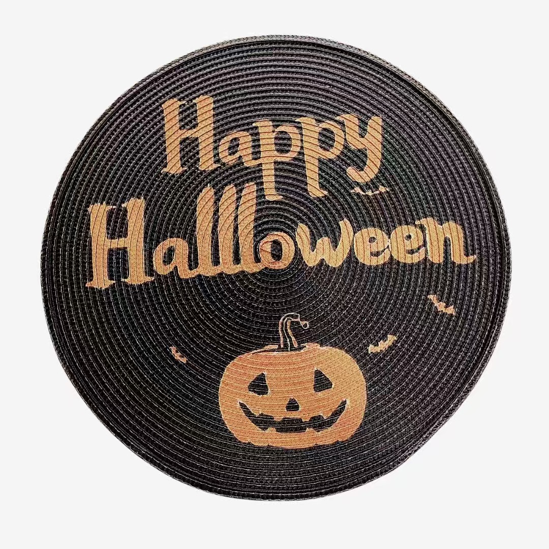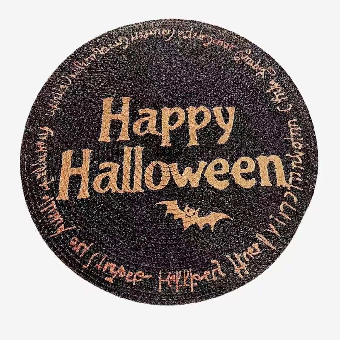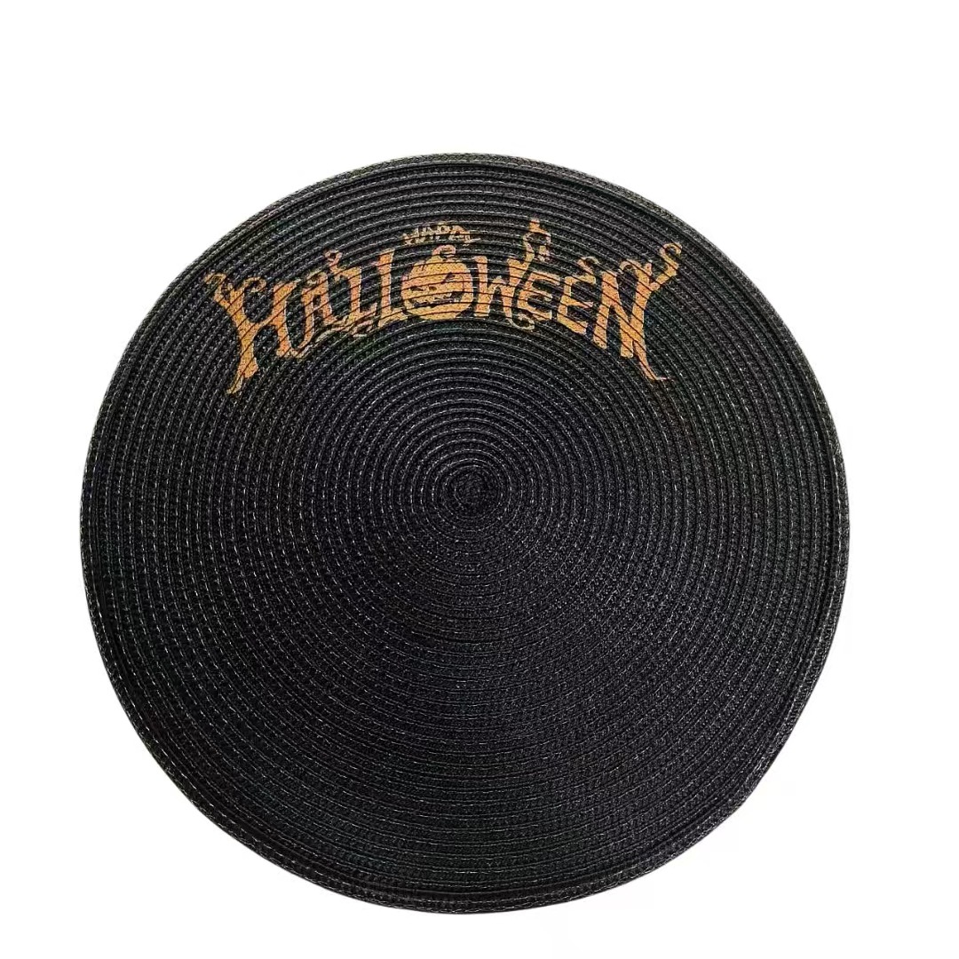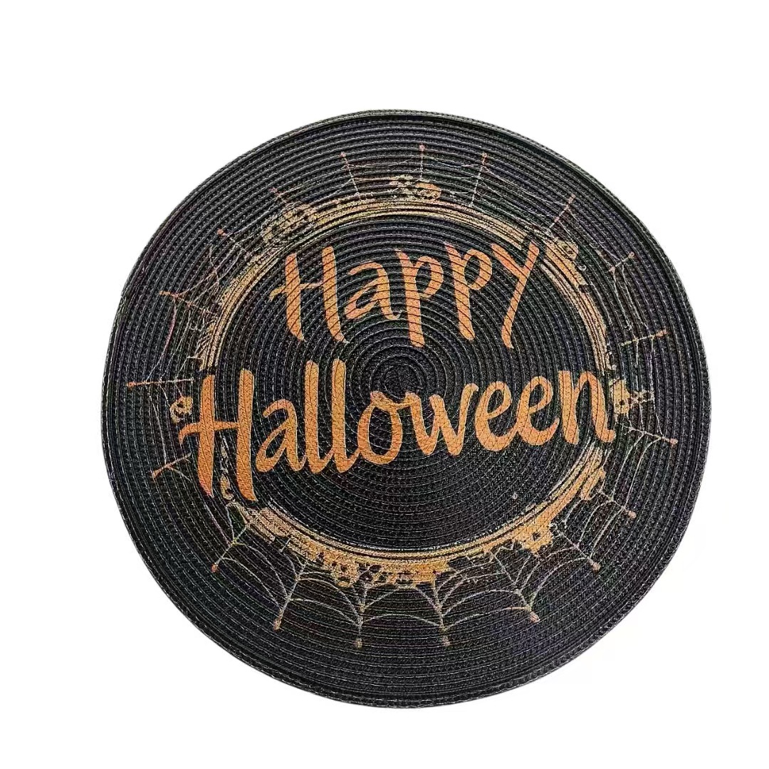 万圣节欧式杯垫蝙蝠幽灵蜘蛛网南瓜餐垫圆形节日礼品PP编织杯垫