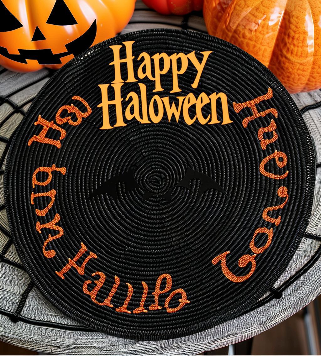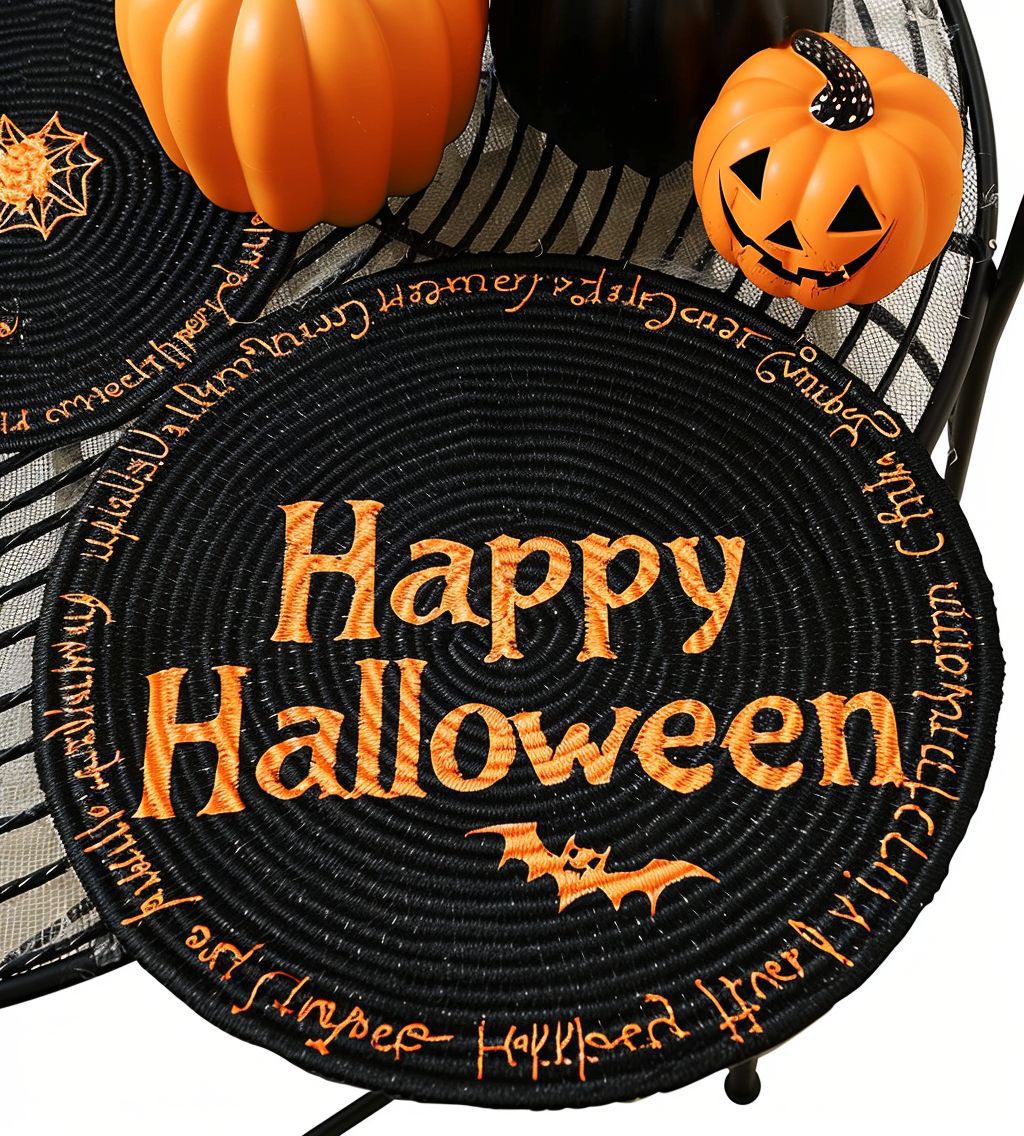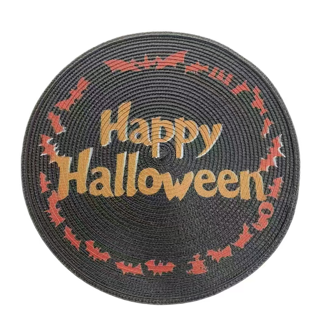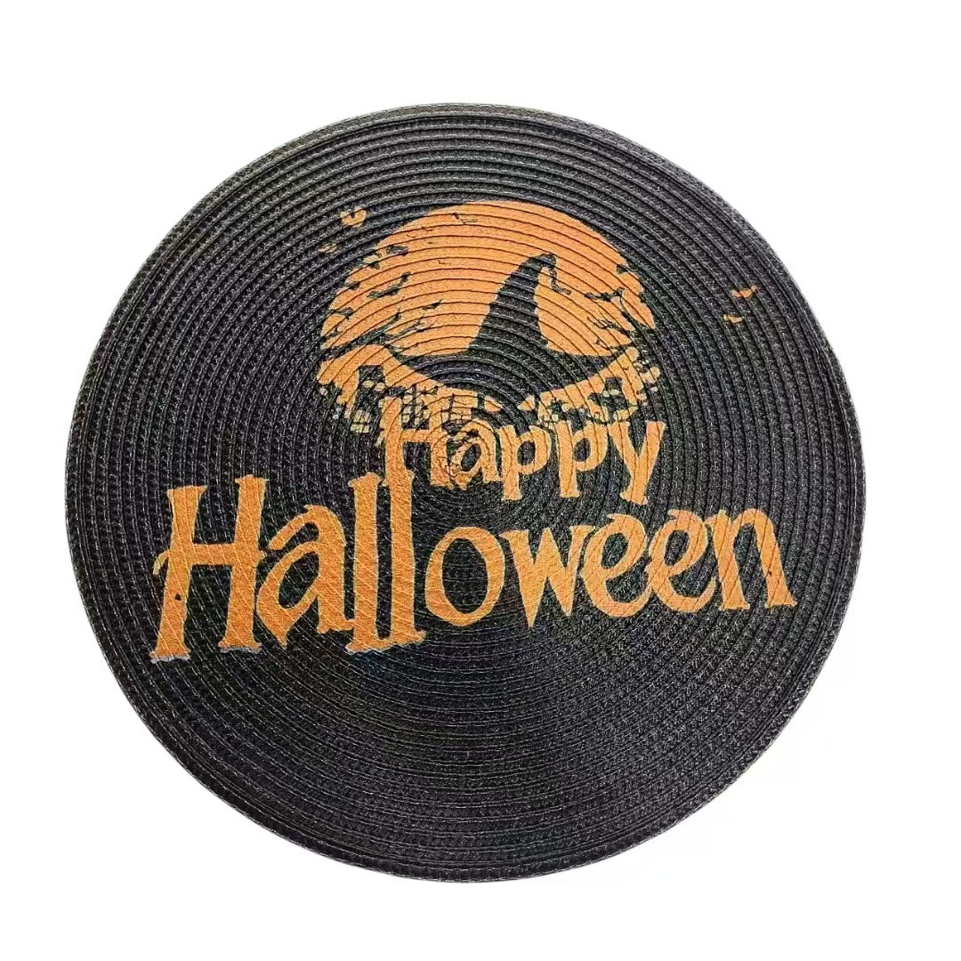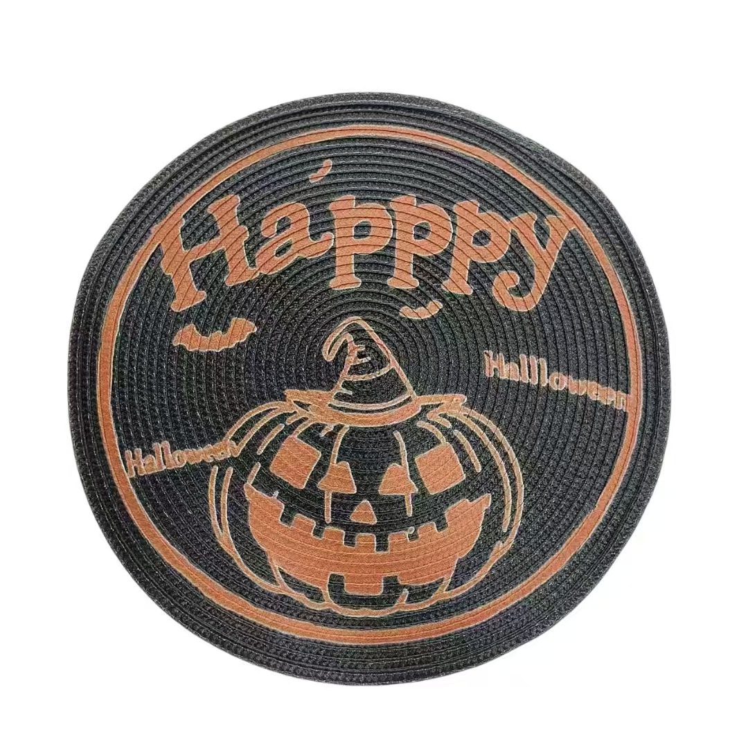万圣节欧式杯垫蝙蝠幽灵蜘蛛网南瓜餐垫圆形节日礼品PP编织杯垫