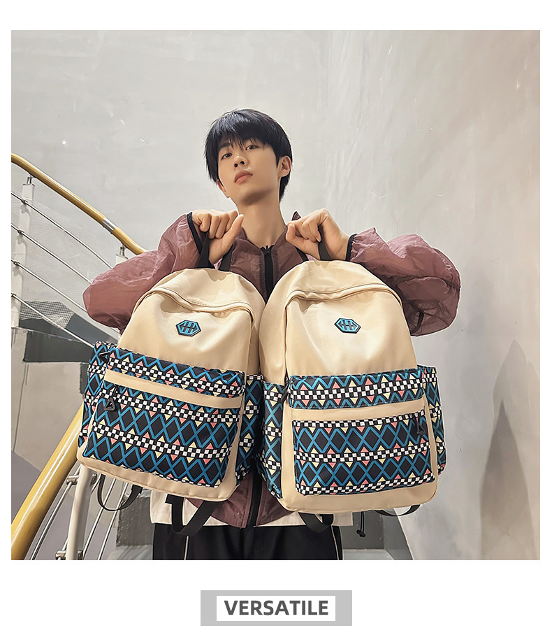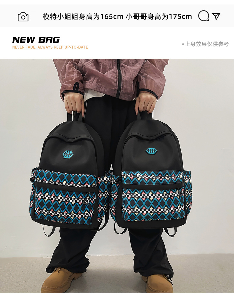 双肩背包新款时尚印花休闲出行旅游牛津布学生书包