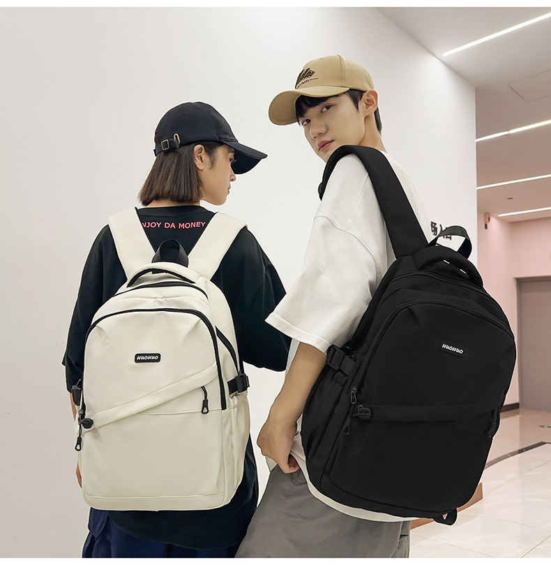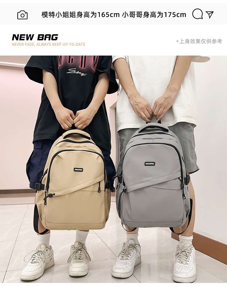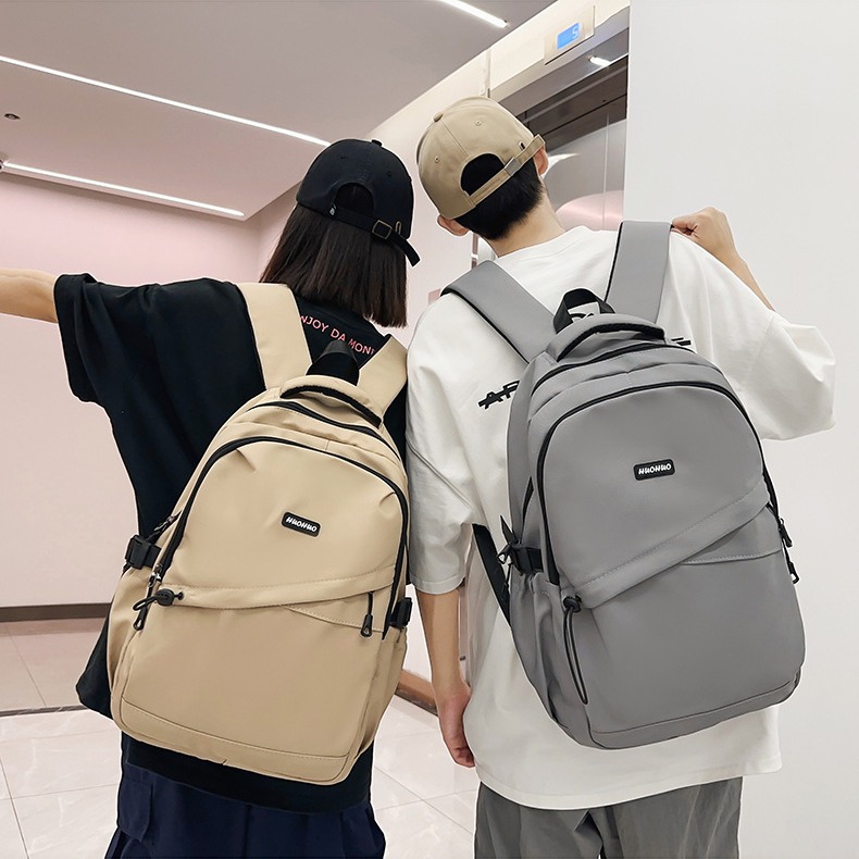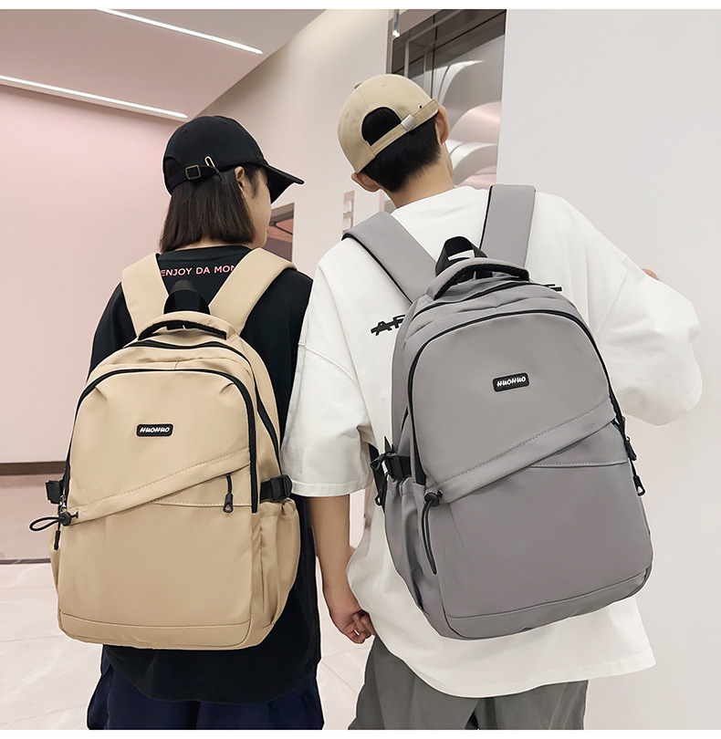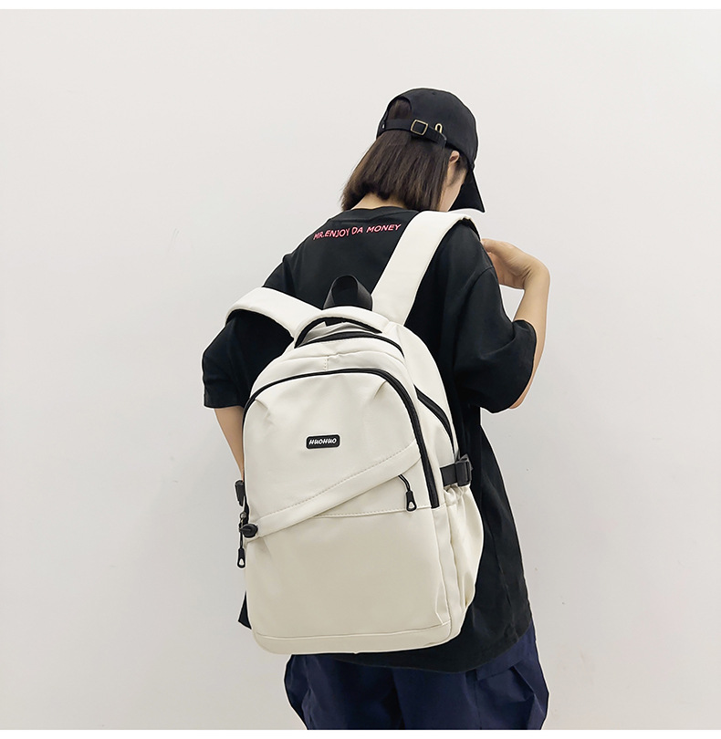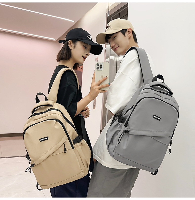 书包高中学生女简约勤纯色校园背包通勤电脑双肩包