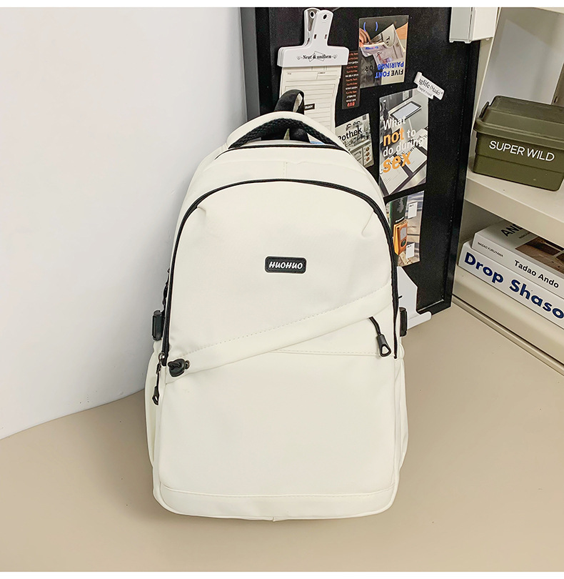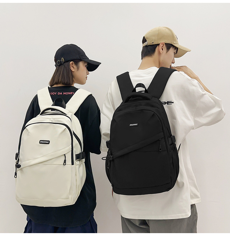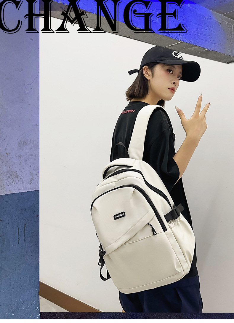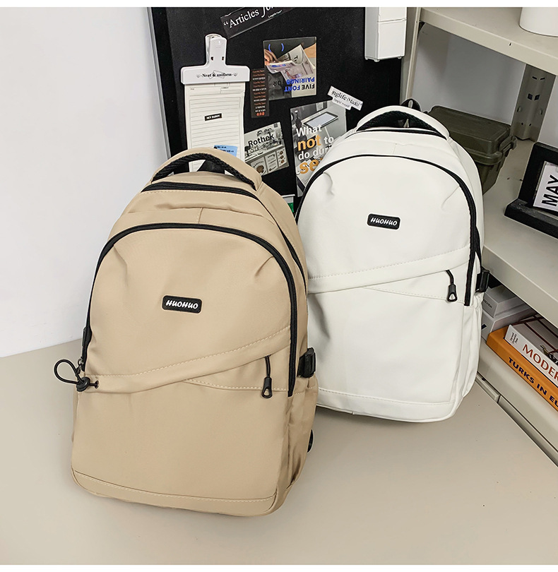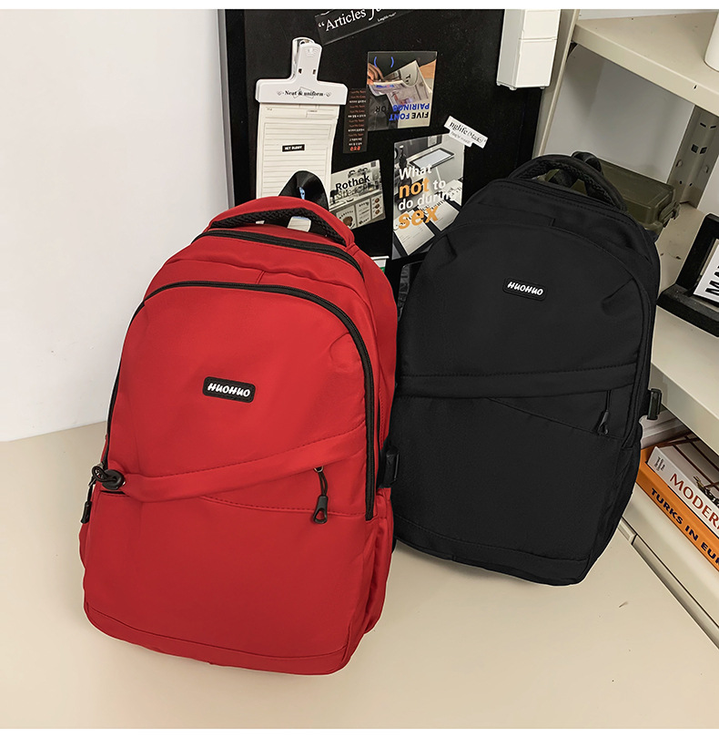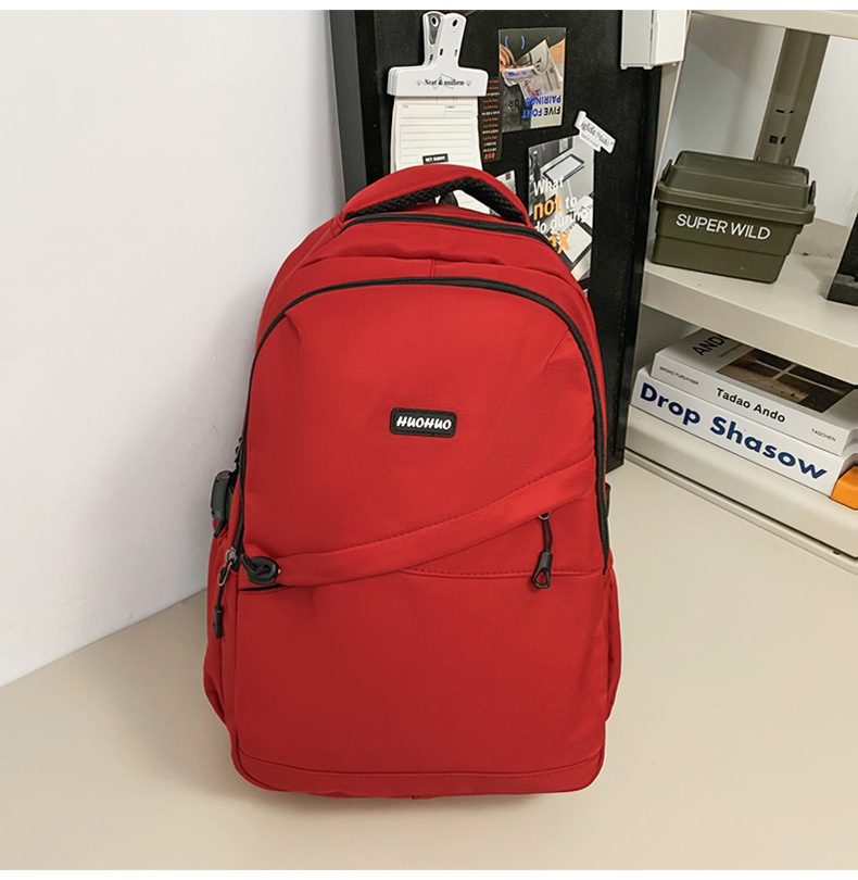 书包高中学生女简约勤纯色校园背包通勤电脑双肩包
