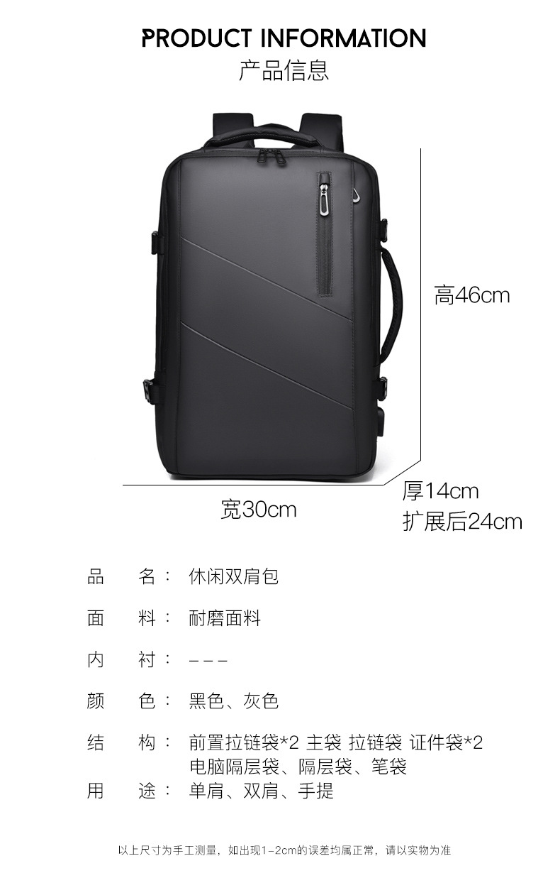 旅行包15寸笔记本电脑包电脑商务背包双肩包可扩容双肩背包