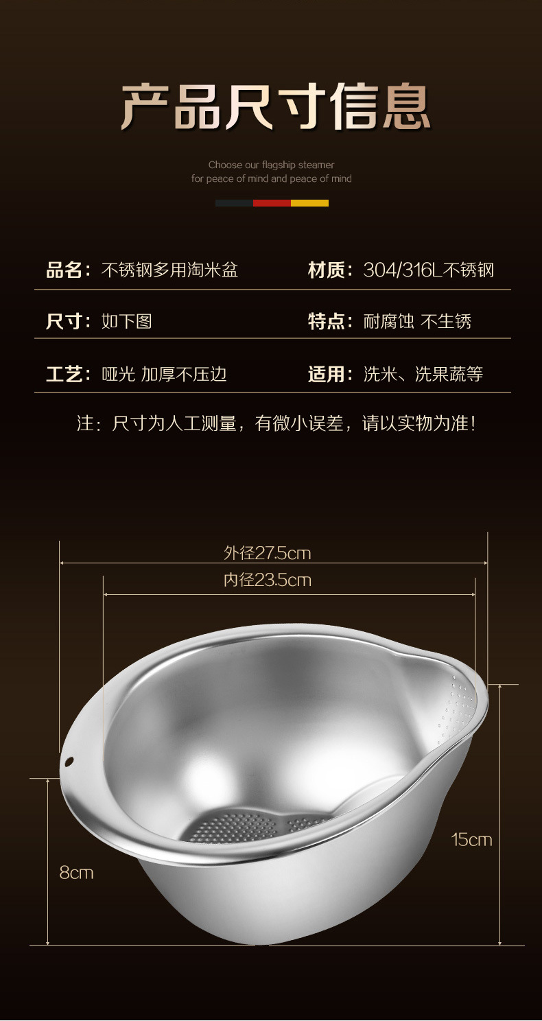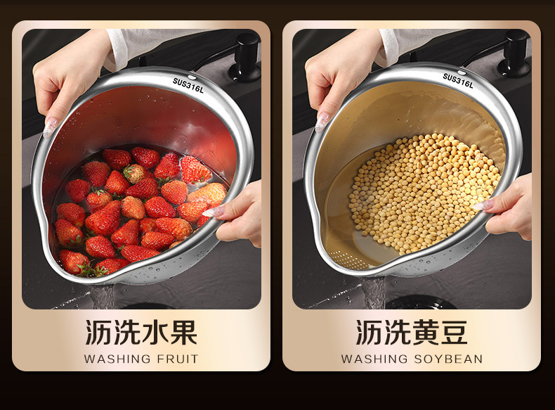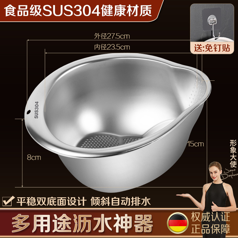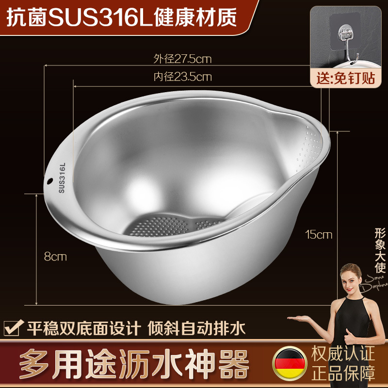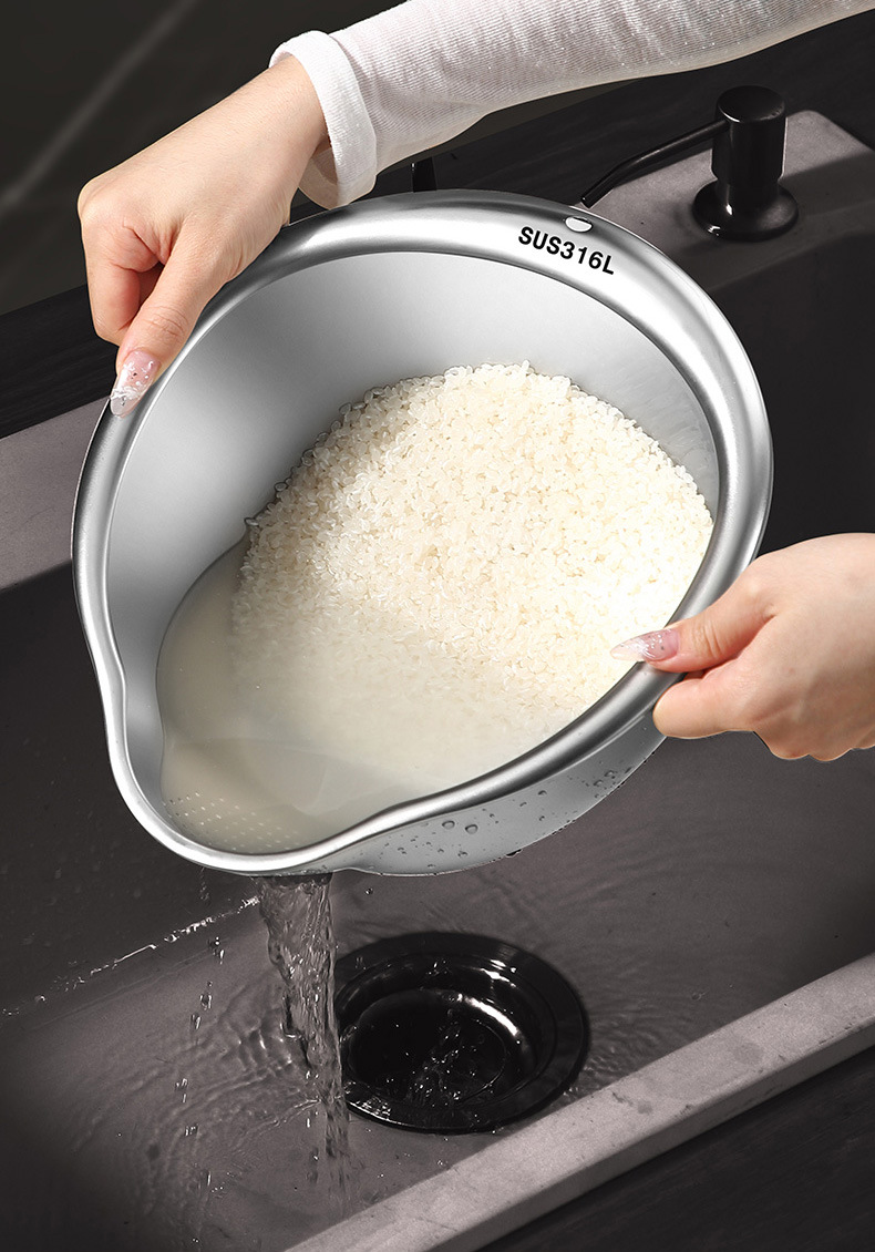 工厂直销淘米盆沥水篮316不锈钢家用304洗菜洗米筛果蔬沥水盆漏盆