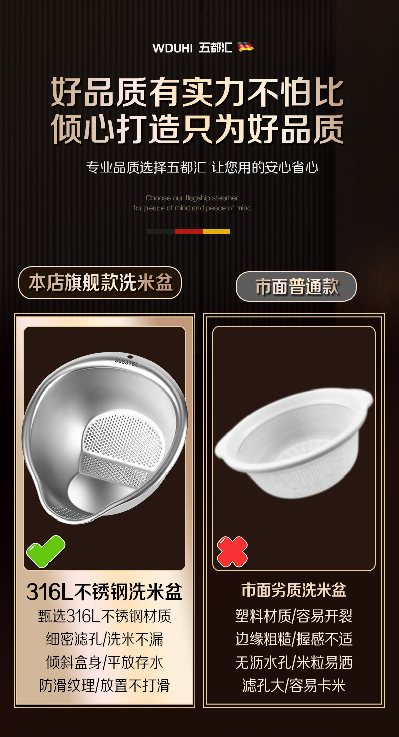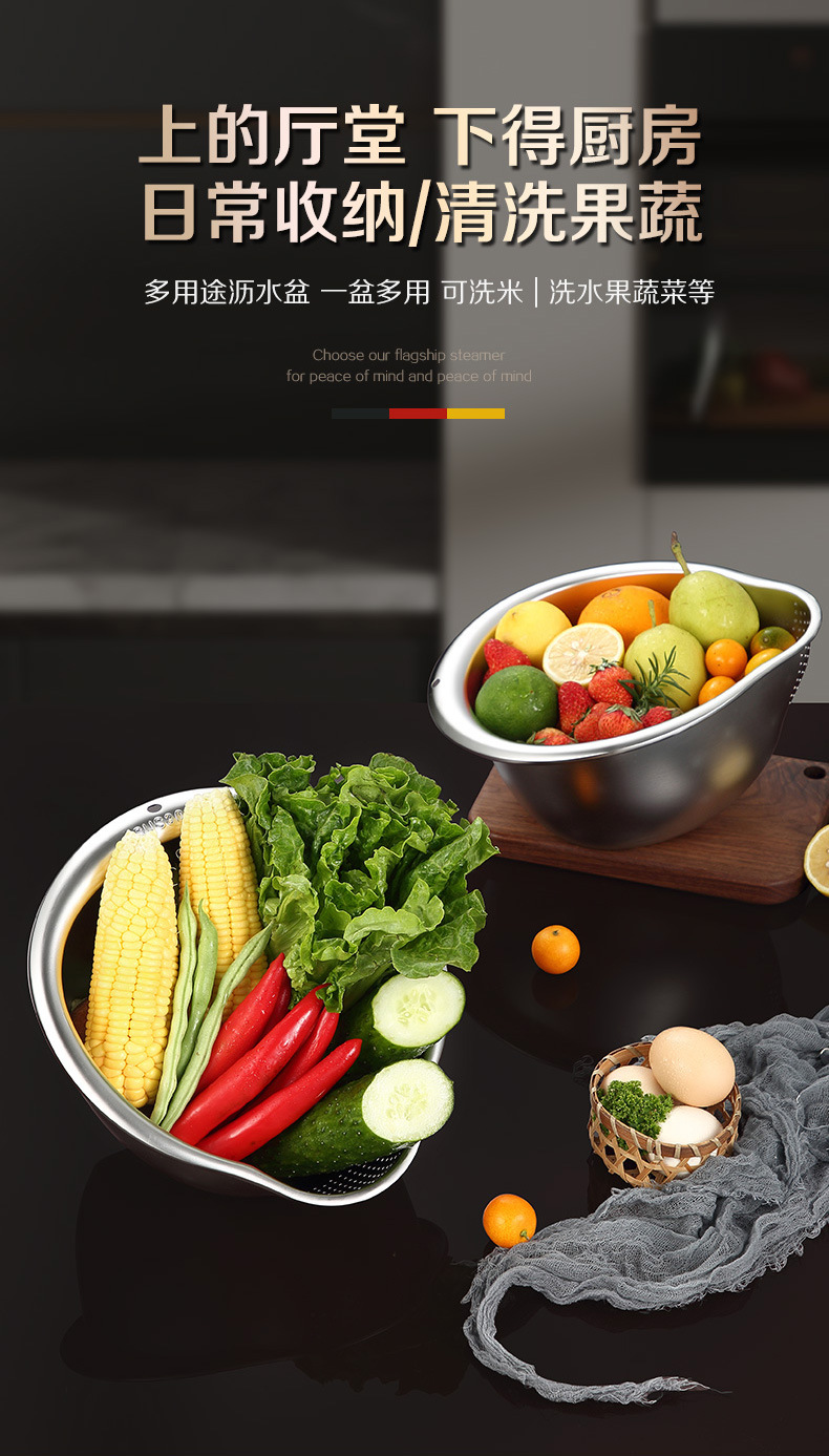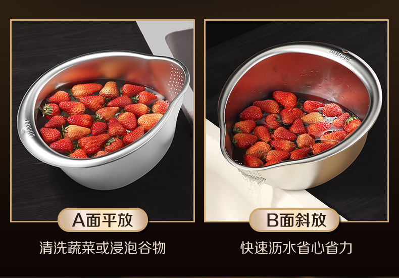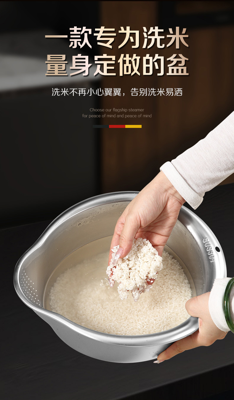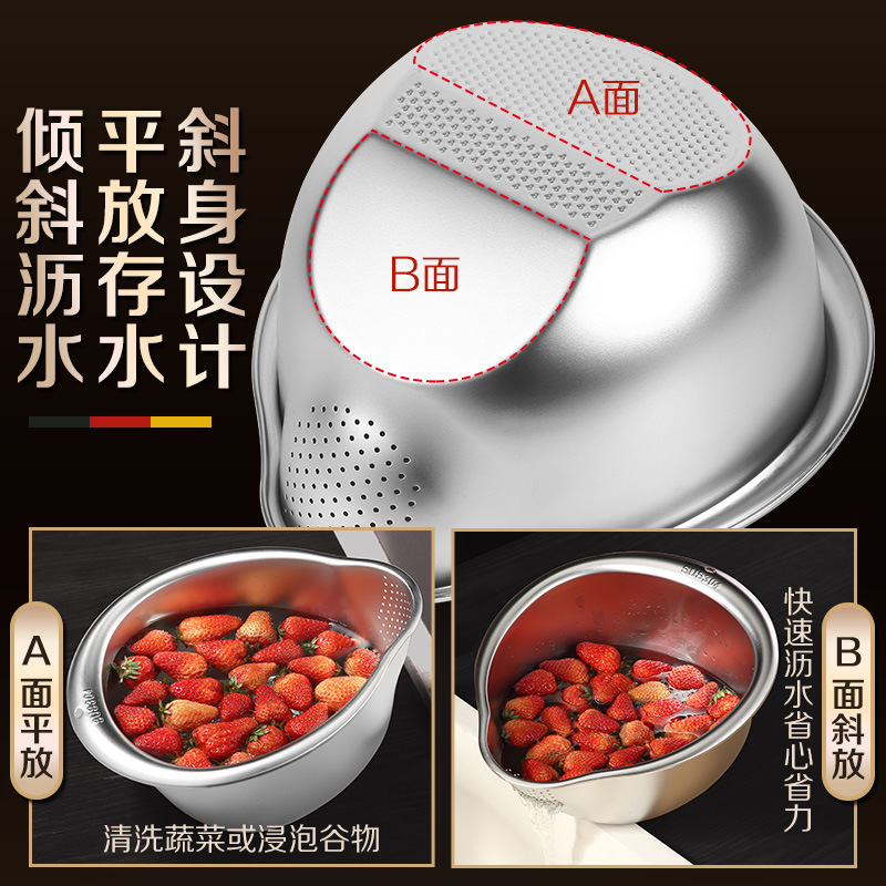 工厂直销淘米盆沥水篮316不锈钢家用304洗菜洗米筛果蔬沥水盆漏盆