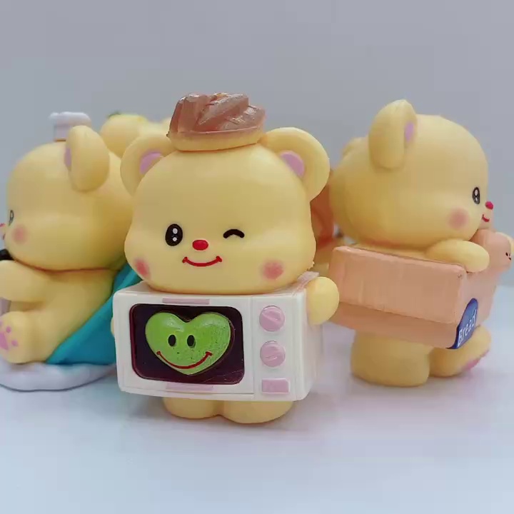跨境网红6款可爱奶呼呼黄油小熊盲盒甜品小黄熊扭蛋公仔车载摆件