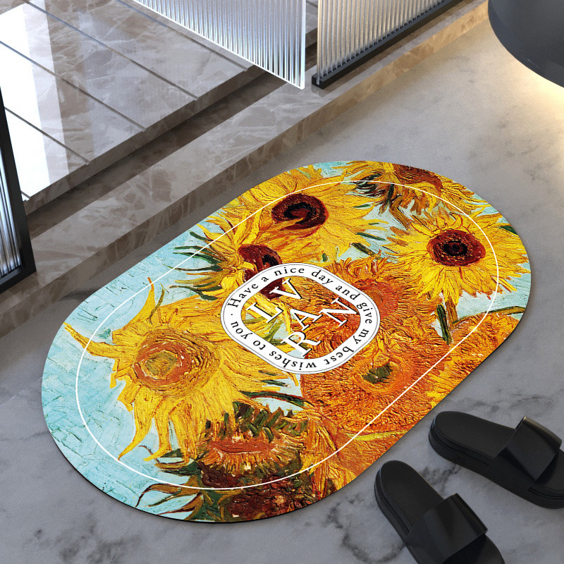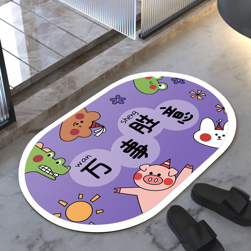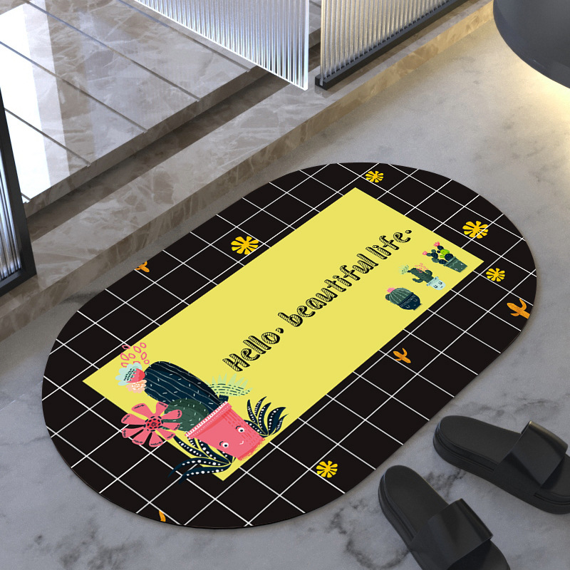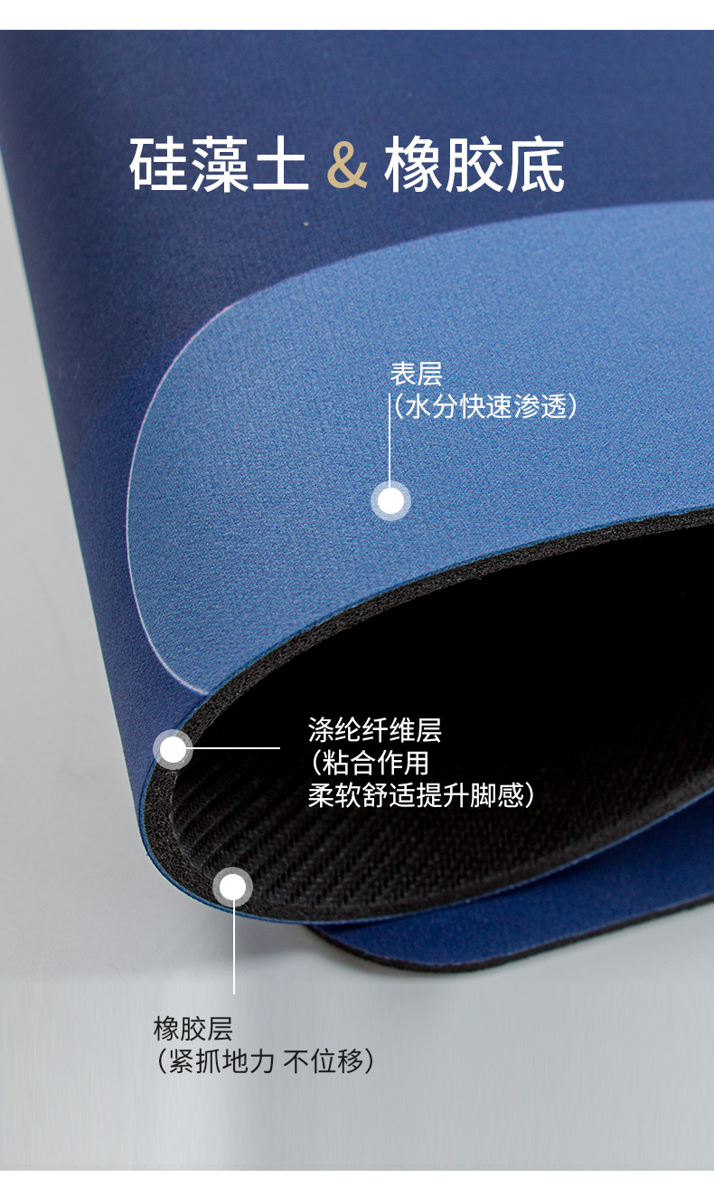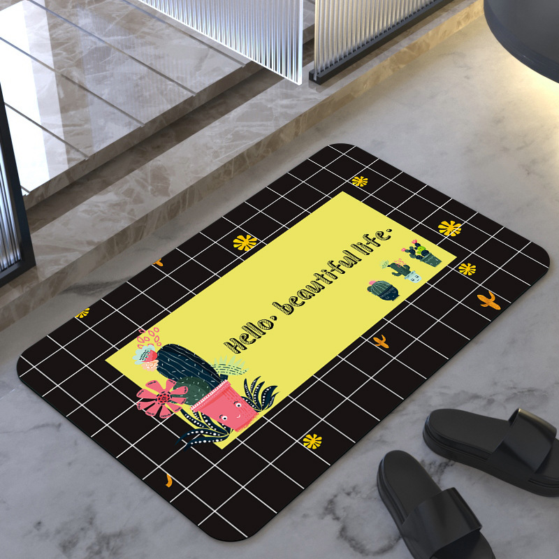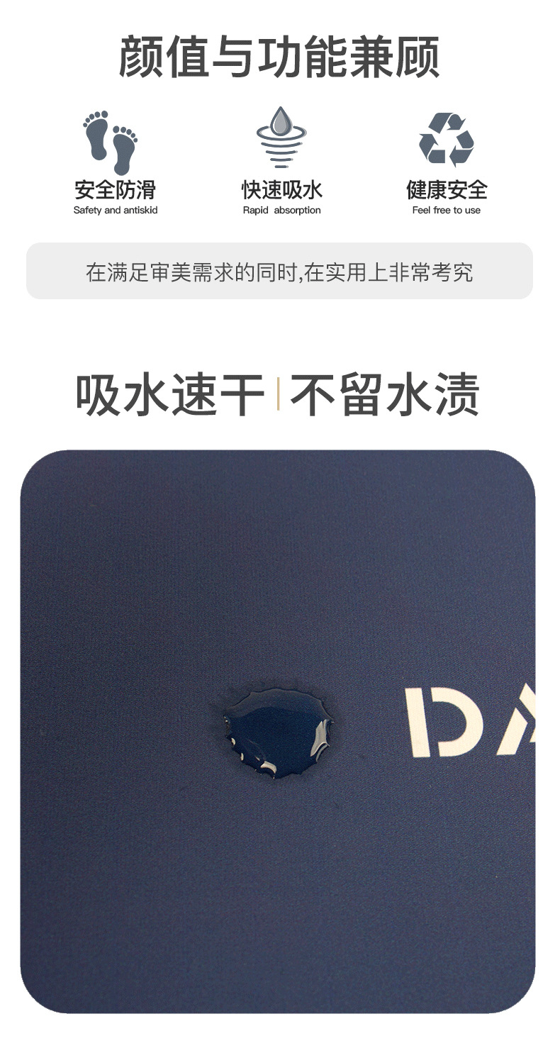 软橡胶硅藻泥地垫卫生间吸水防滑脚垫科技布地毯浴室防滑垫工厂