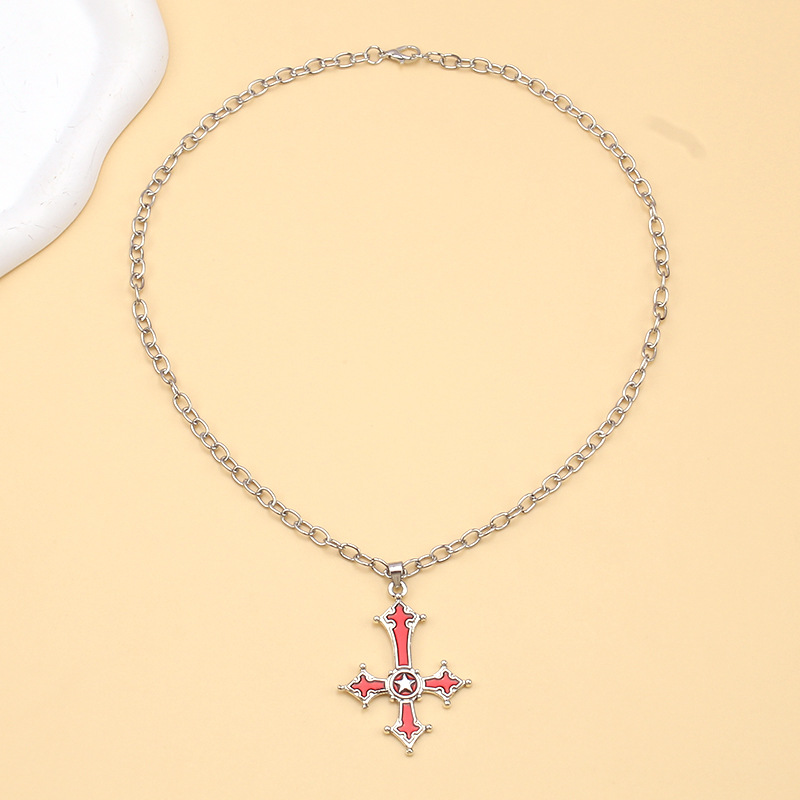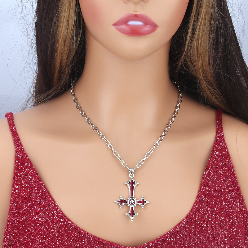 欧美跨境饰品 万圣节嘻哈朋克十字架项饰暗黑系哥特式个性项链女