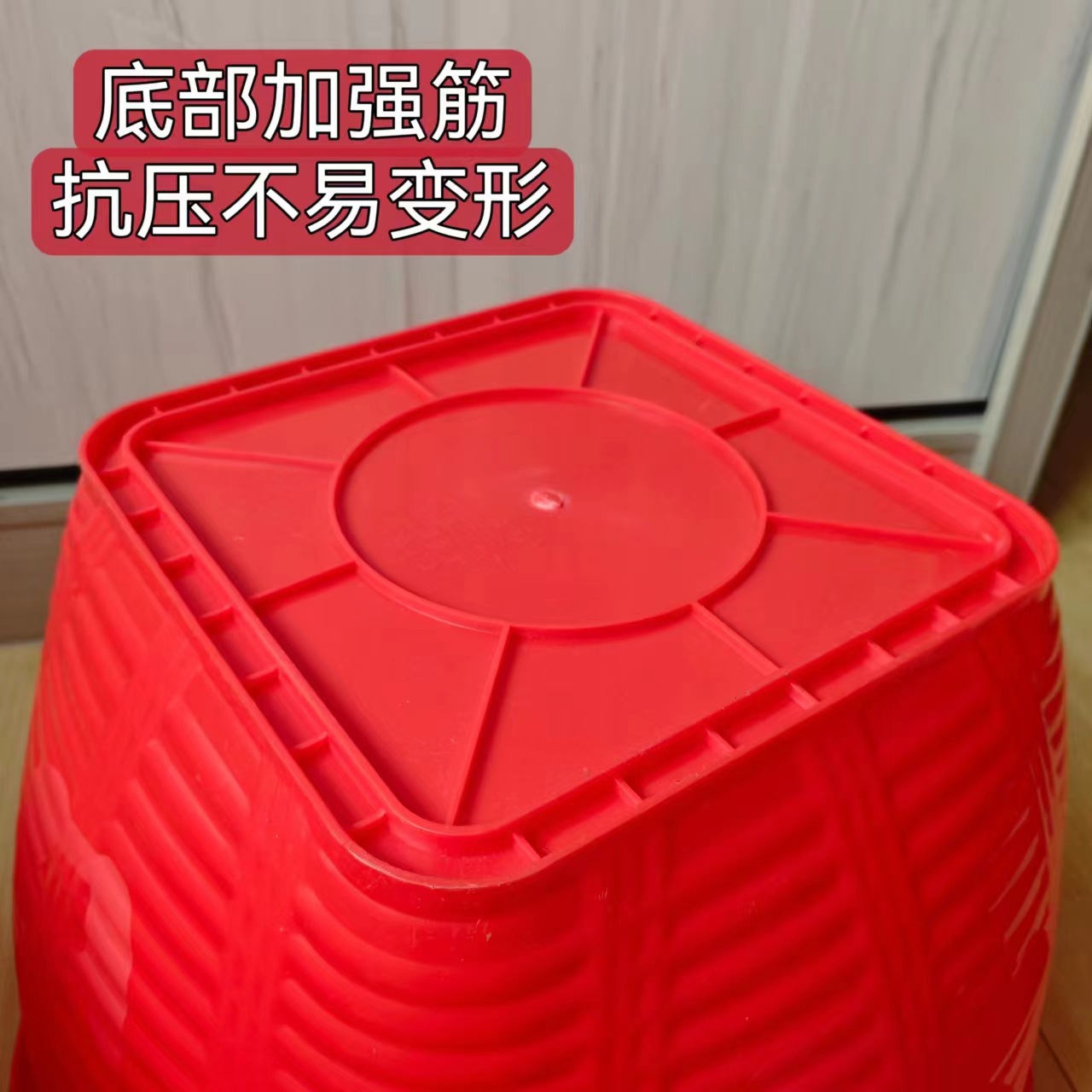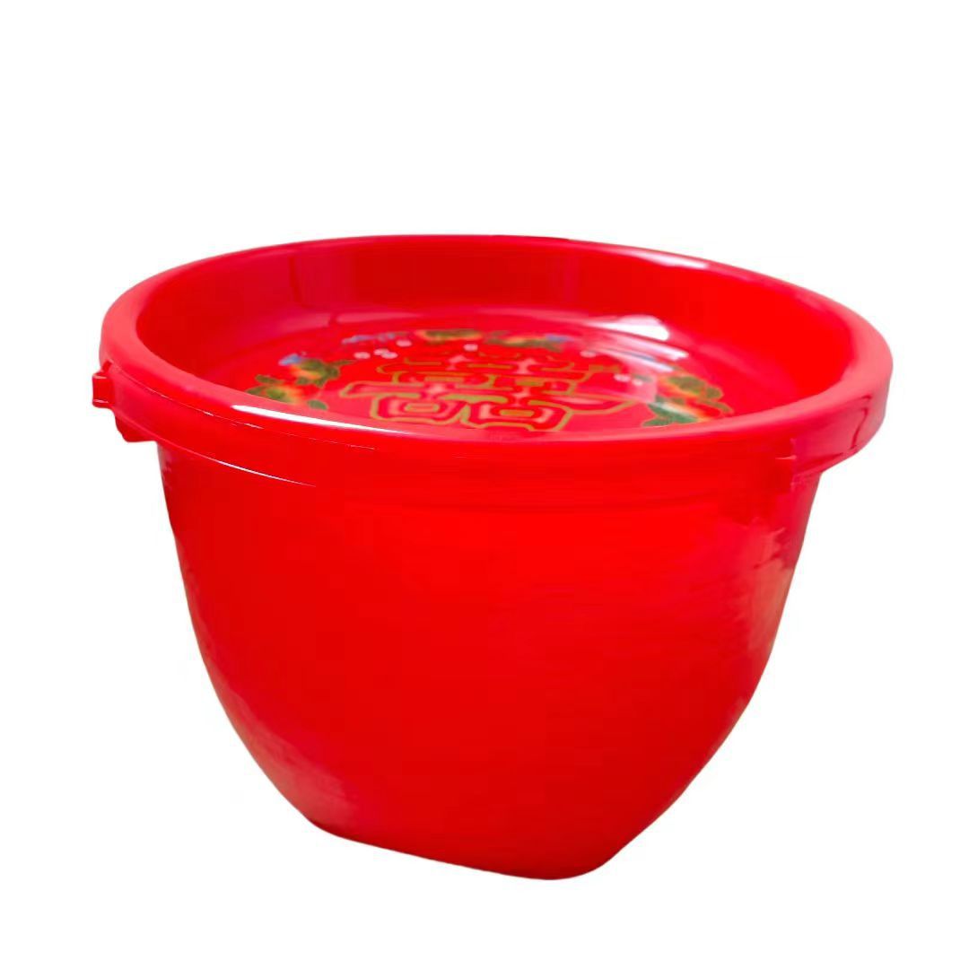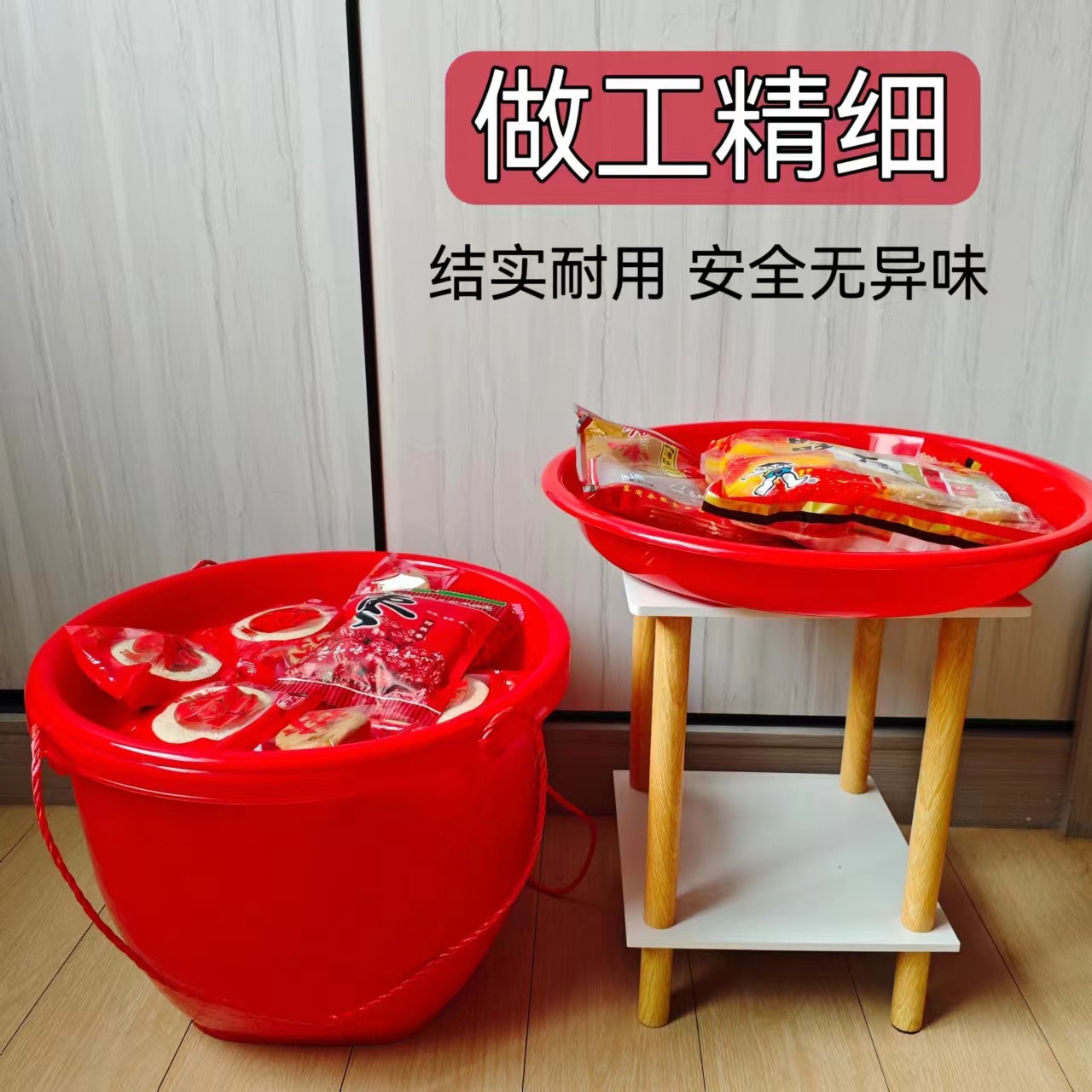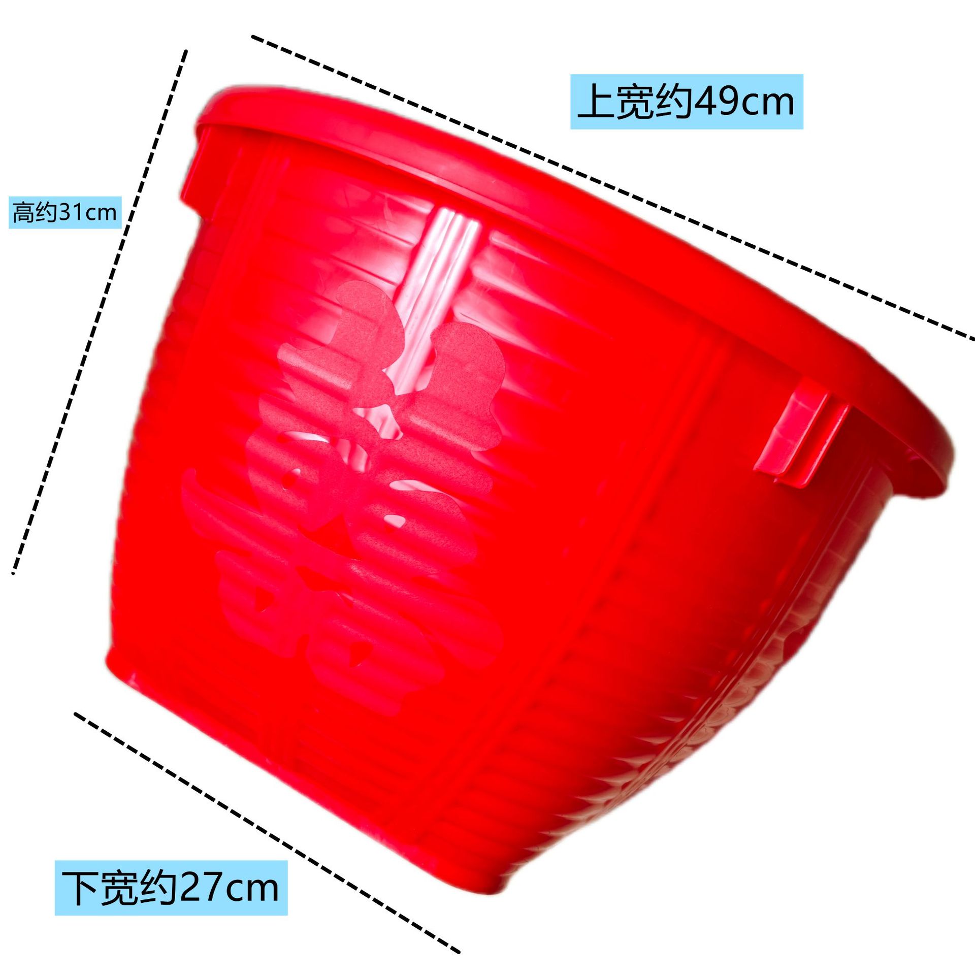 塑料圆箩加厚婚庆大红带圆盘箩筐结婚乔迁入伙子孙桶喜事桶喜事箩