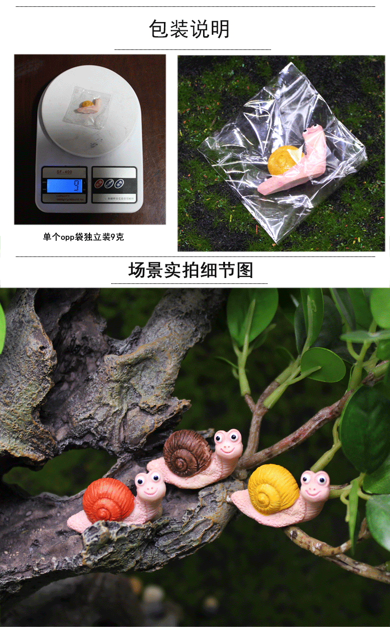 跨境微景观可爱蜗牛小动物摆件多肉绿植配件花园装饰品树脂工艺品