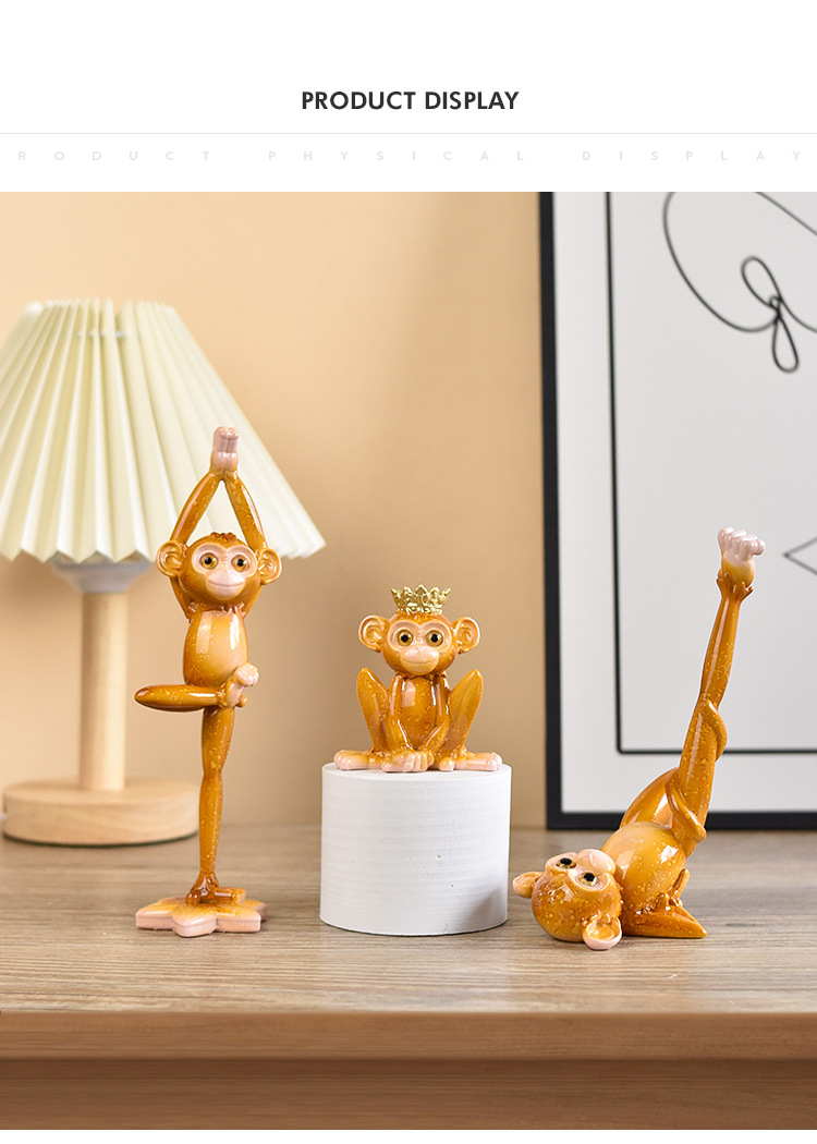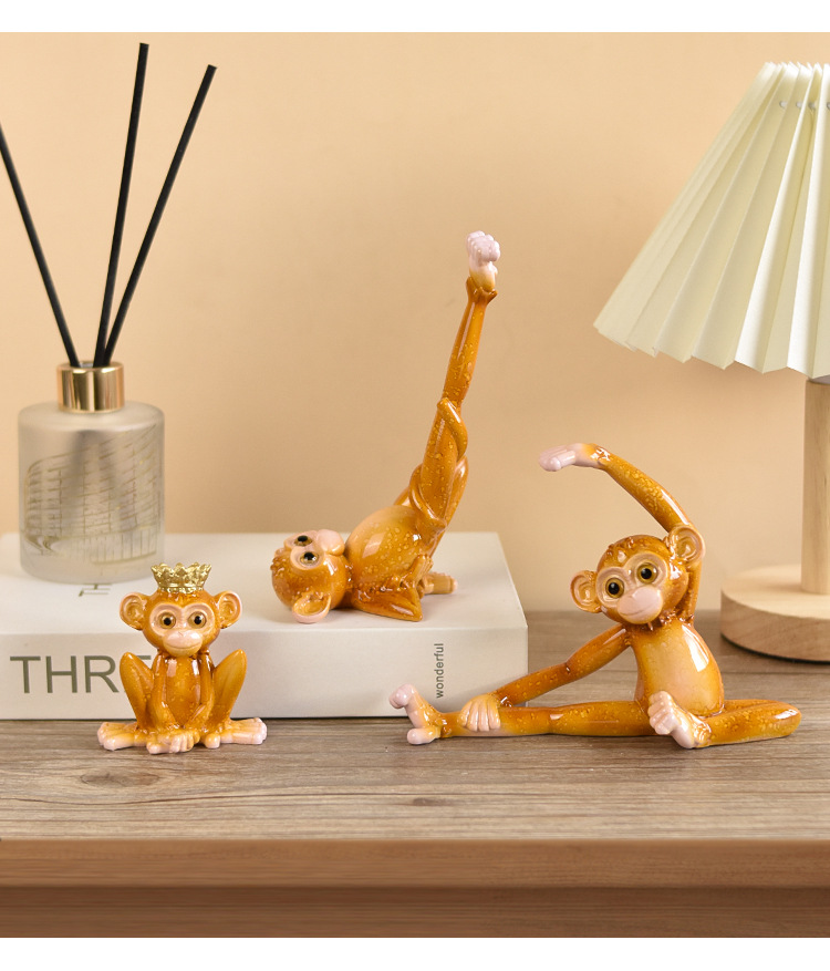 美式瑜伽猴子装饰田园树脂工艺品装饰品电视机柜玄关酒柜动物摆件