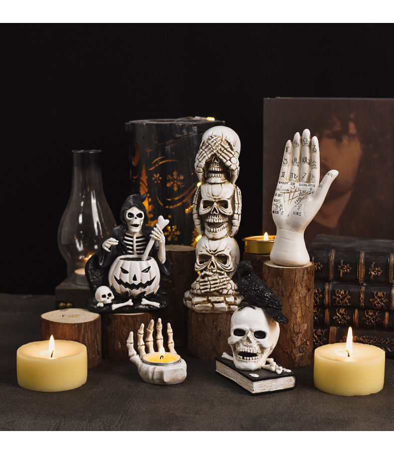 跨境批发万圣节鬼节骷髅人物装饰品摆件恐怖骷颅树脂工艺品小摆设