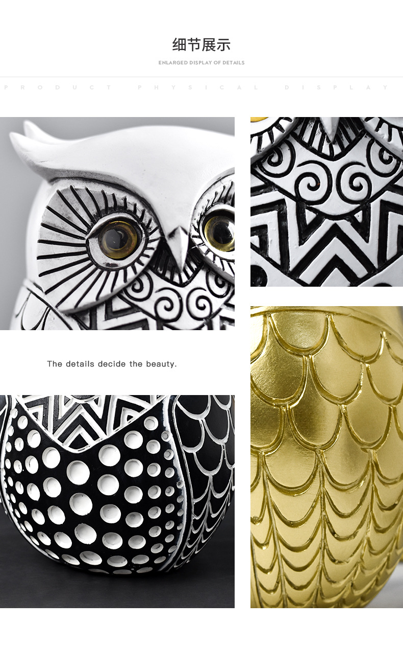 简约轻奢猫头鹰动物树脂工艺品摆件家居客厅电视柜桌面玄关装饰品