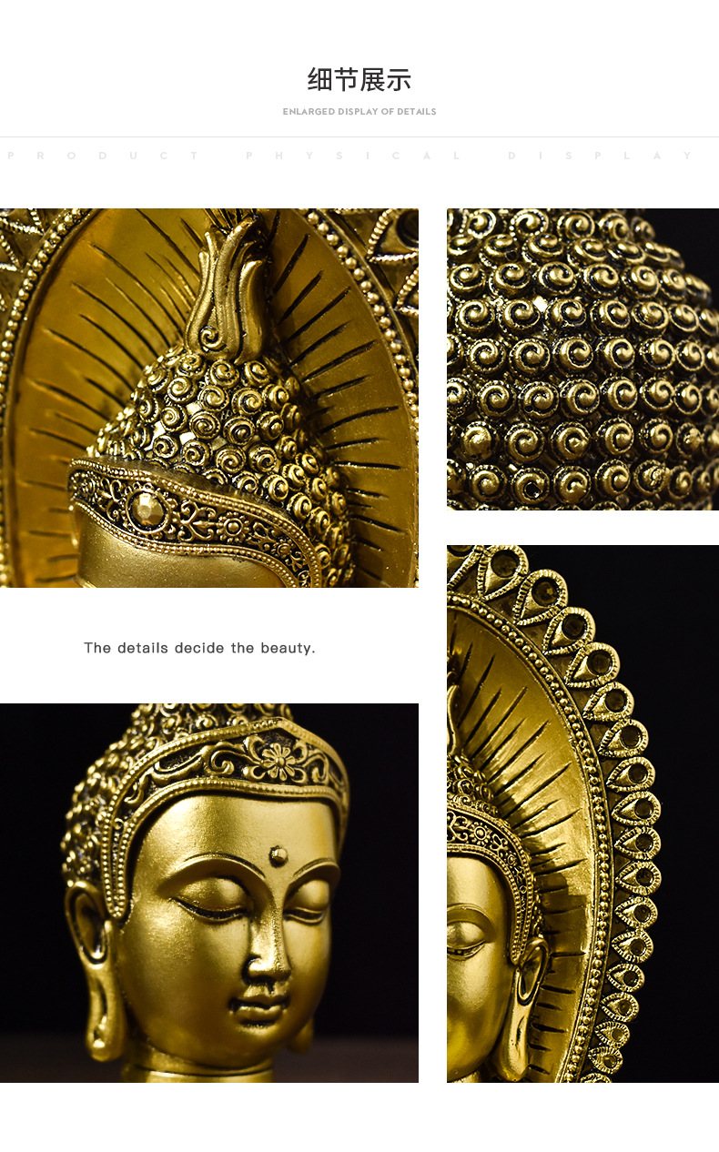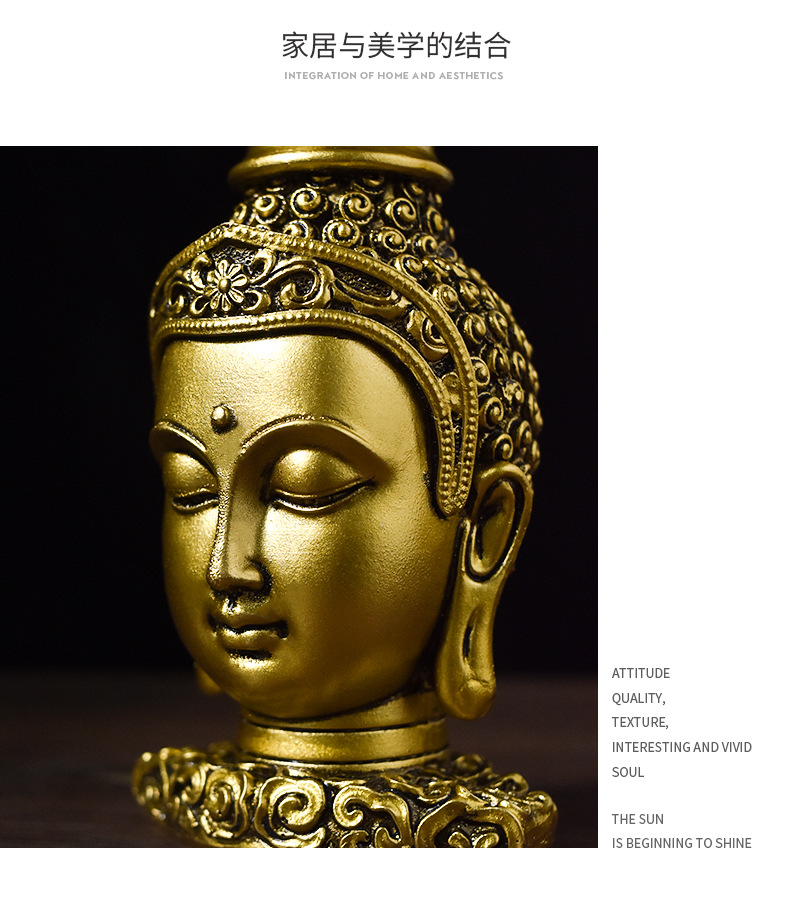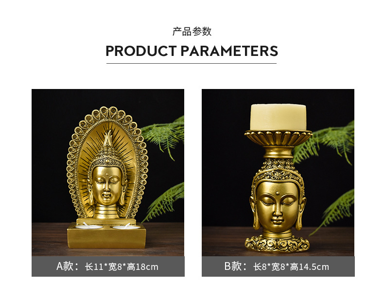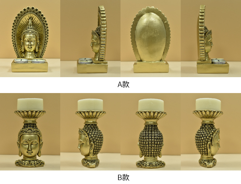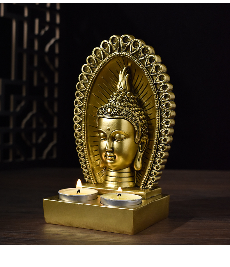 跨境创意东南亚仿古佛头烛台树脂工艺品家用供奉佛像家居装饰摆件